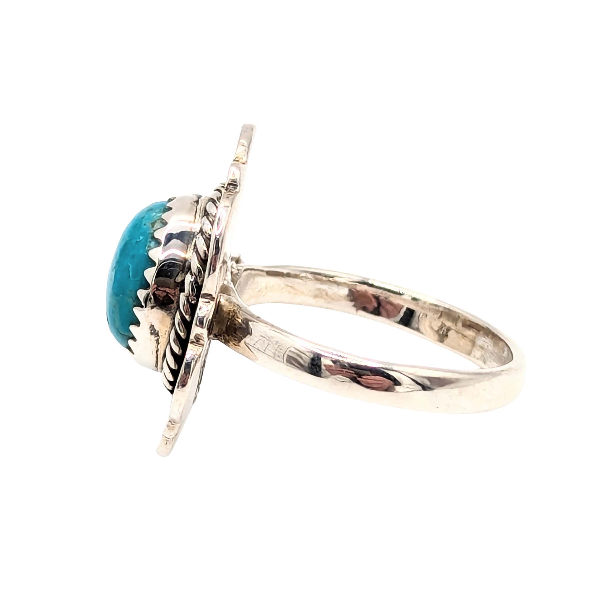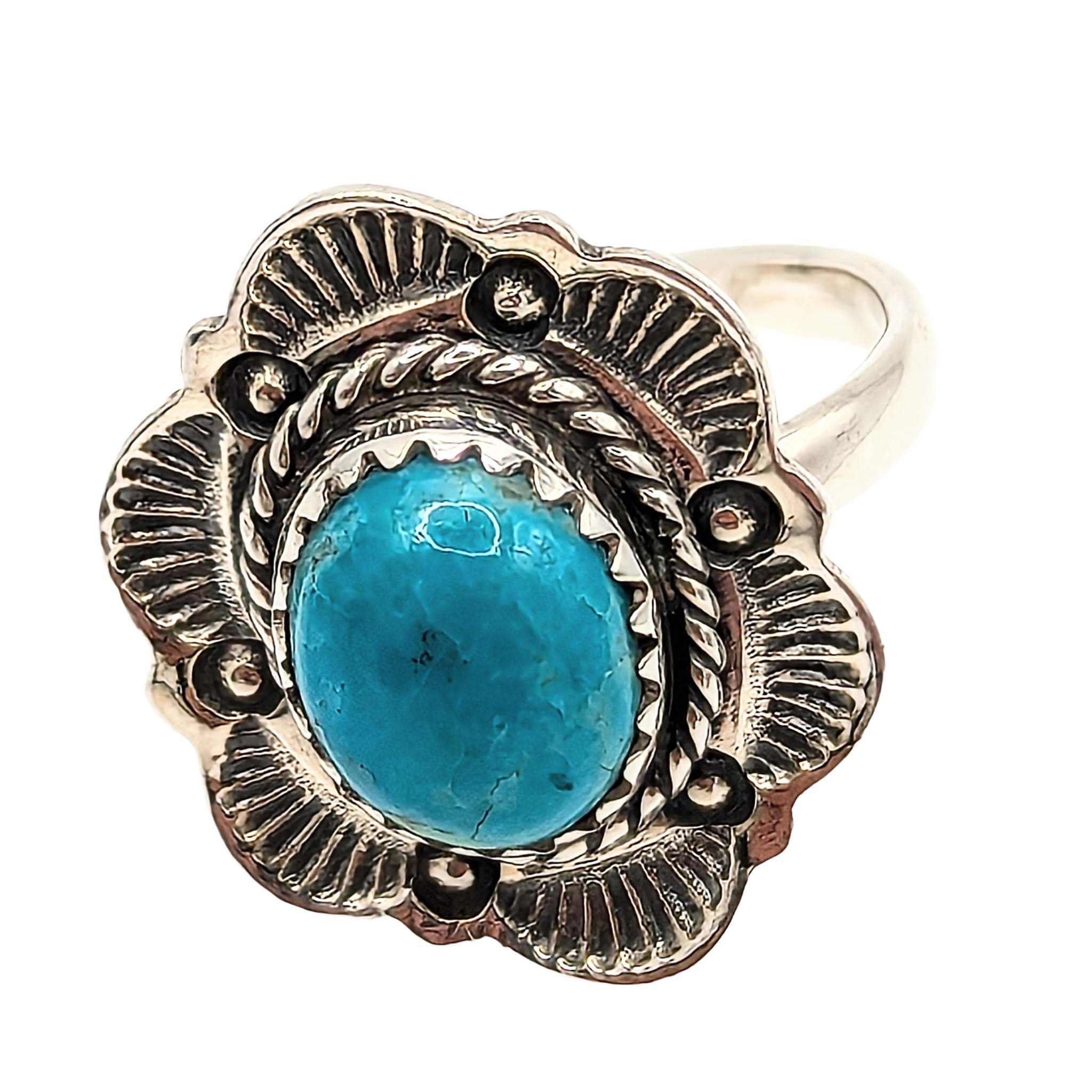 Southwest Sterling Silver Turquoise Scallop Stamped Ring Size 7.5 Signed Hada Sterling 5.6g