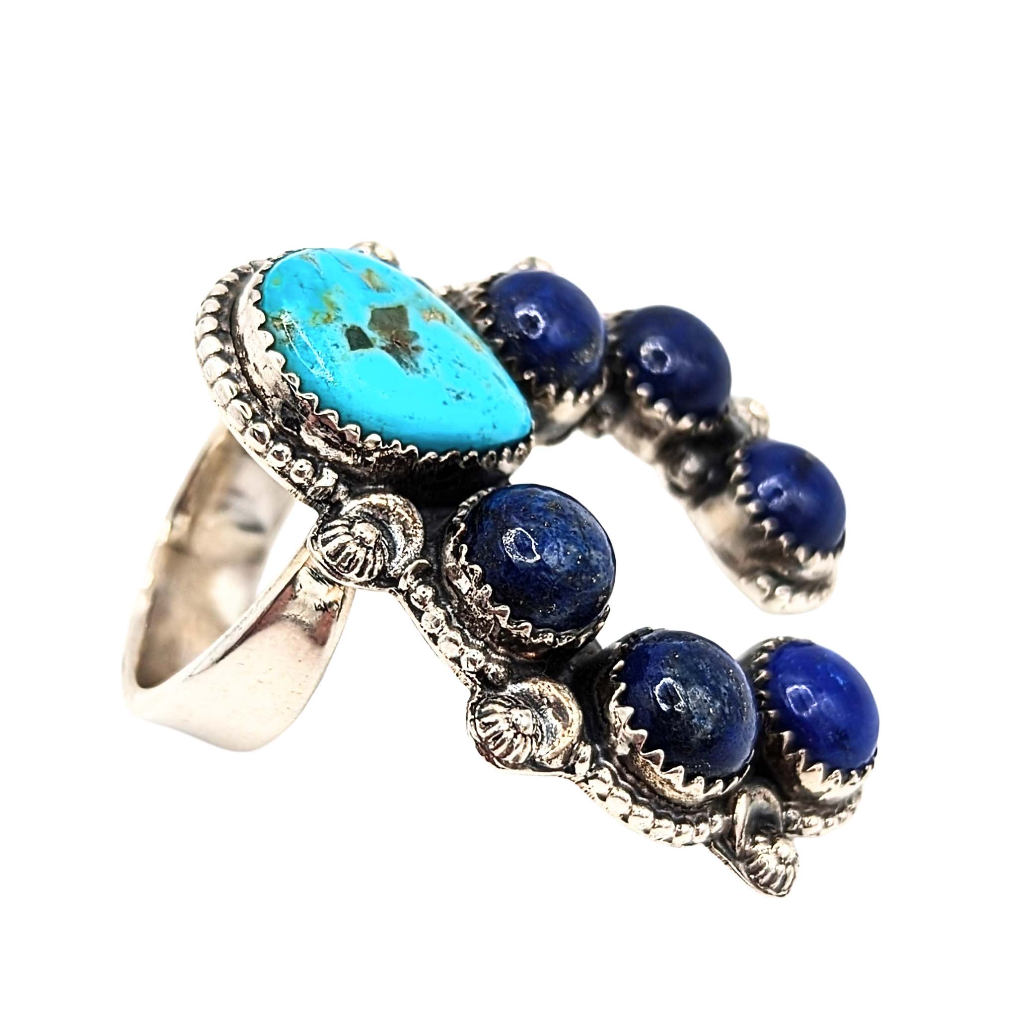 Southwest Sterling Silver Lapis Turquoise Horseshoe Ring Approx Size 7 Adjustable Signed Hada Sterling 20.5g