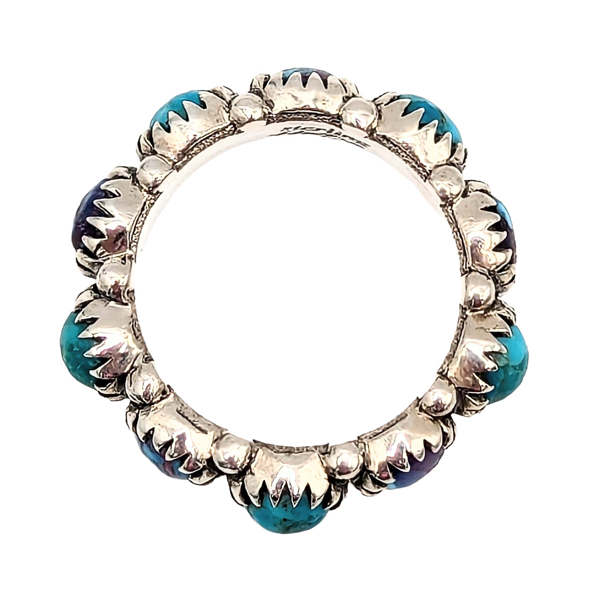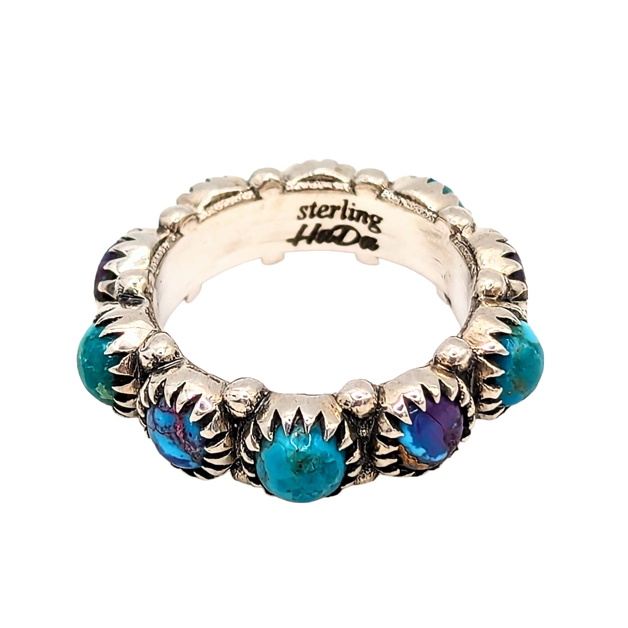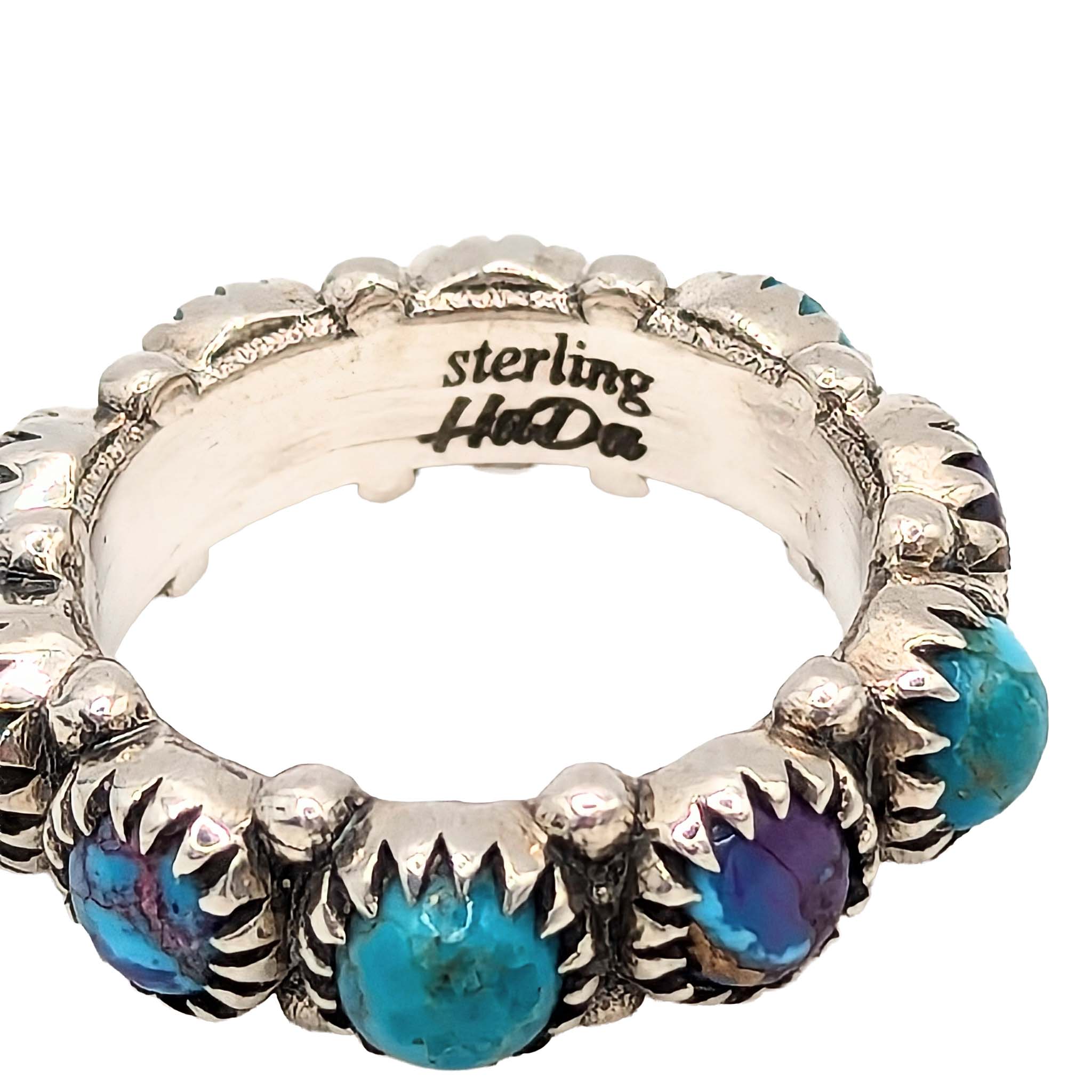 Southwest Sterling Silver Purple Mojave Turquoise Studded Band Ring Size 7 Signed Hada Sterling 7.2g