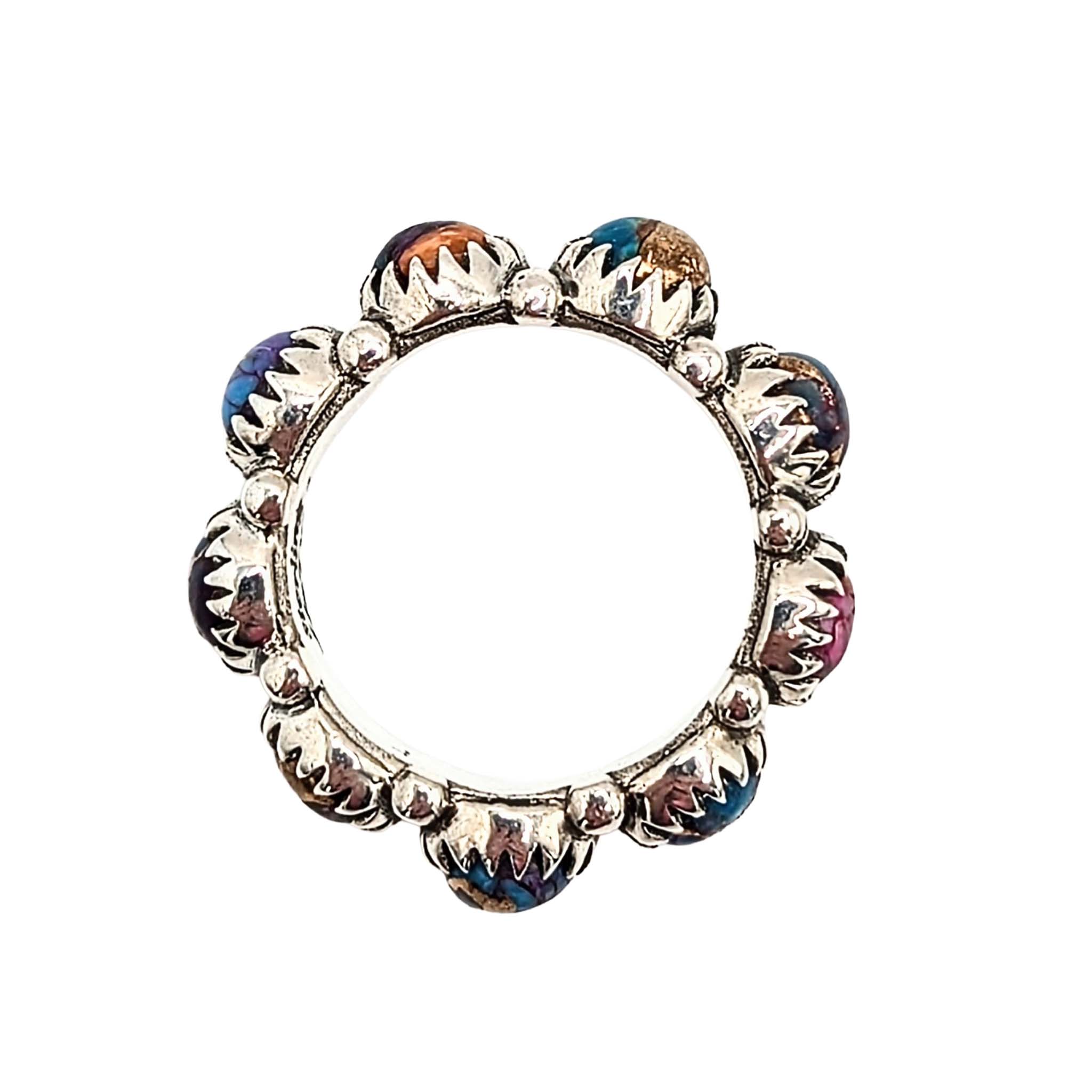 Southwest Sterling Silver Pink Dream Dhalia Turquoise Studded Band Ring Size 6 Signed Hada Sterling 6.8g