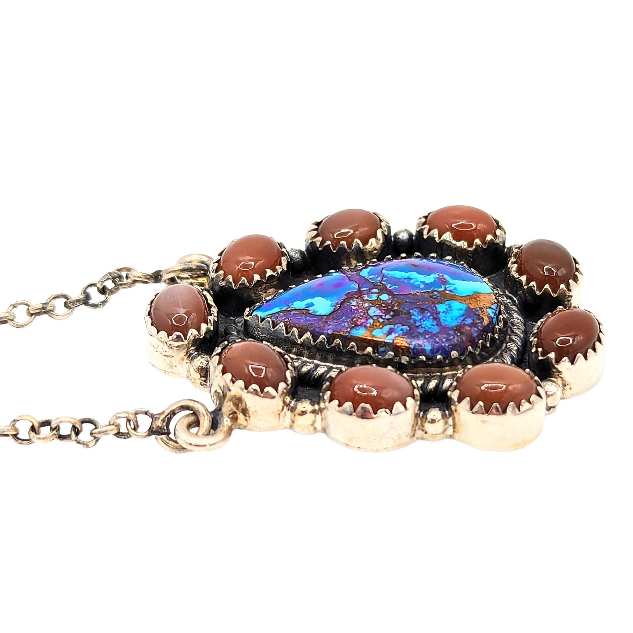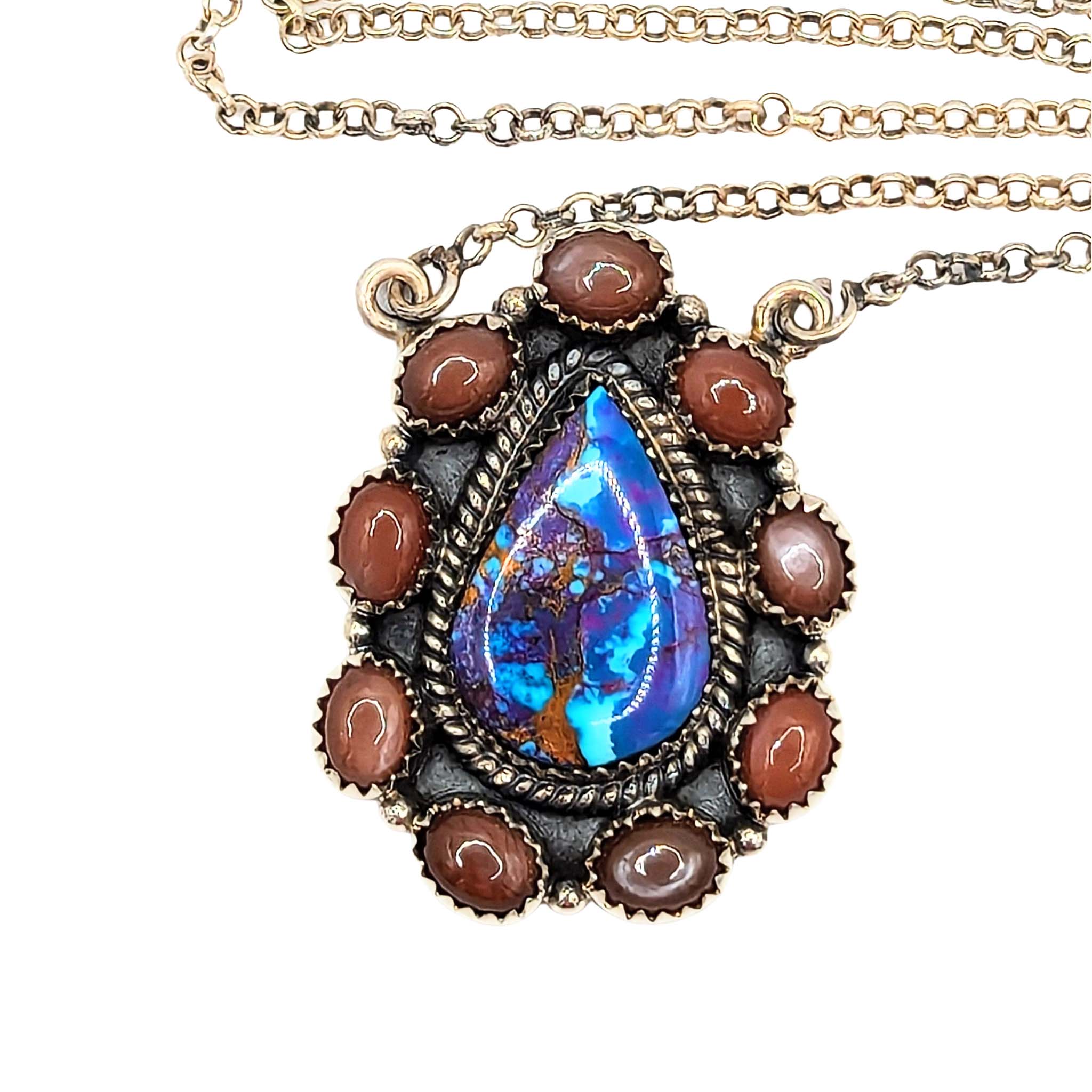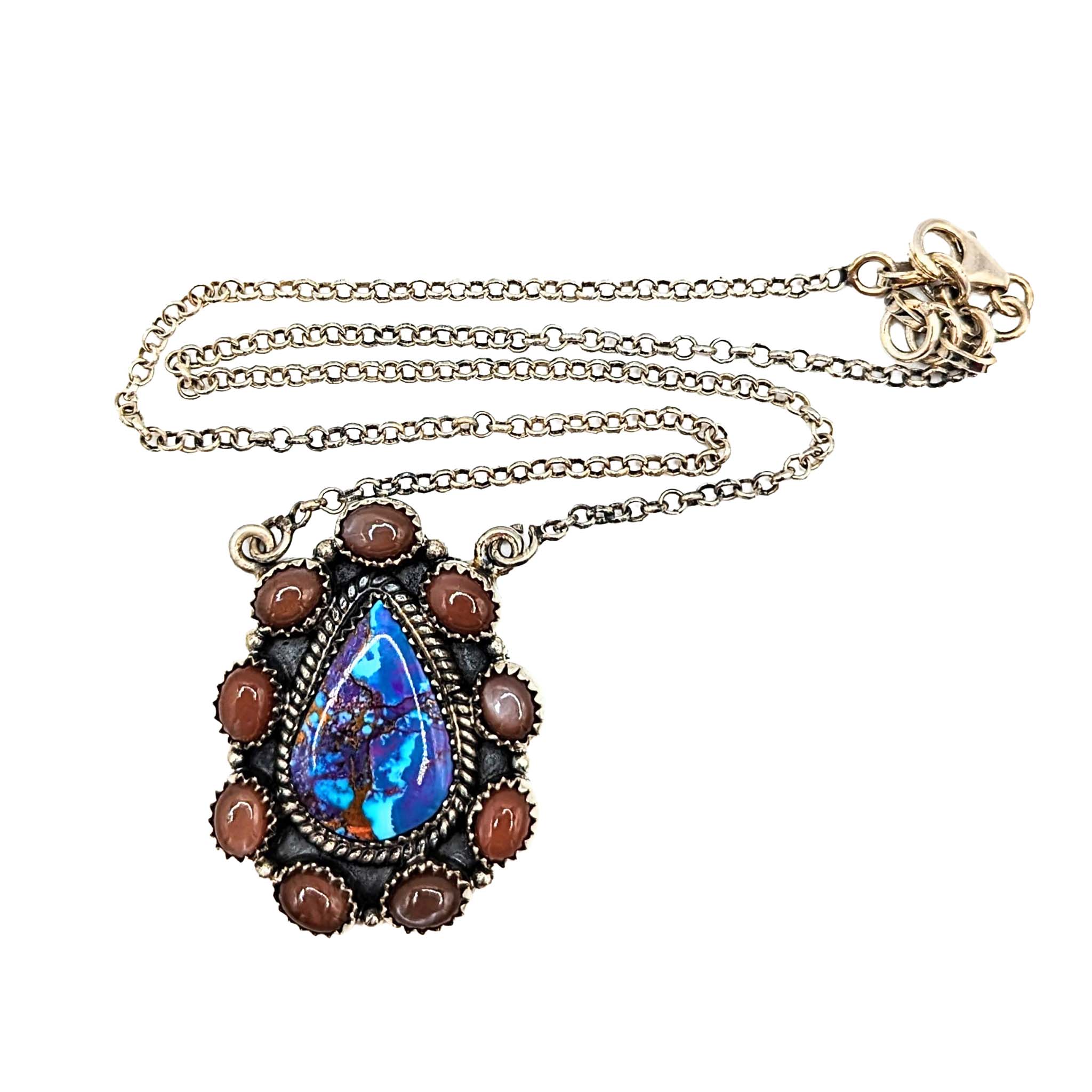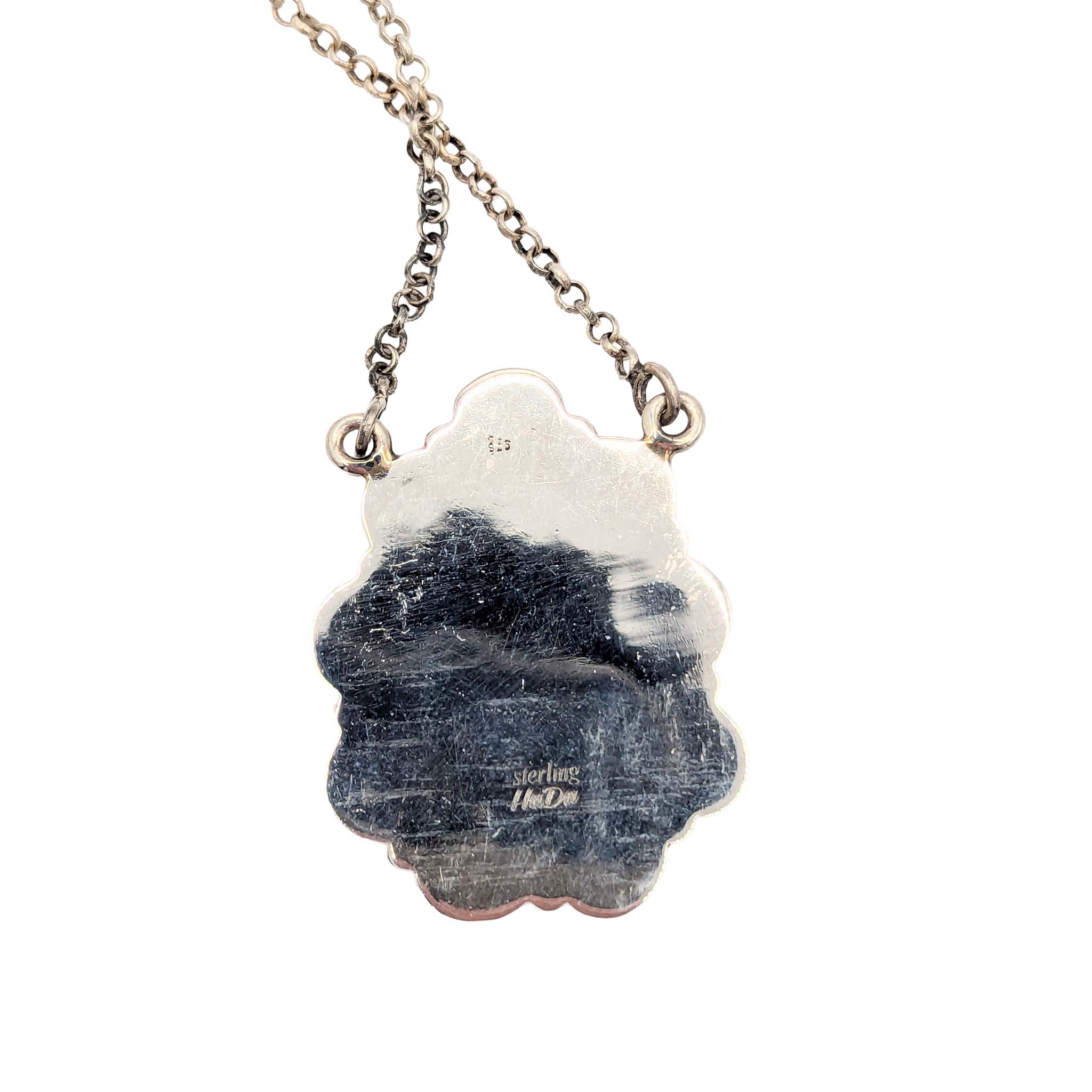 Southwest Sterling Silver Purple Mojave Turquoise Opal Teardrop Necklace Signed Hada Sterling 15-16in Length Adjustable 19.8g
