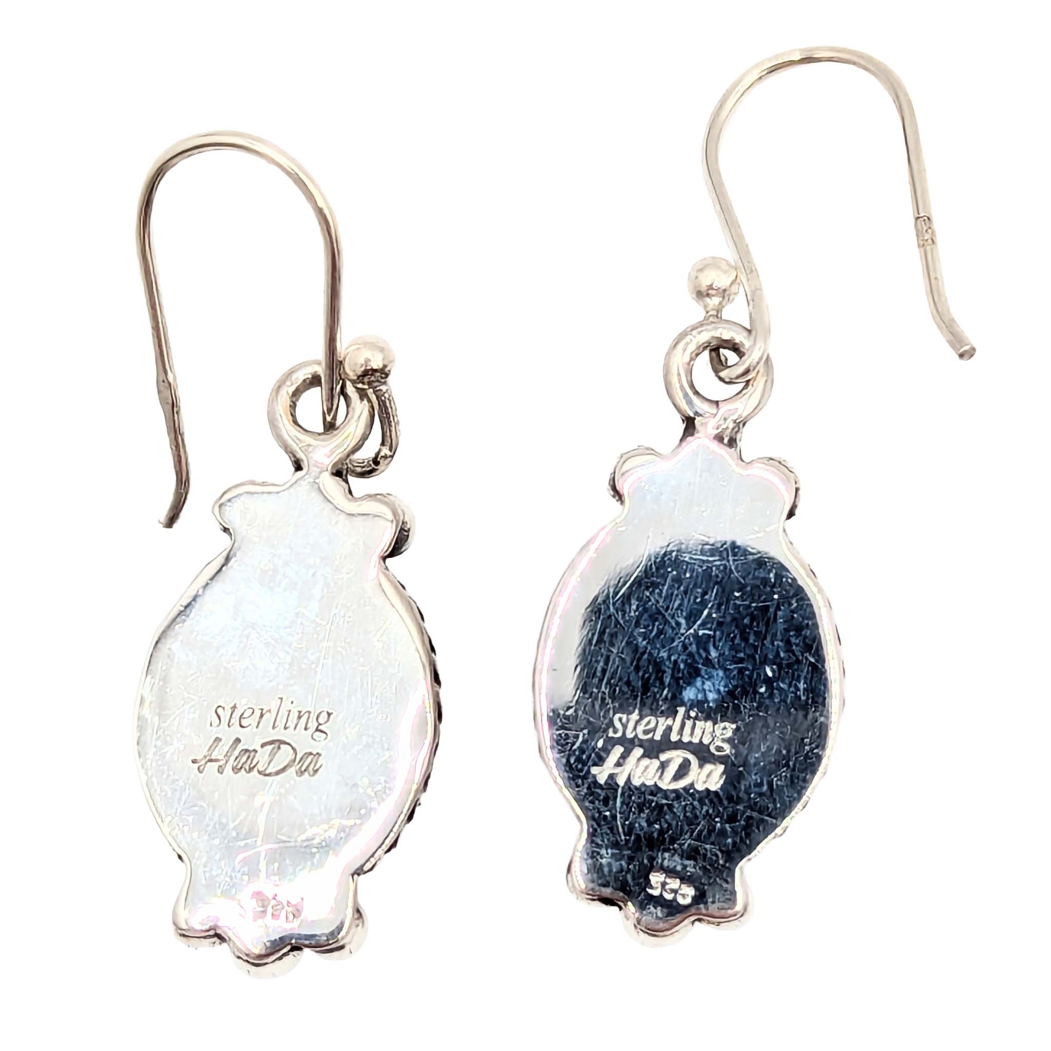 Southwest Sterling Silver Dhalia Rose Turquoise Dangle Stone Earrings Signed Hada Sterling 6g