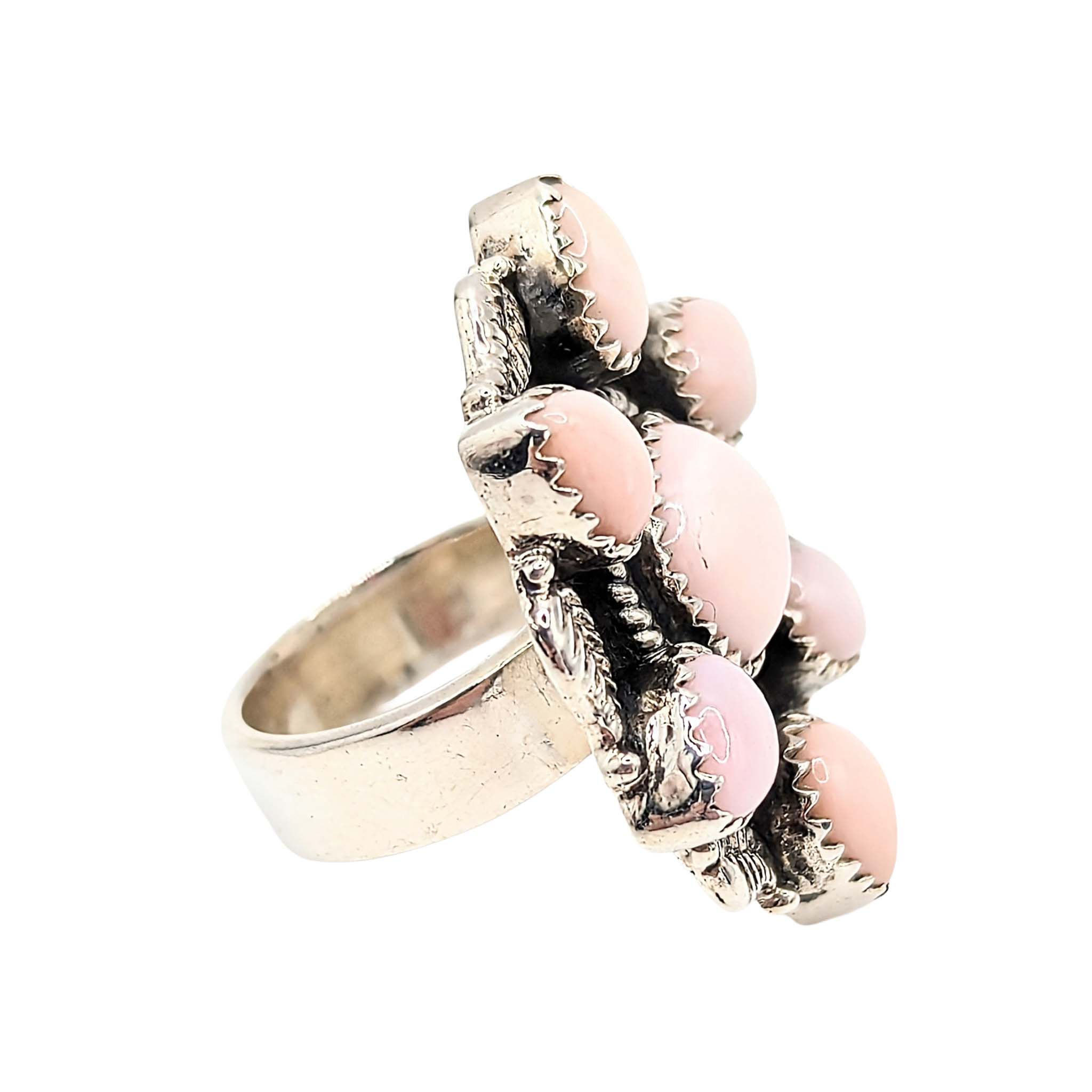 Southwest Sterling Silver Pink Opal Multi Stone Ring Signed Hada Sterling Approx Size 6.5 Adjustable 15.5g