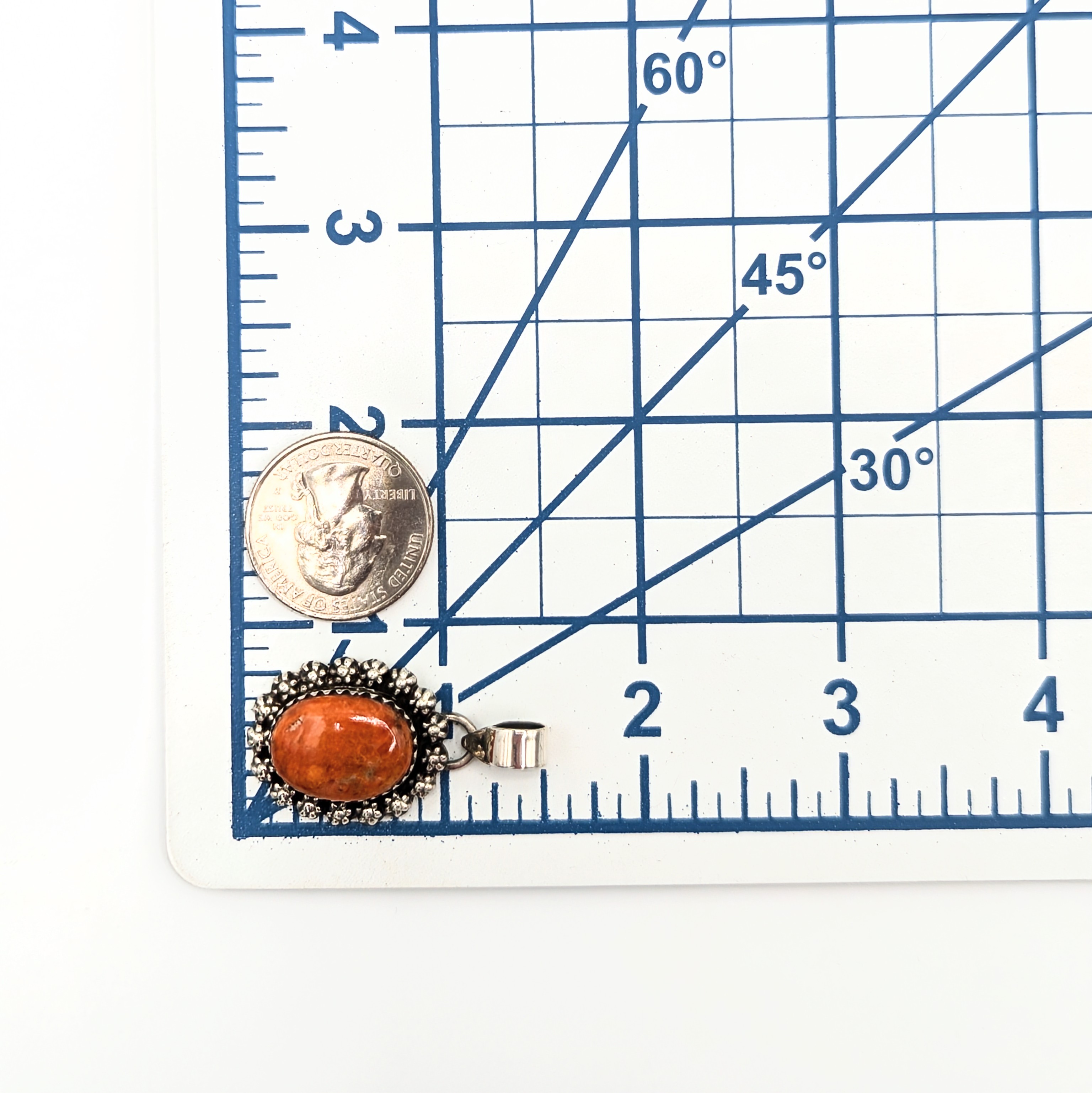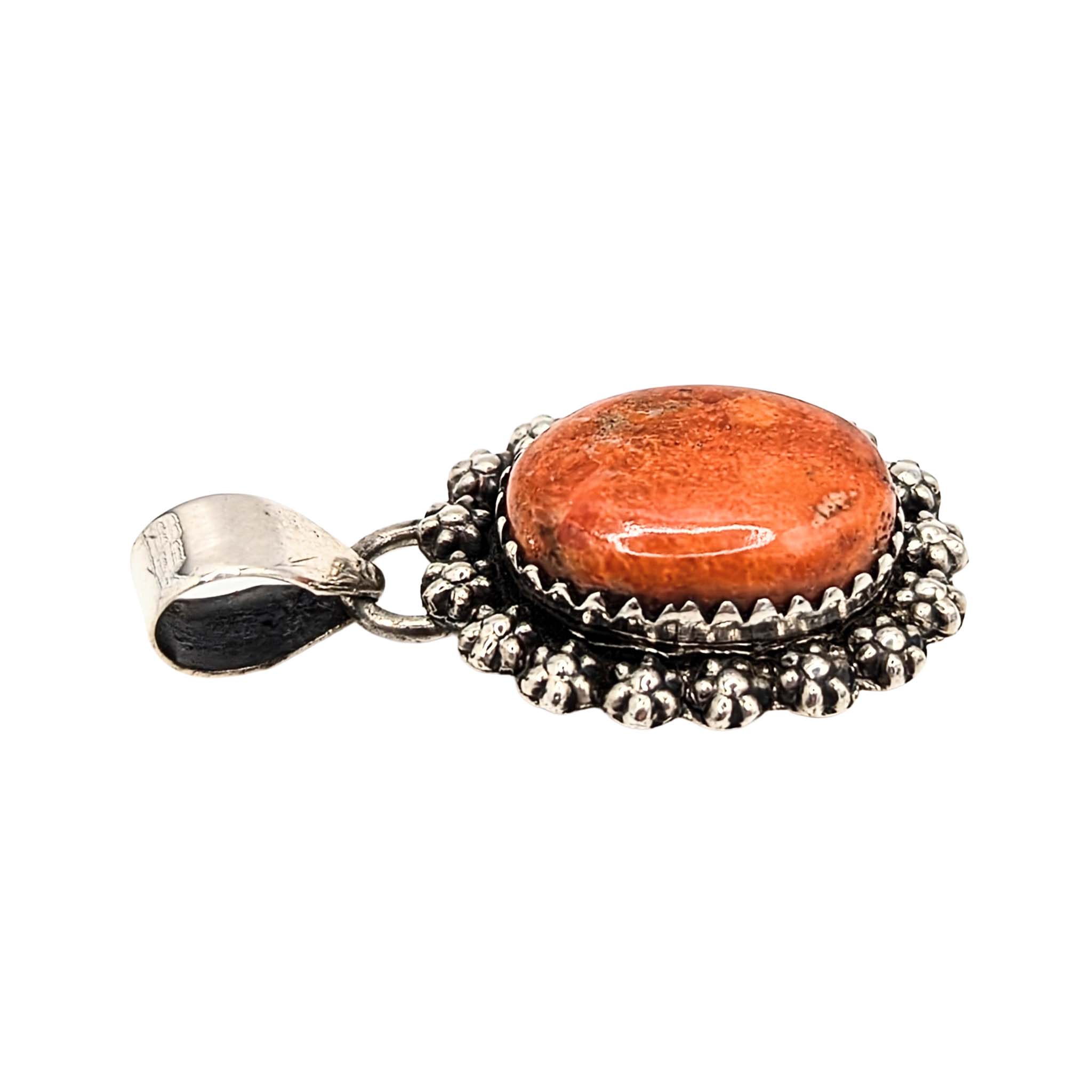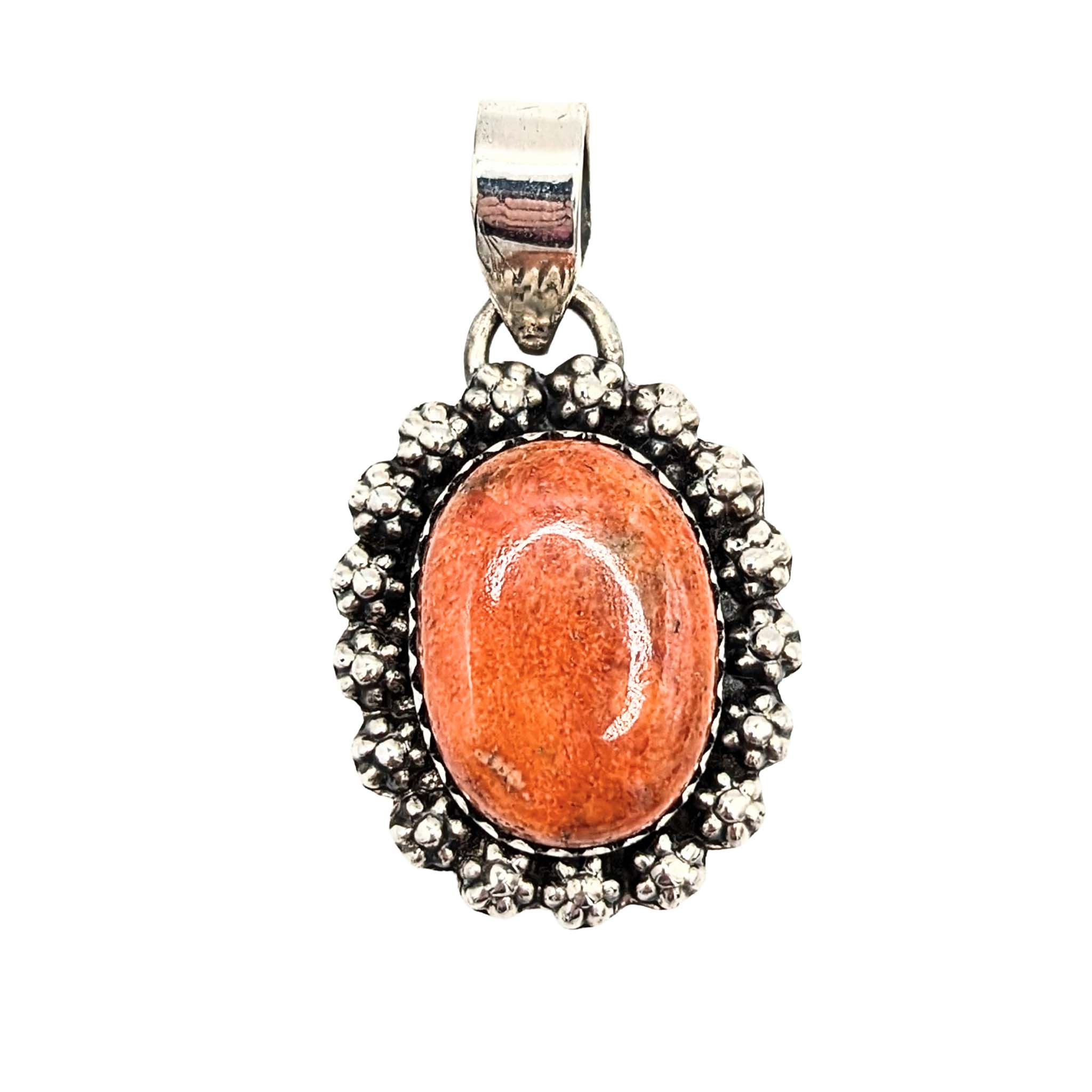 Southwest Sterling Silver Apple Coral Oval Pendant