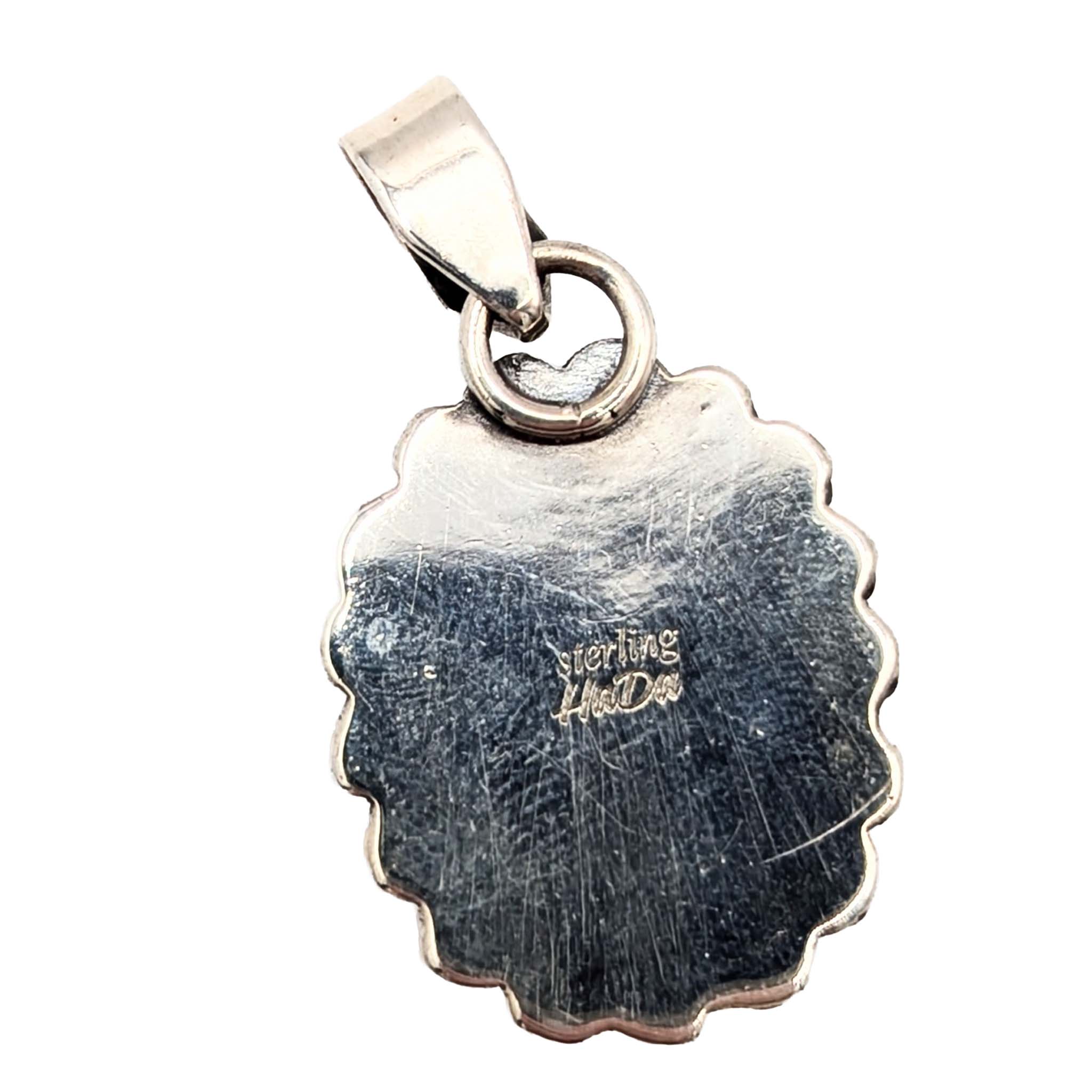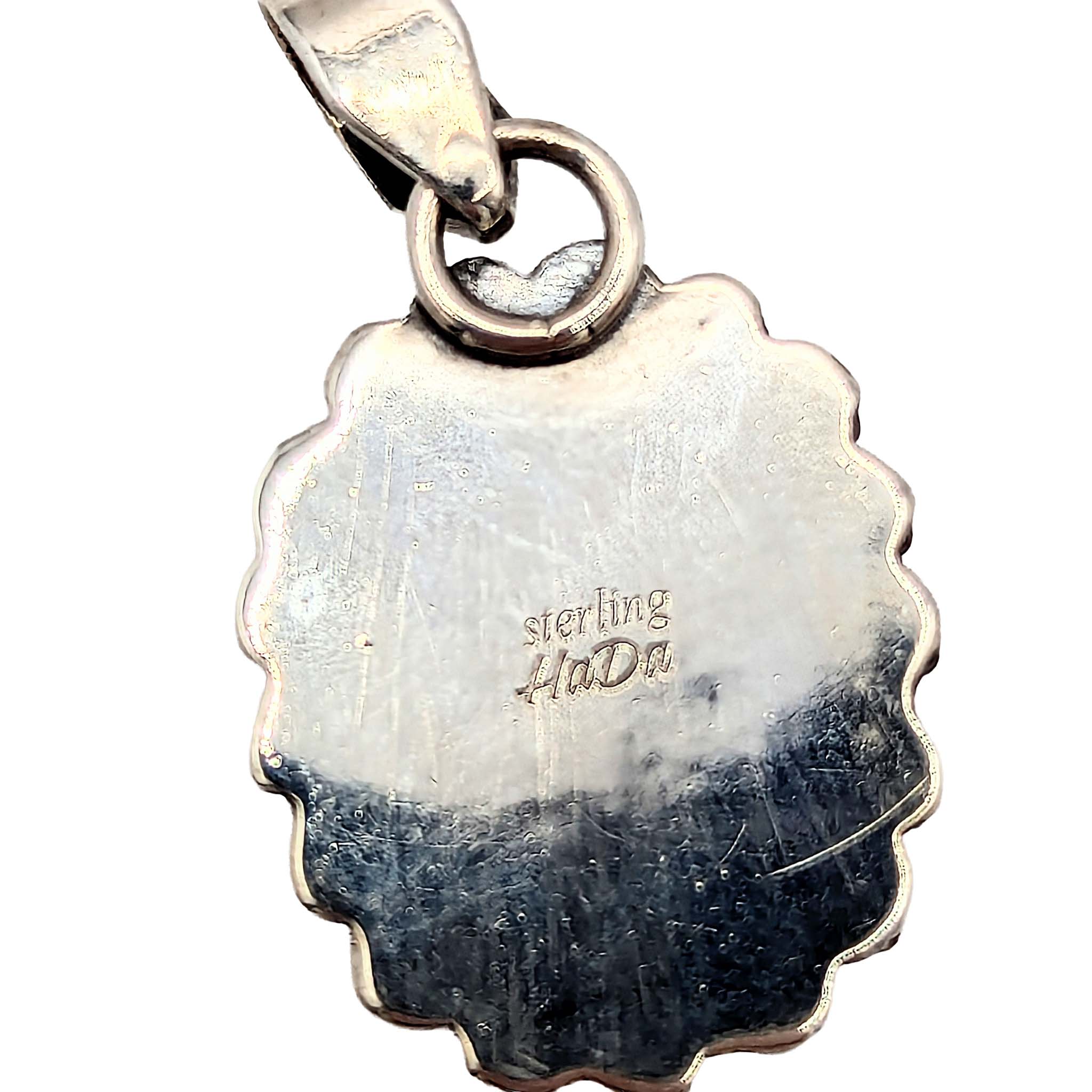 Southwest Sterling Silver Apple Coral Oval Pendant Signed Sterling Hada 6g