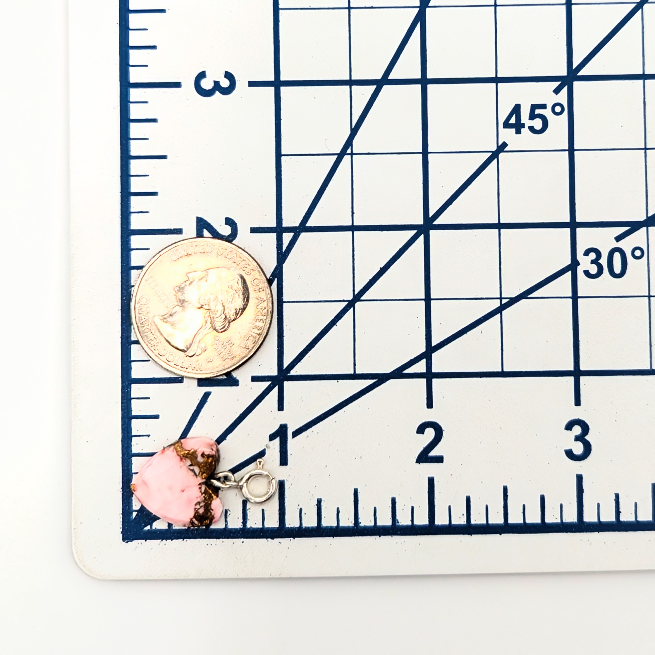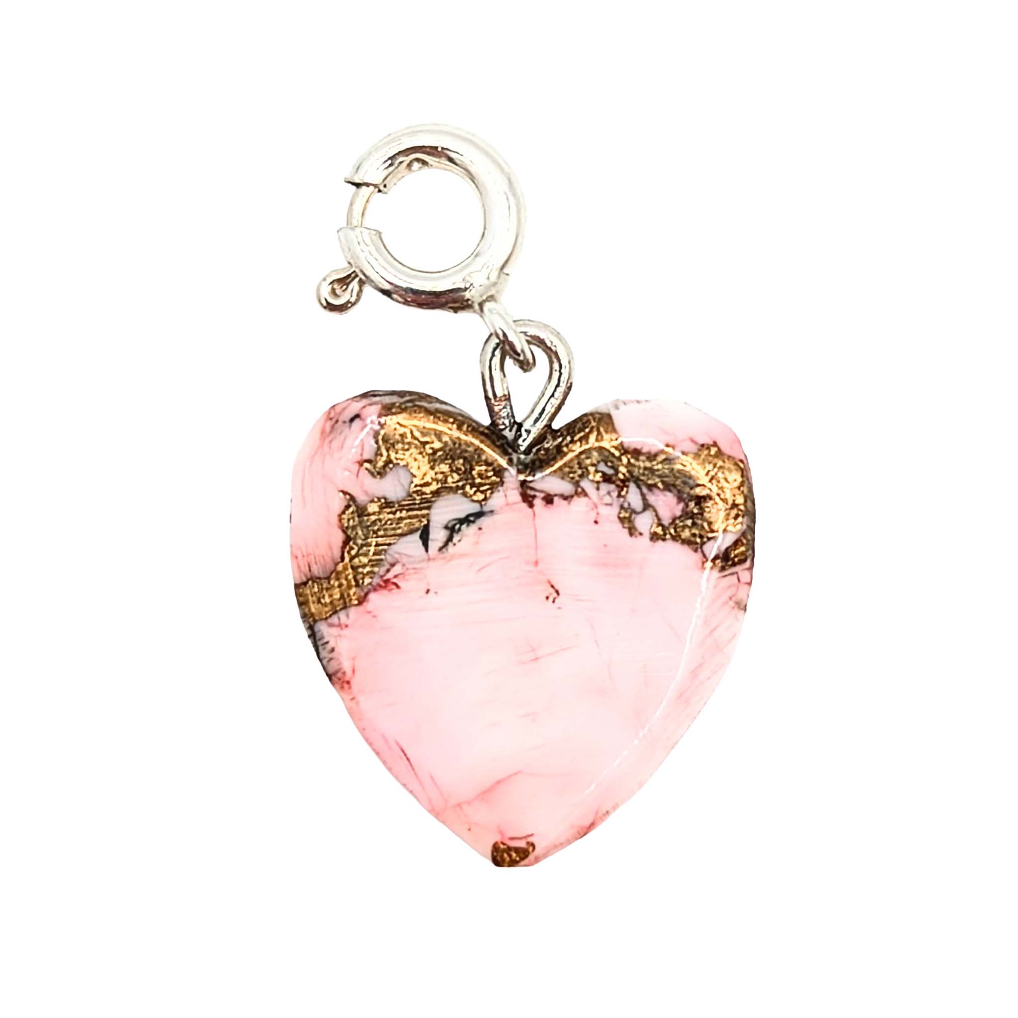 Native Hand Carved Pink Dhalia Turquoise Sterling Silver Heart Charm 1.2g