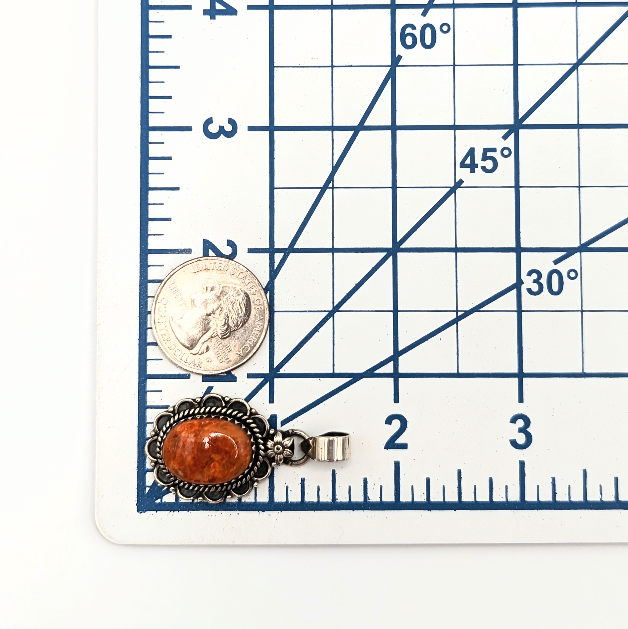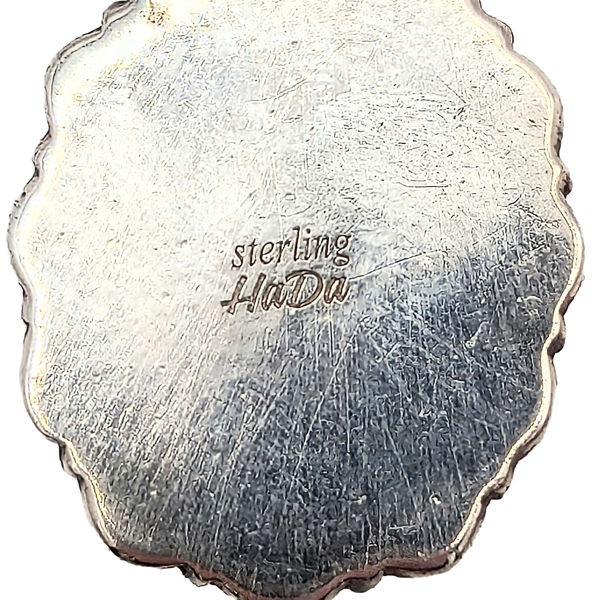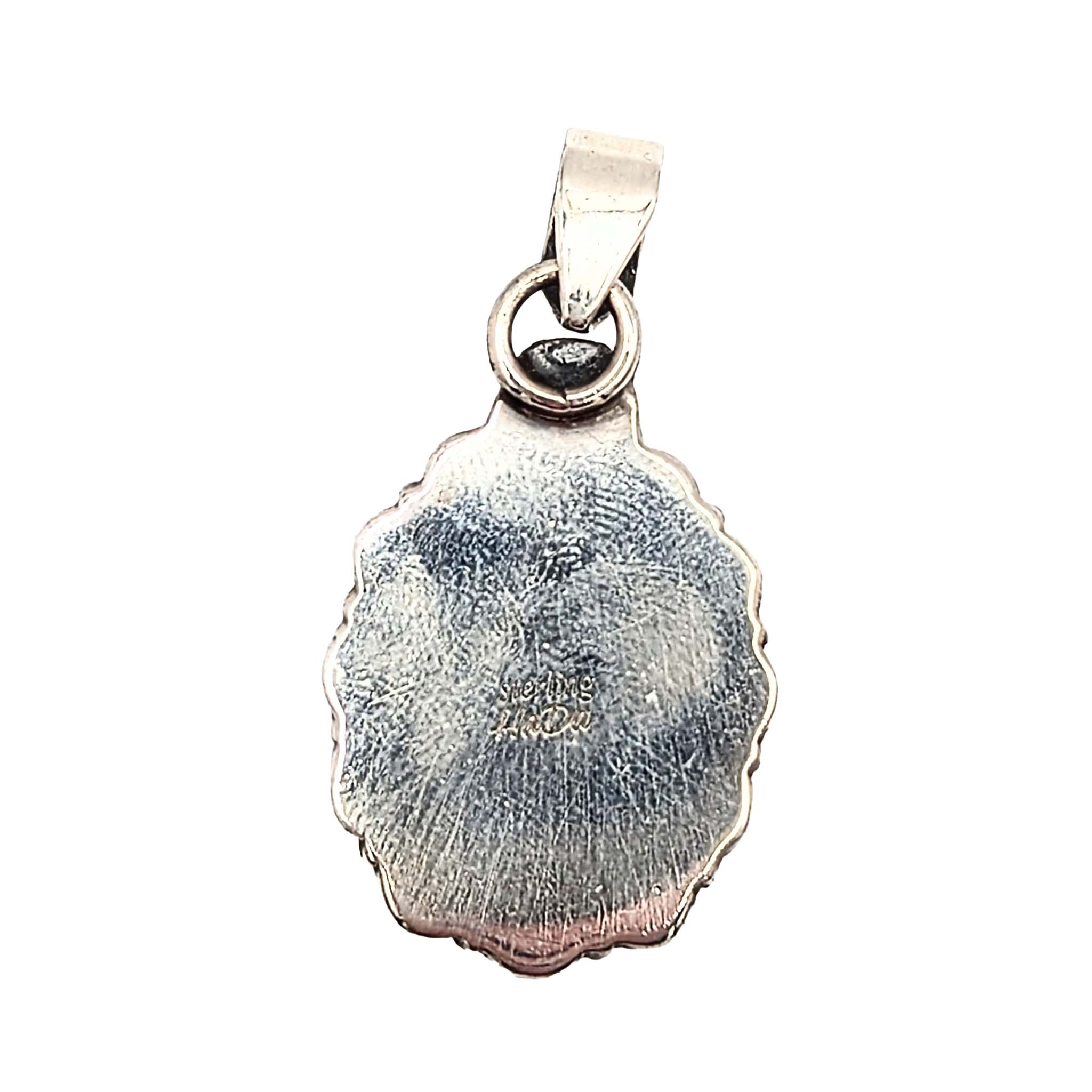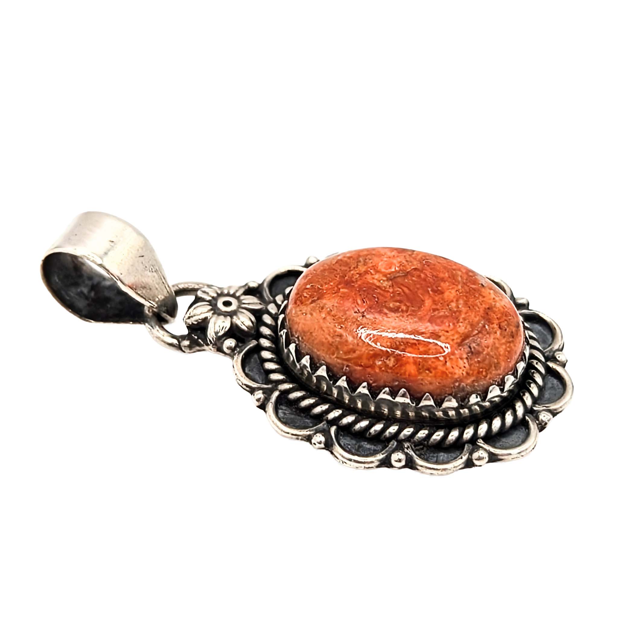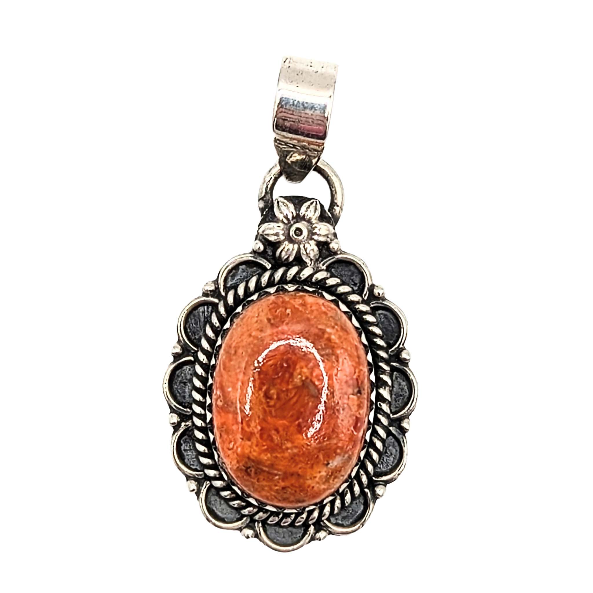 Southwest Sterling Silver Apple Coral Oval Floral Detail Pendant Signed Hada Sterling 7.5g