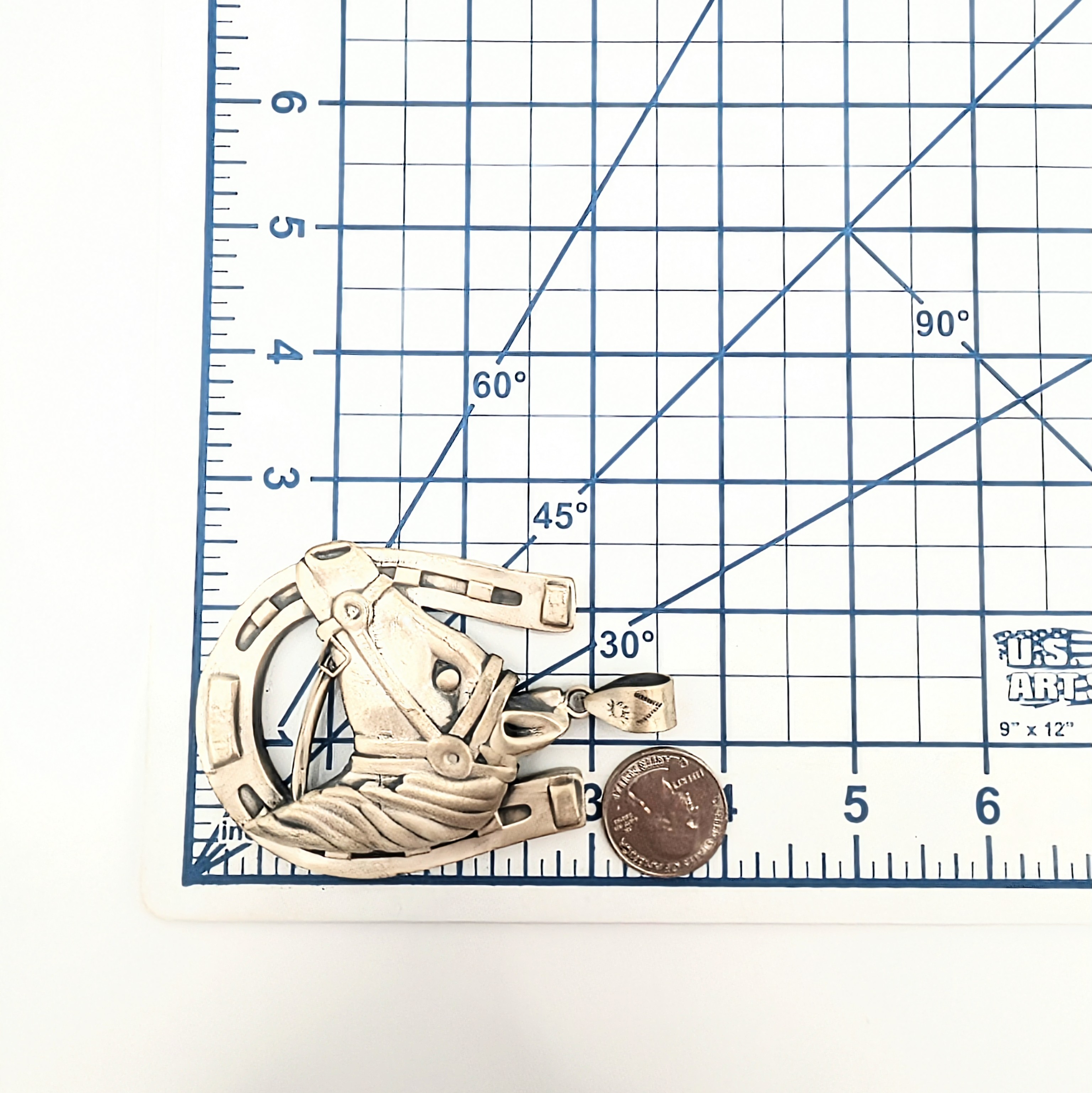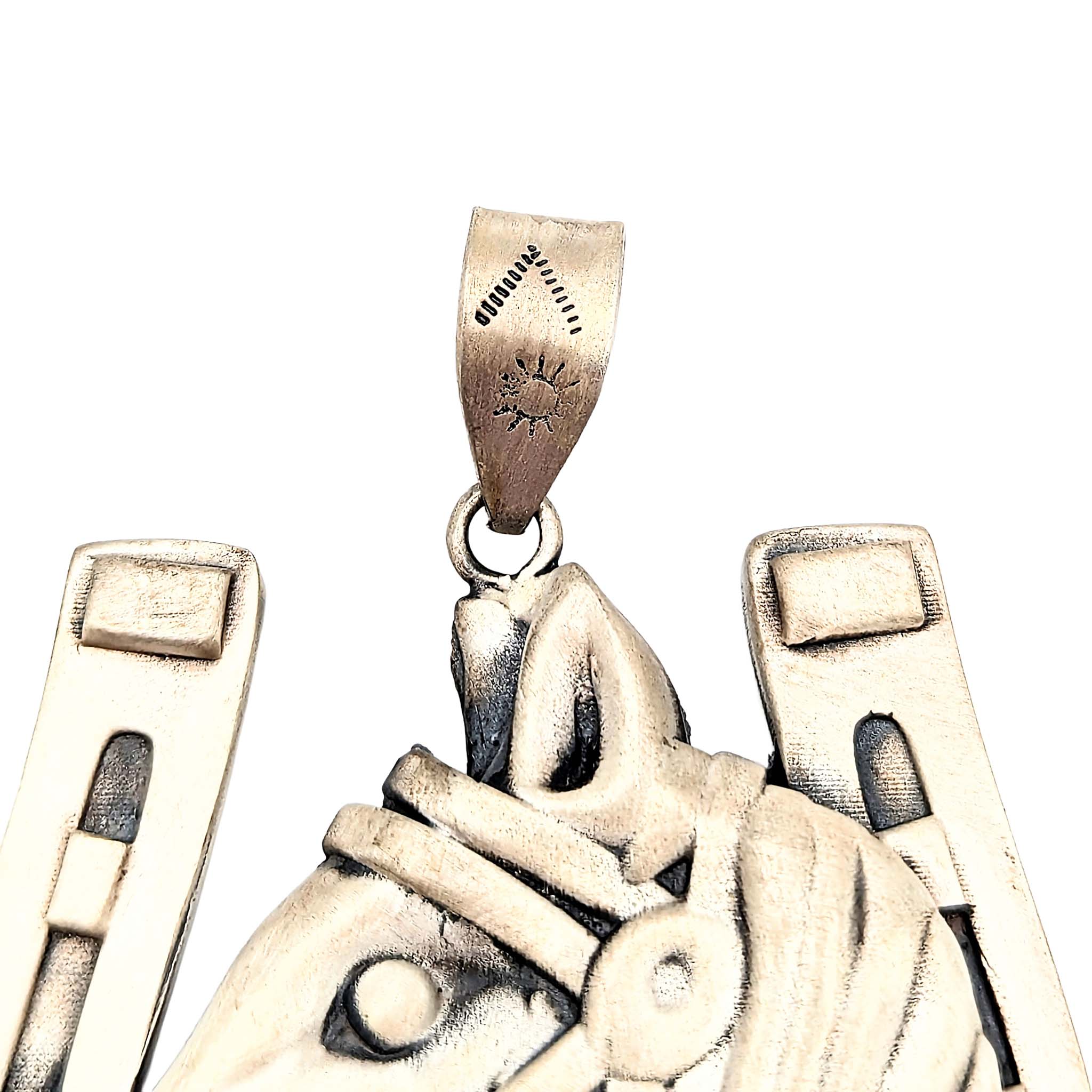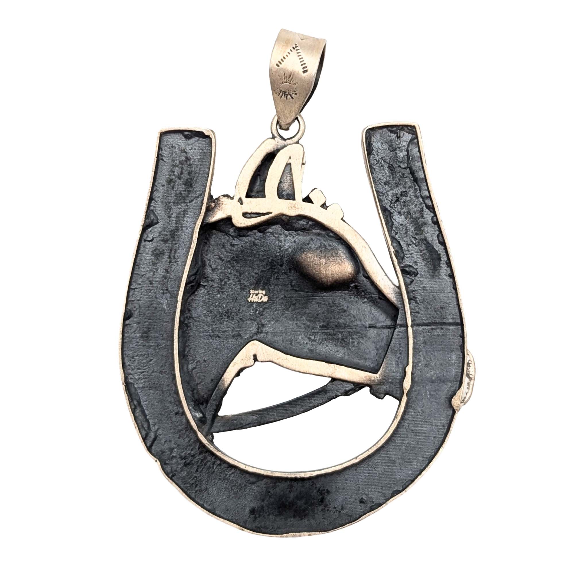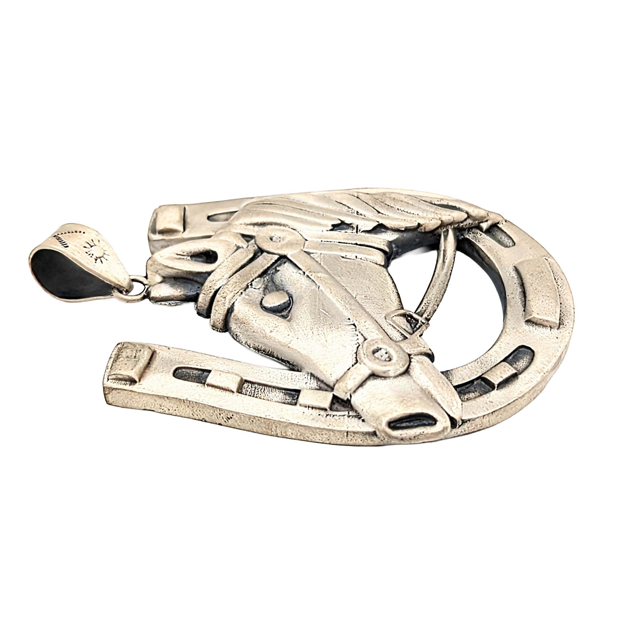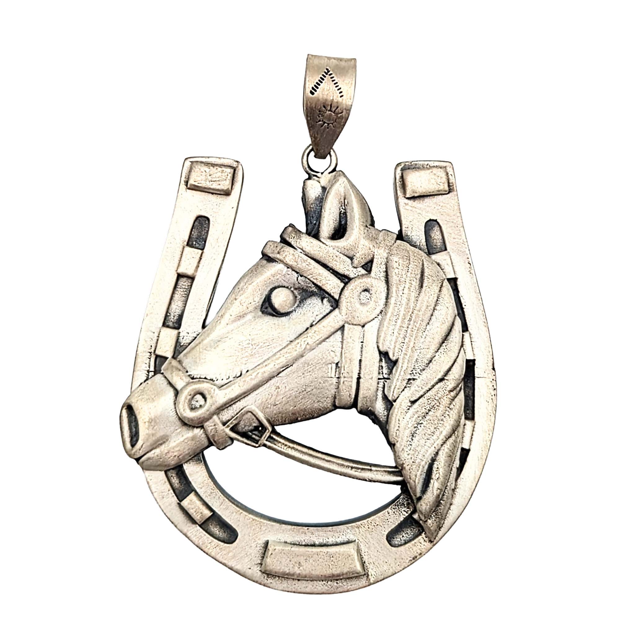 Southwest Sterling Silver Horse Head Horseshoe Pendant Signed Hada Sterling 83.2g