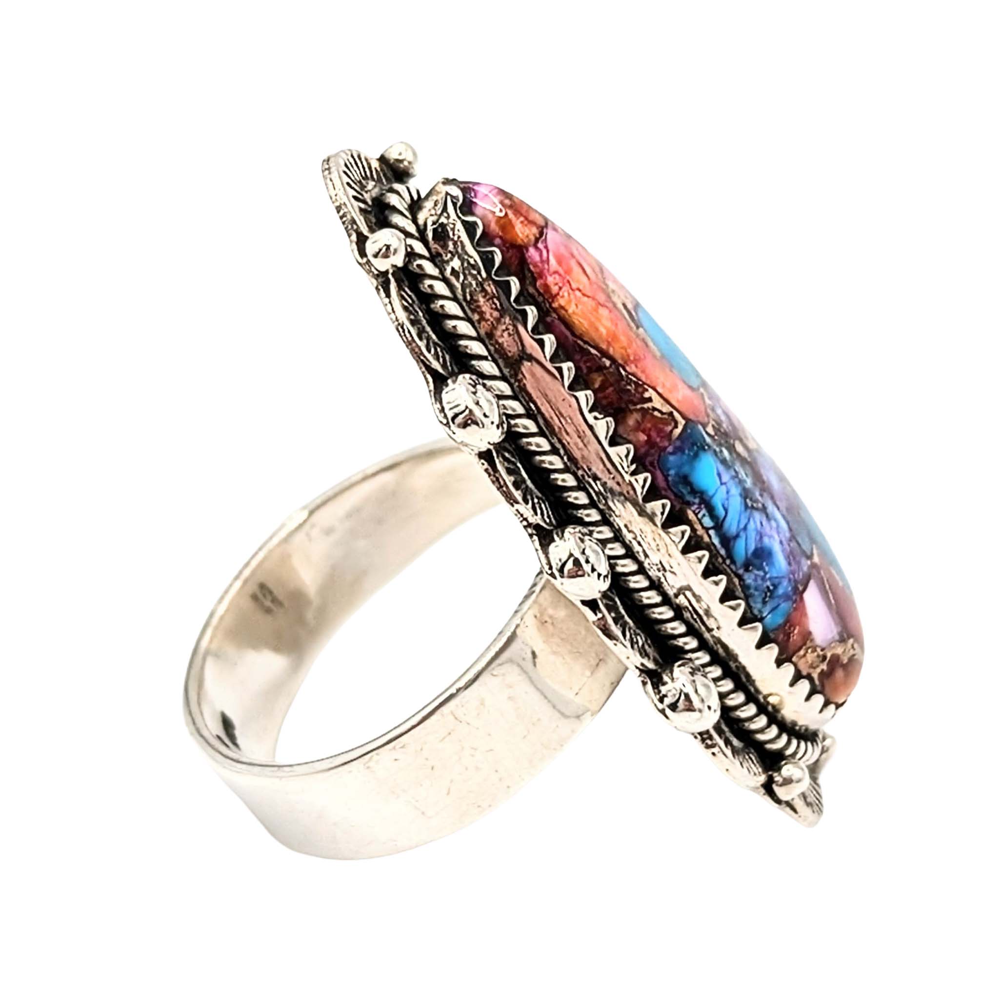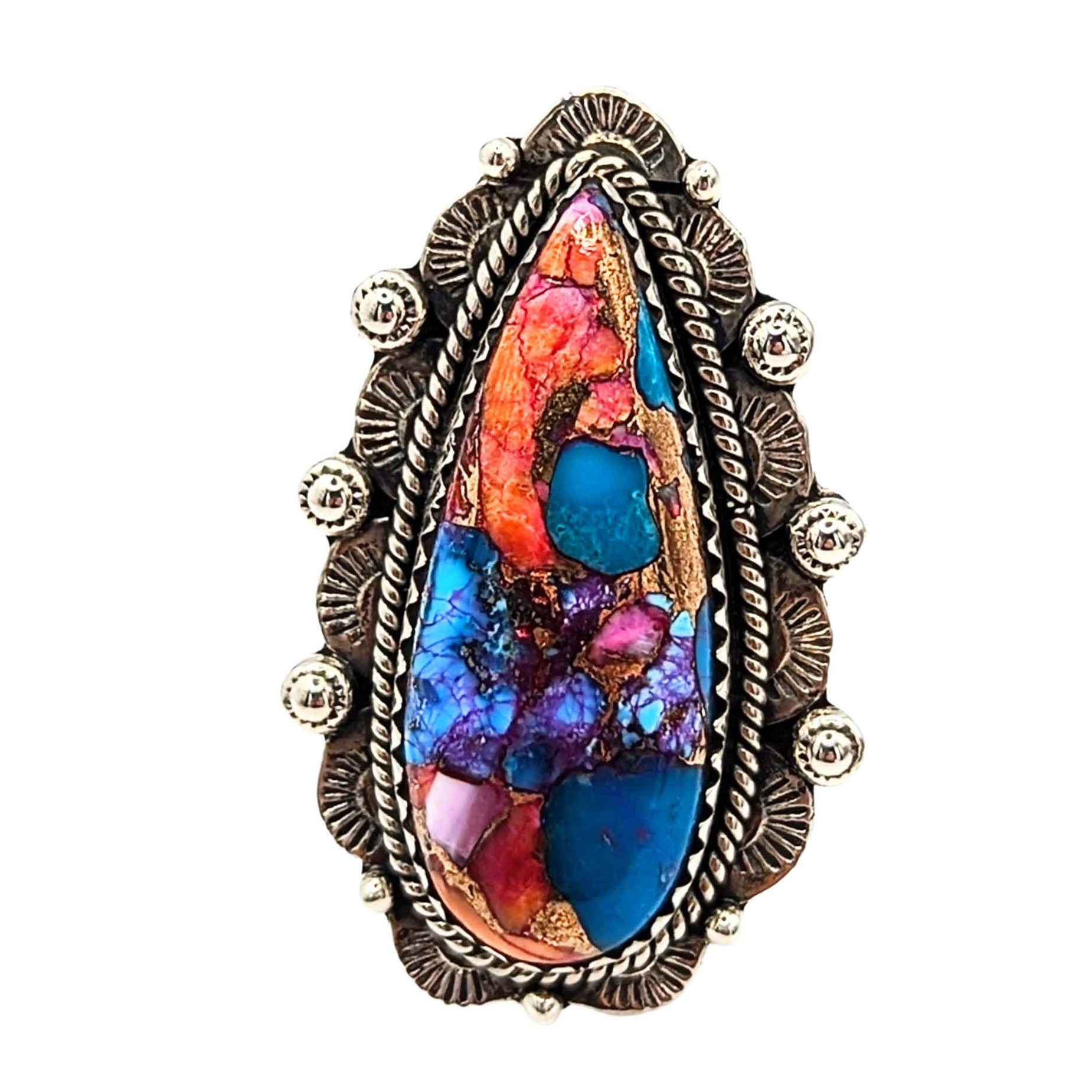 Southwest Sterling Silver Pink Dream Dhalia Turquoise Teardrop Ring Signed Hada Sterling Approx Size 8 Adjustable 11g