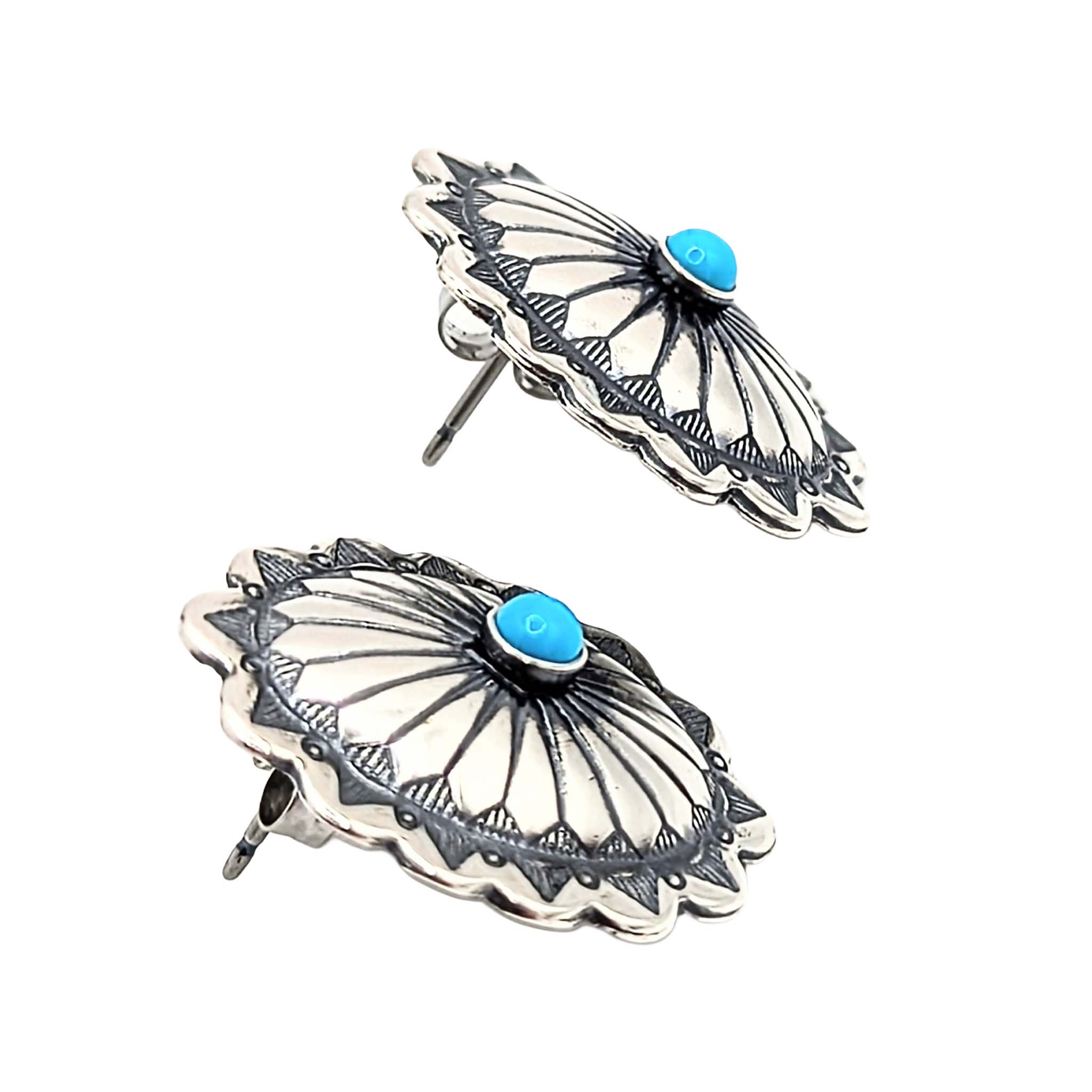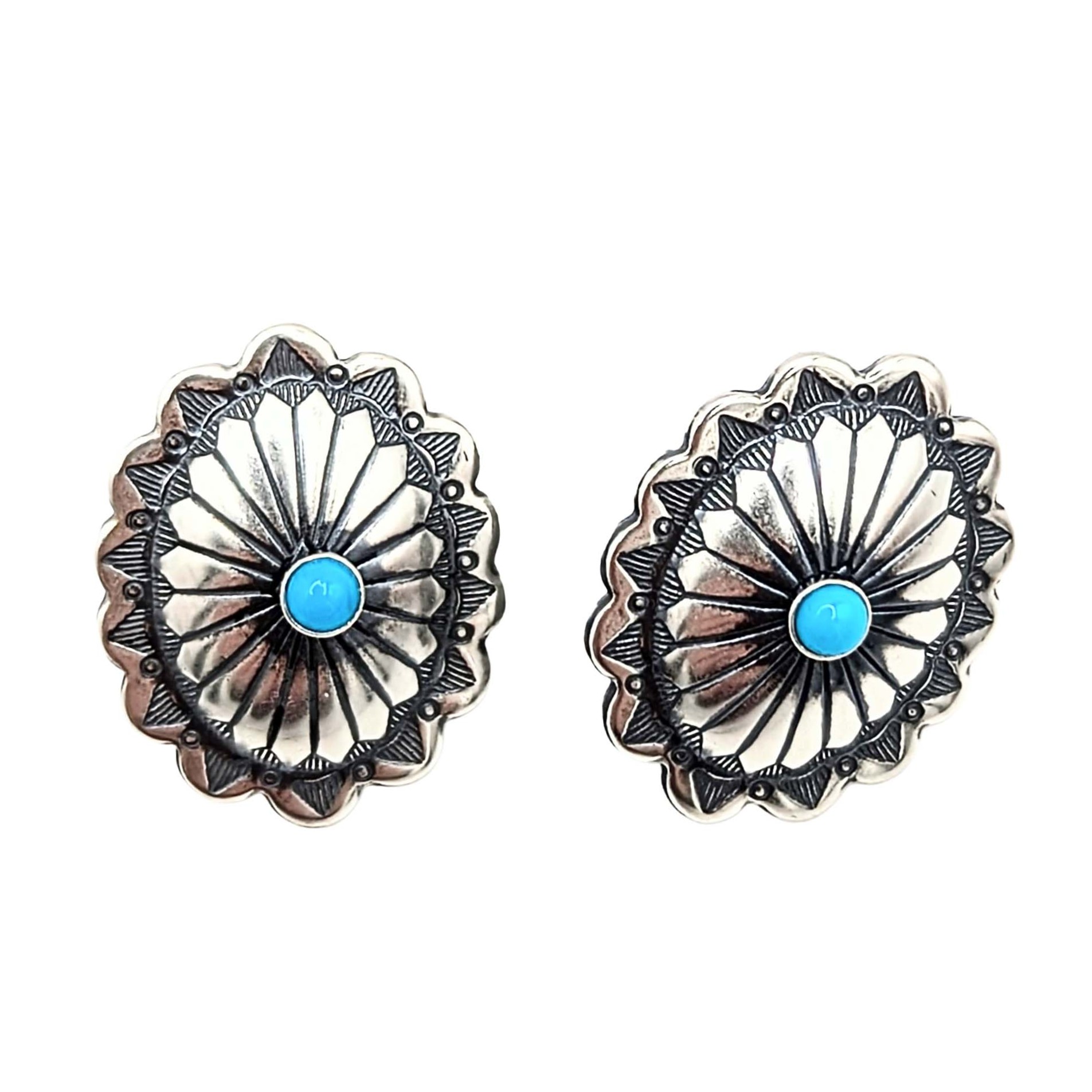 Southwest Sterling Silver Turquoise Stamped Concho Stud Earrings