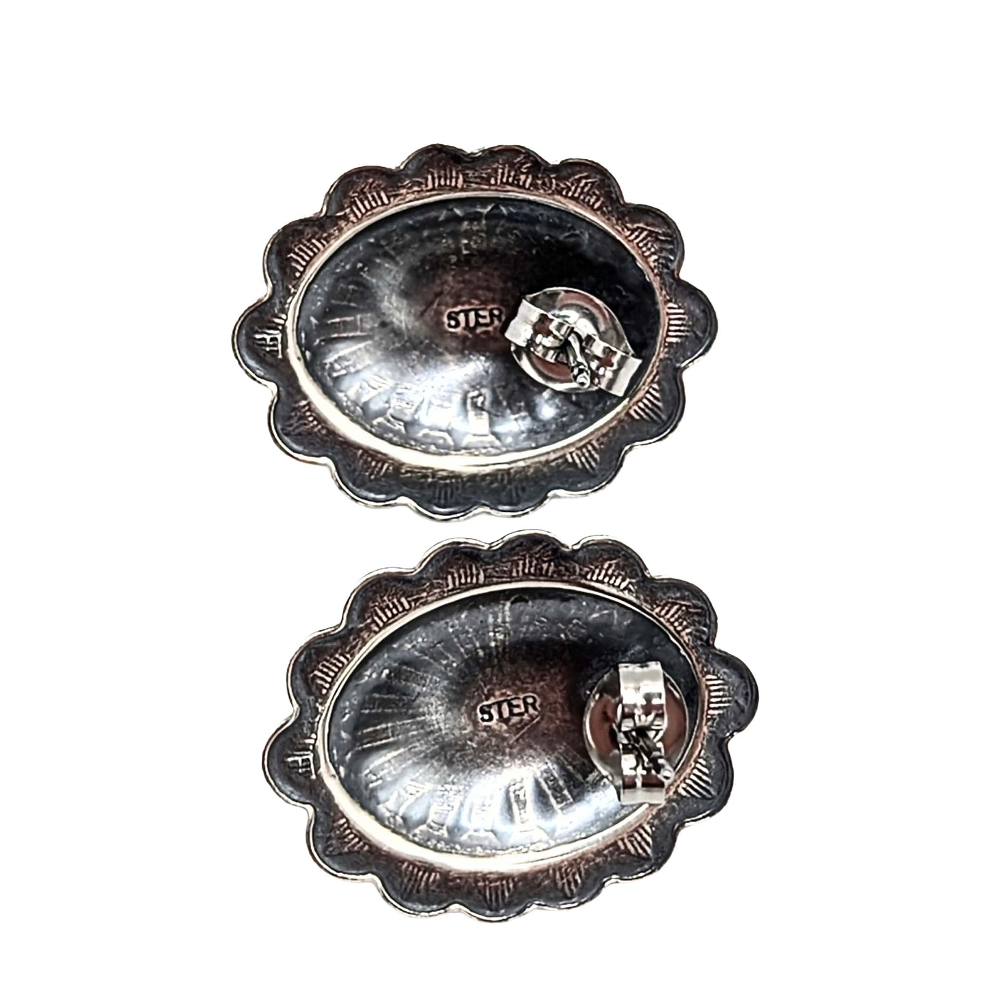 Southwest Sterling Silver Turquoise Stamped Concho Stud Earrings Signed Ster 2.7g