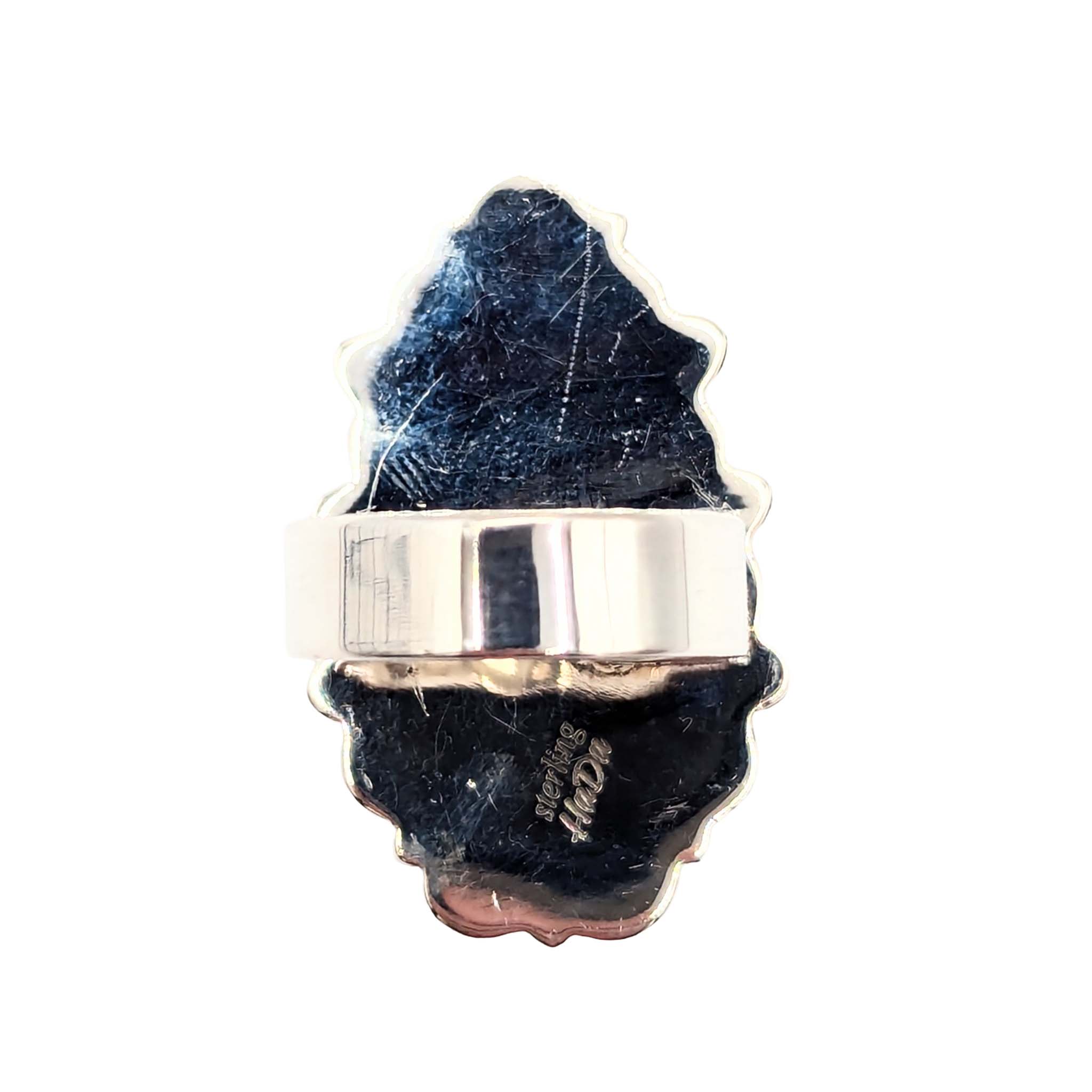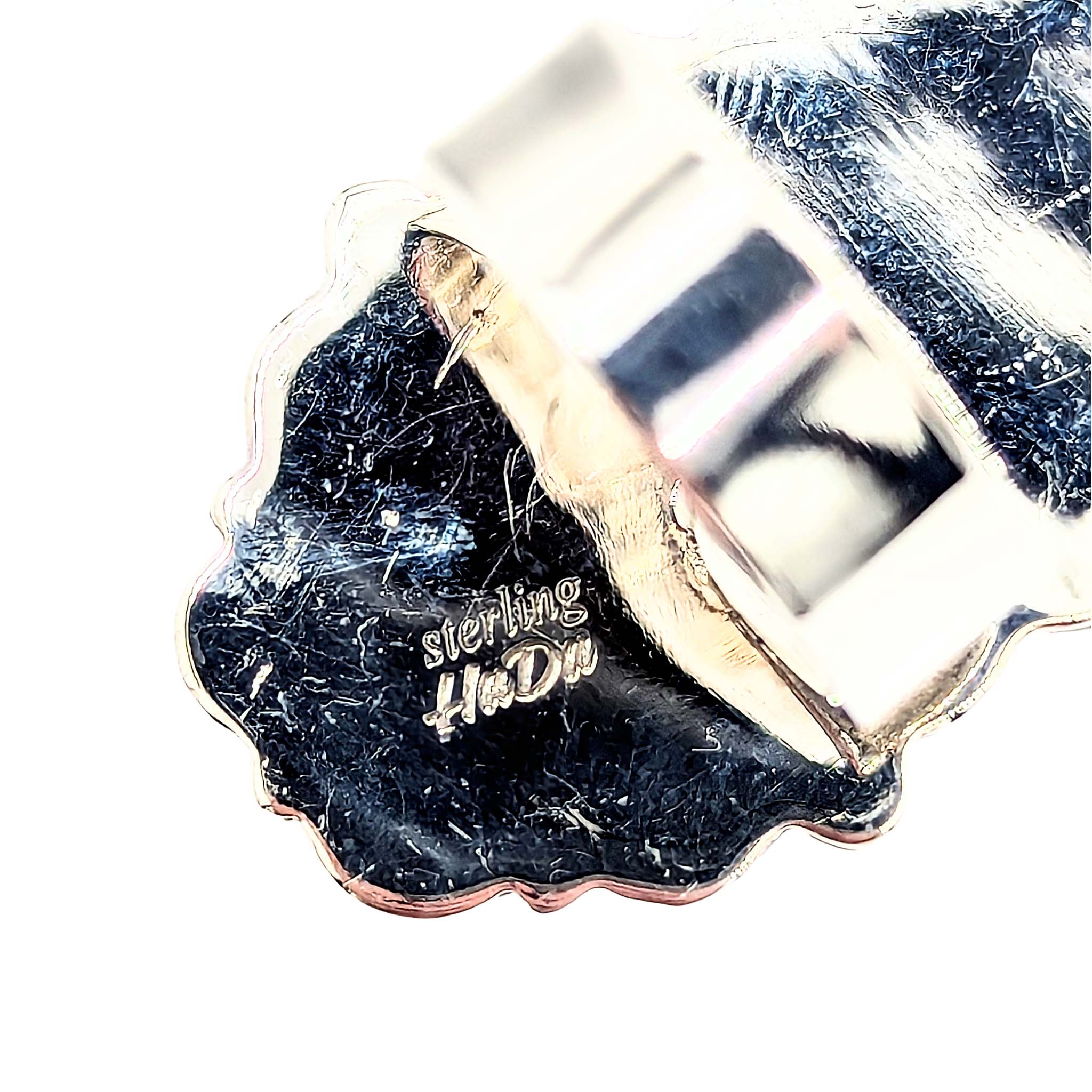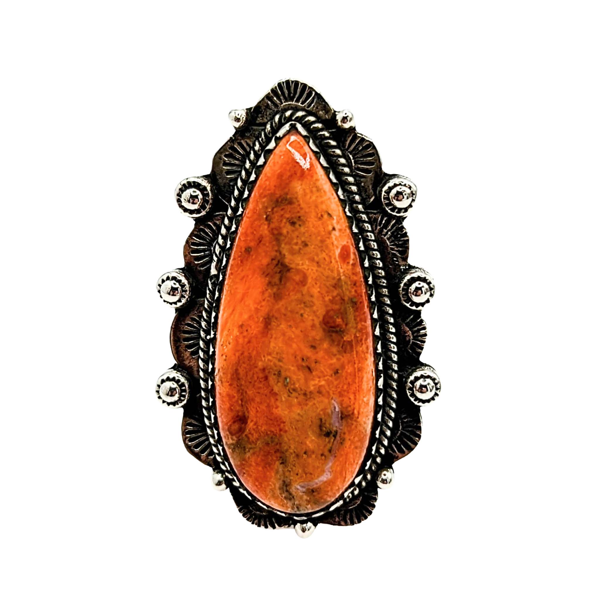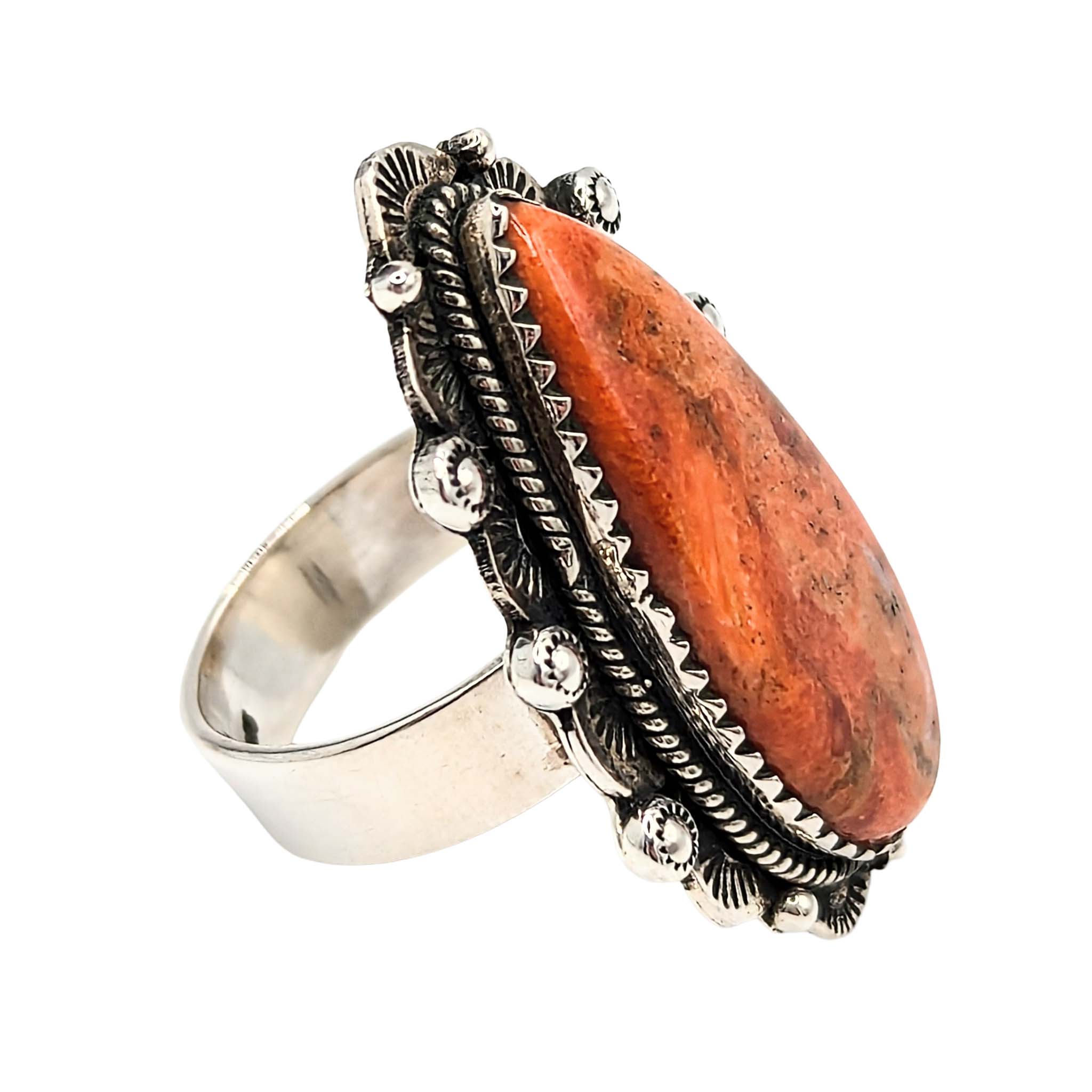 Southwest Sterling Silver Apple Coral Stamped Teardrop Ring Signed Hada Sterling Approx Size 8 Adjustable 12g