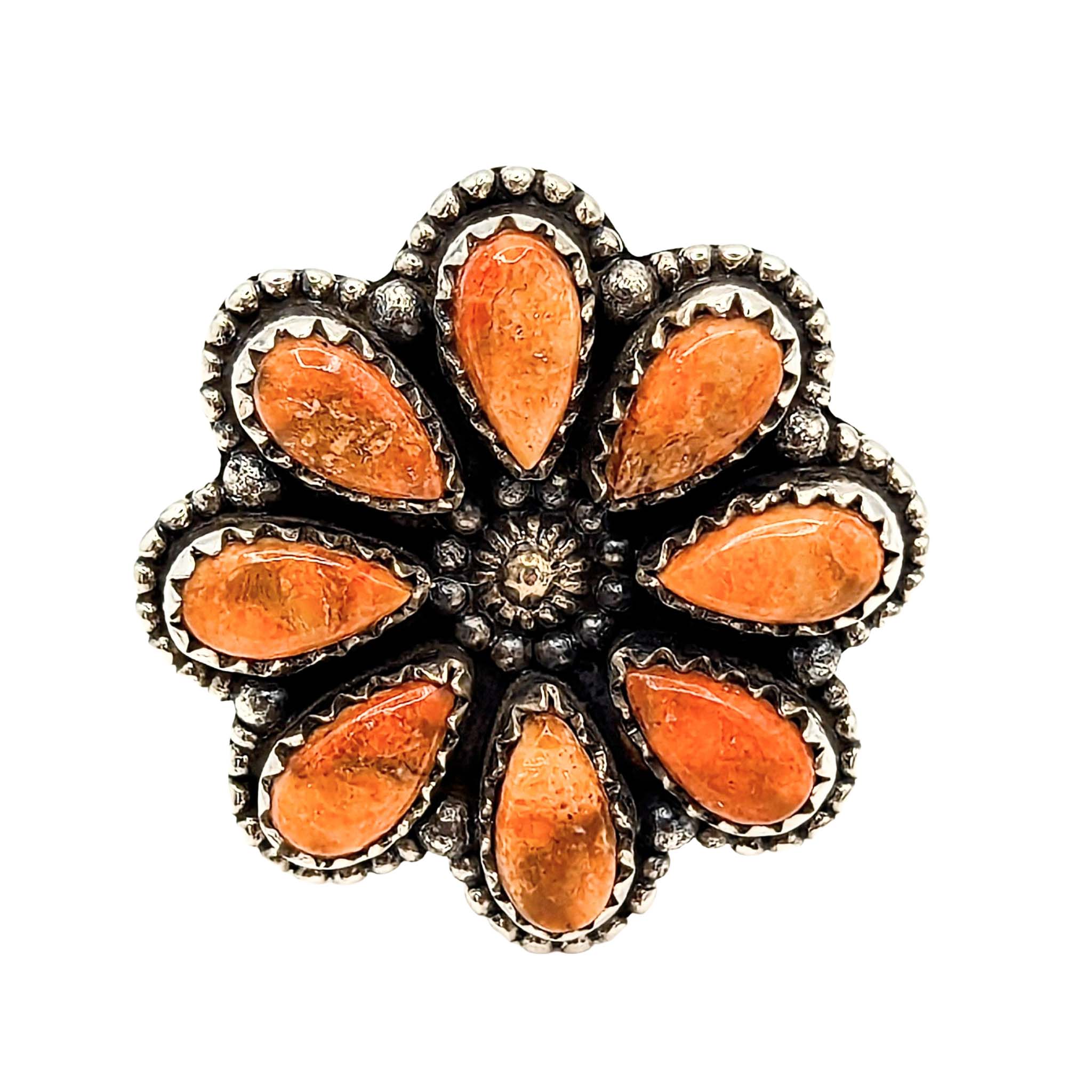Southwest Sterling Silver Apple Coral Cluster Ring Signed Hada Sterling Approx Size 7.5 Adjustable 13.3g