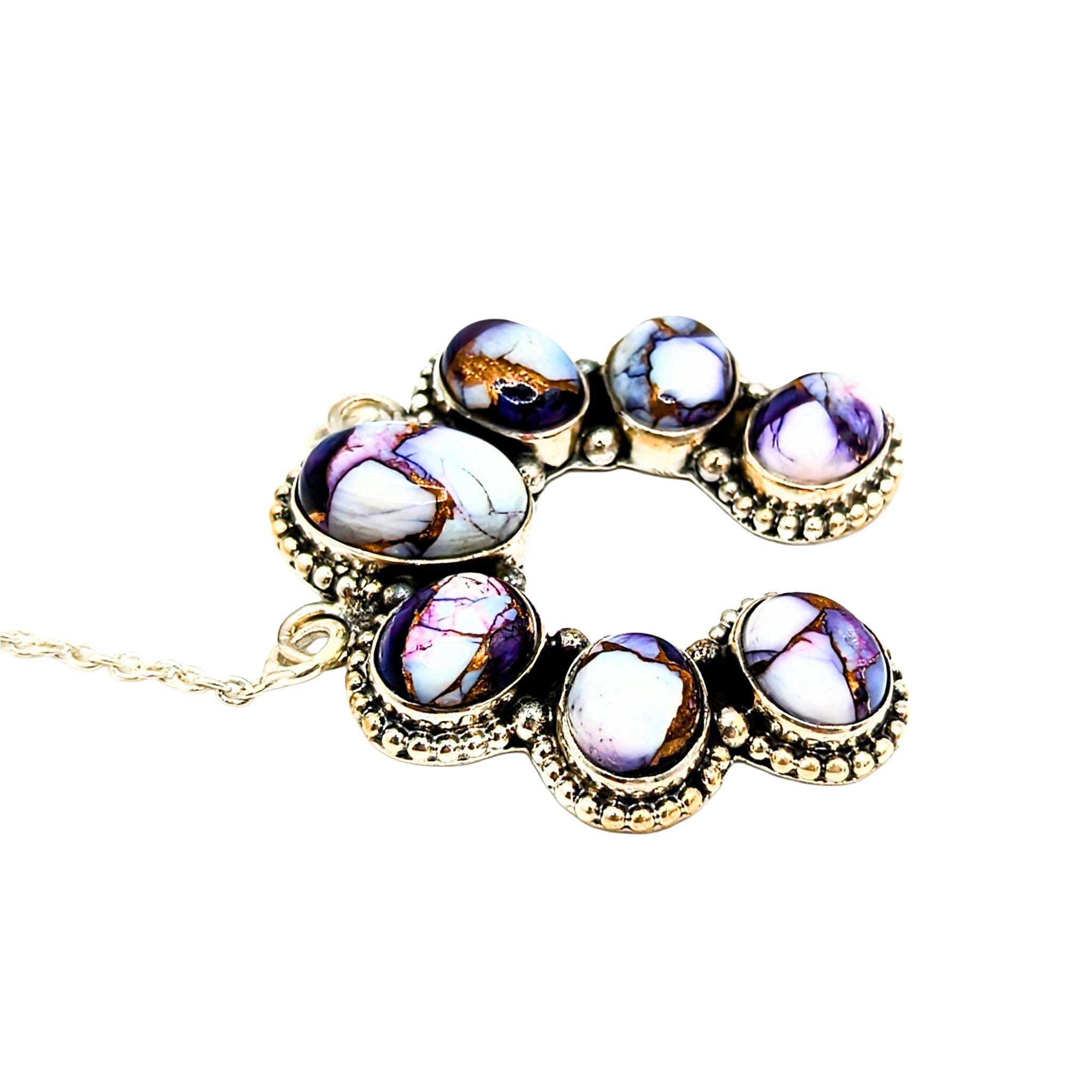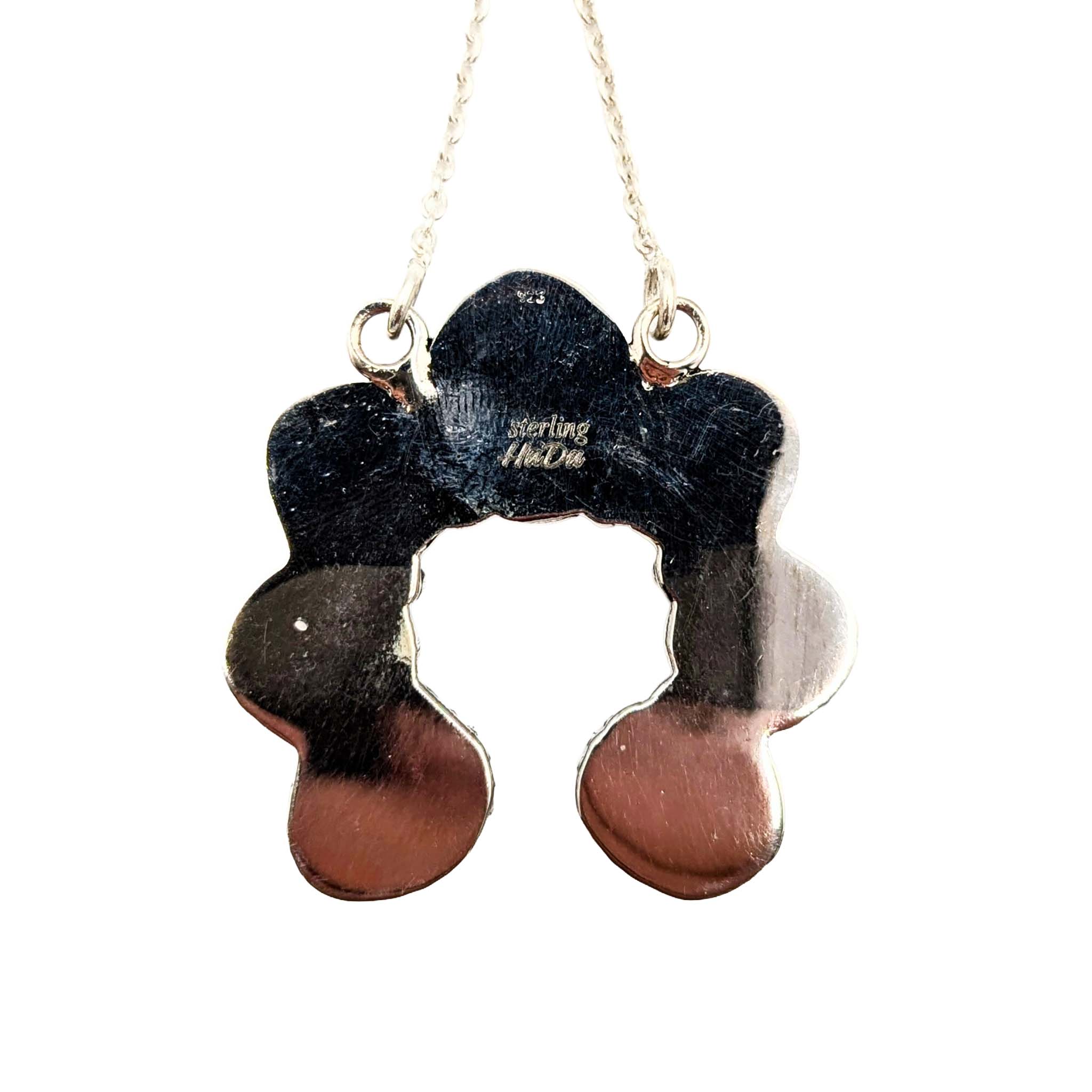 Southwest Sterling Silver Violet Rose Dhalia Turquoise Horseshoe Necklace Signed Hada Sterling 18-20in Length Adjustable 19.5g