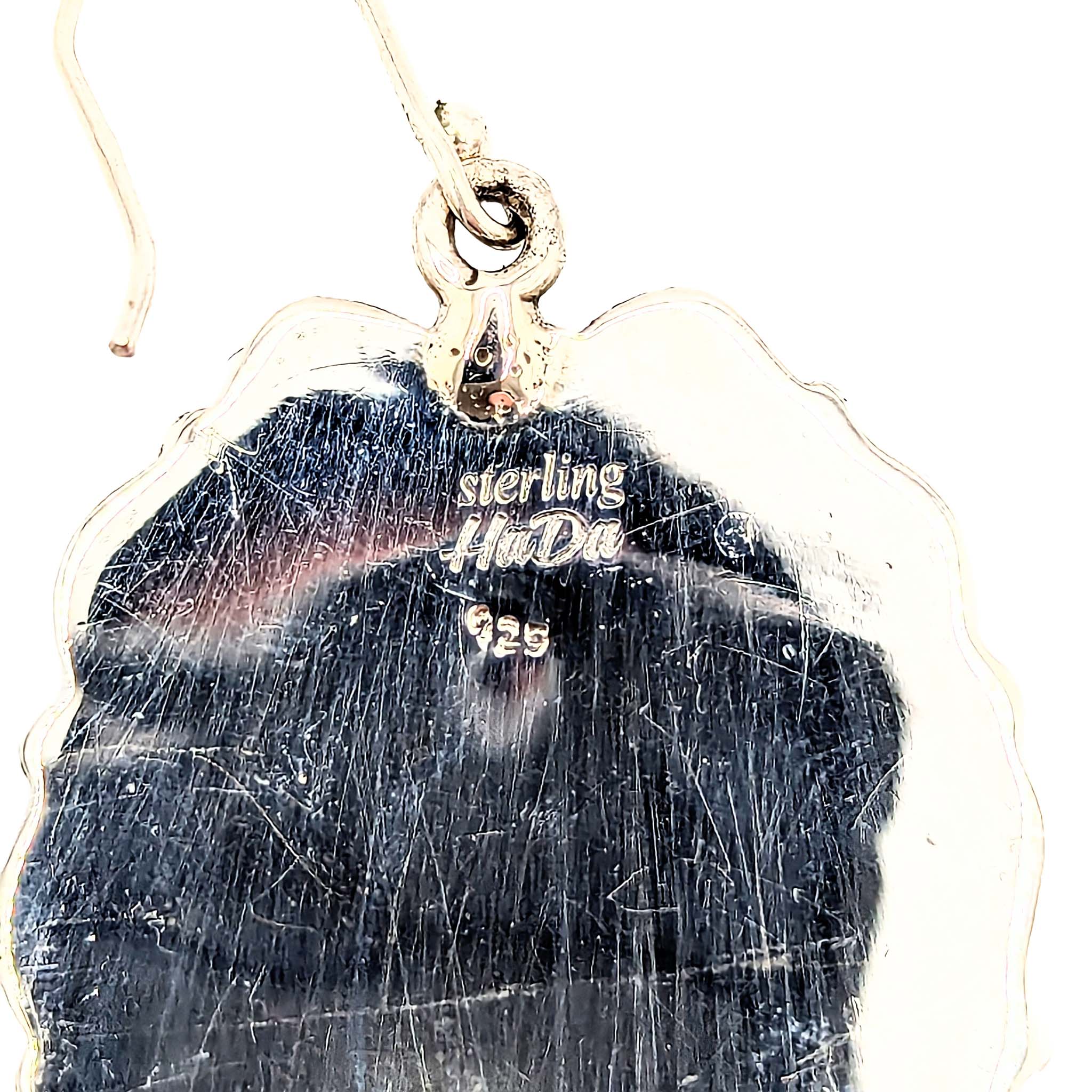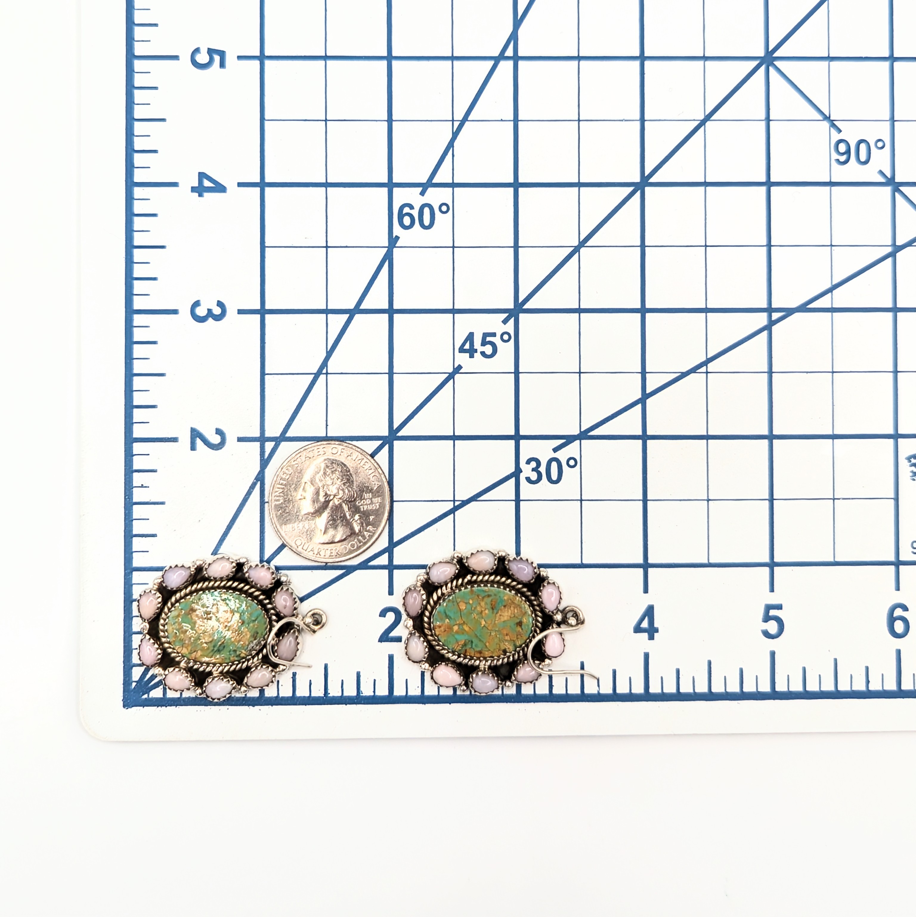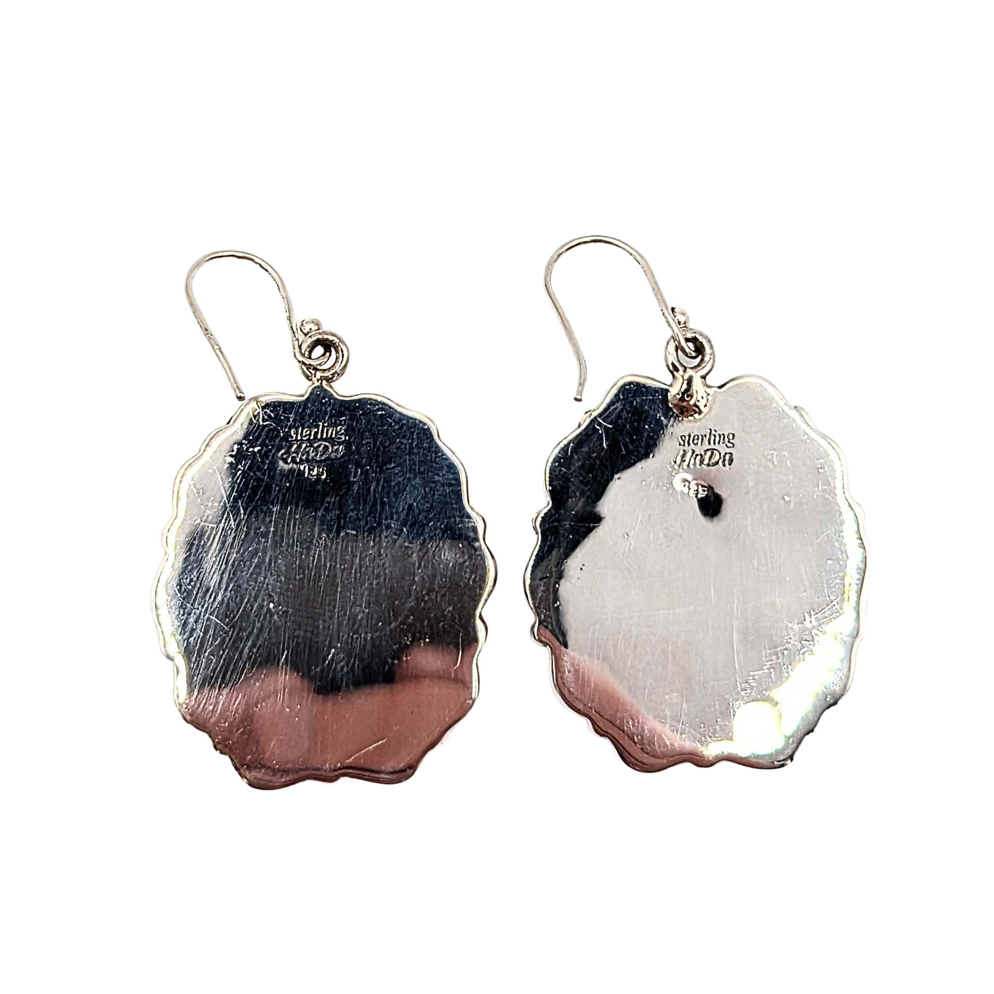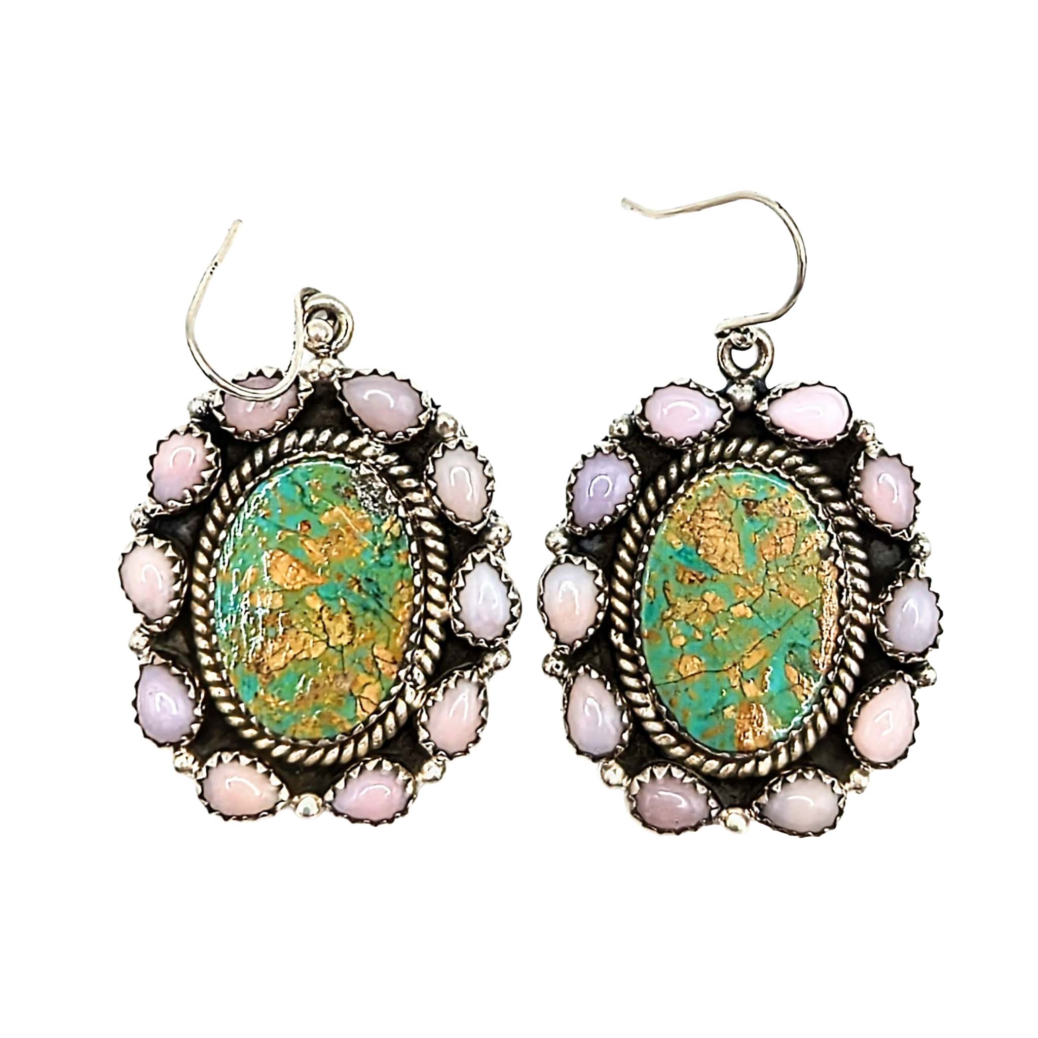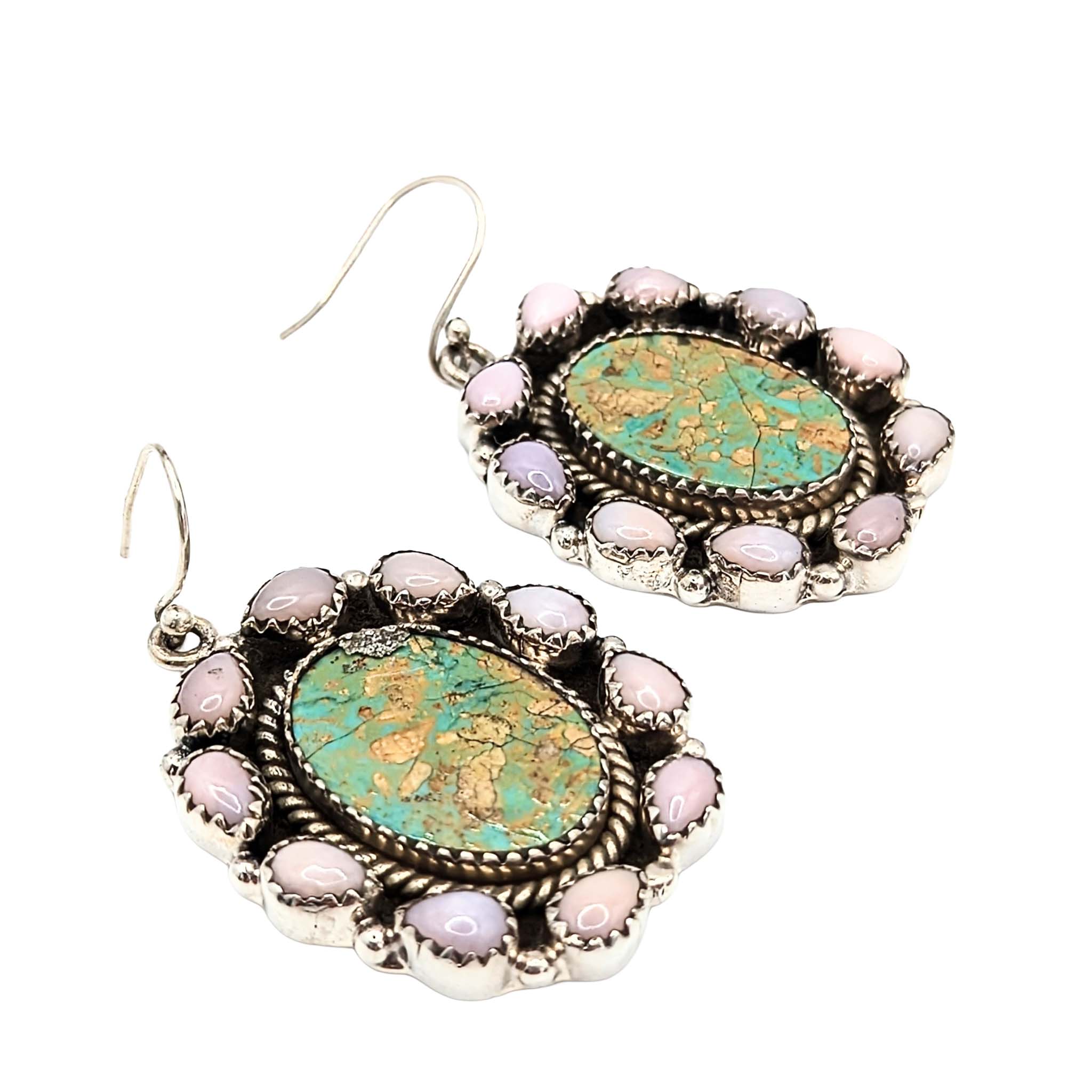 Southwest Sterling Silver Pink Opal Framed Turquoise Oval Dangle Earrings Signed Hada Sterling 23.2g