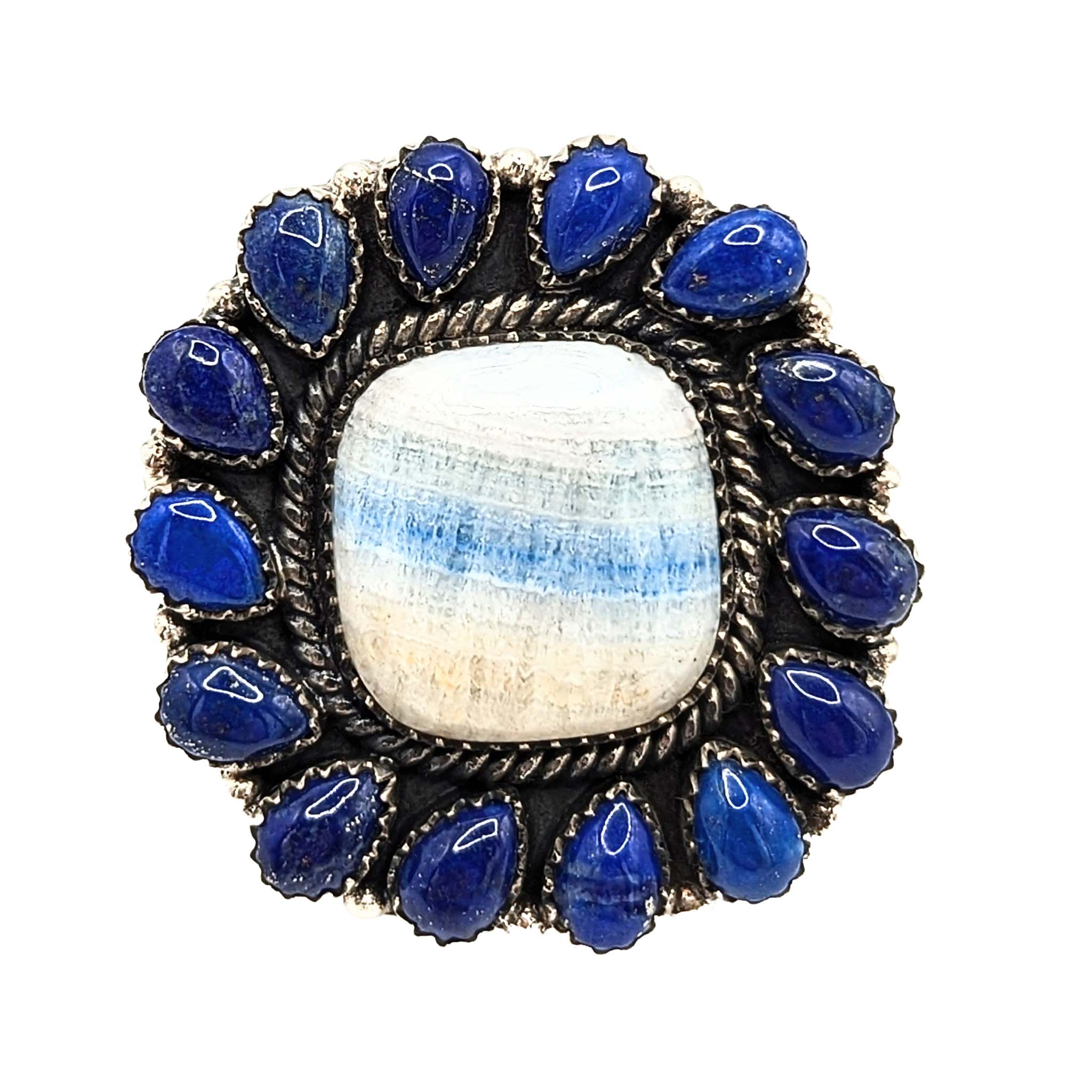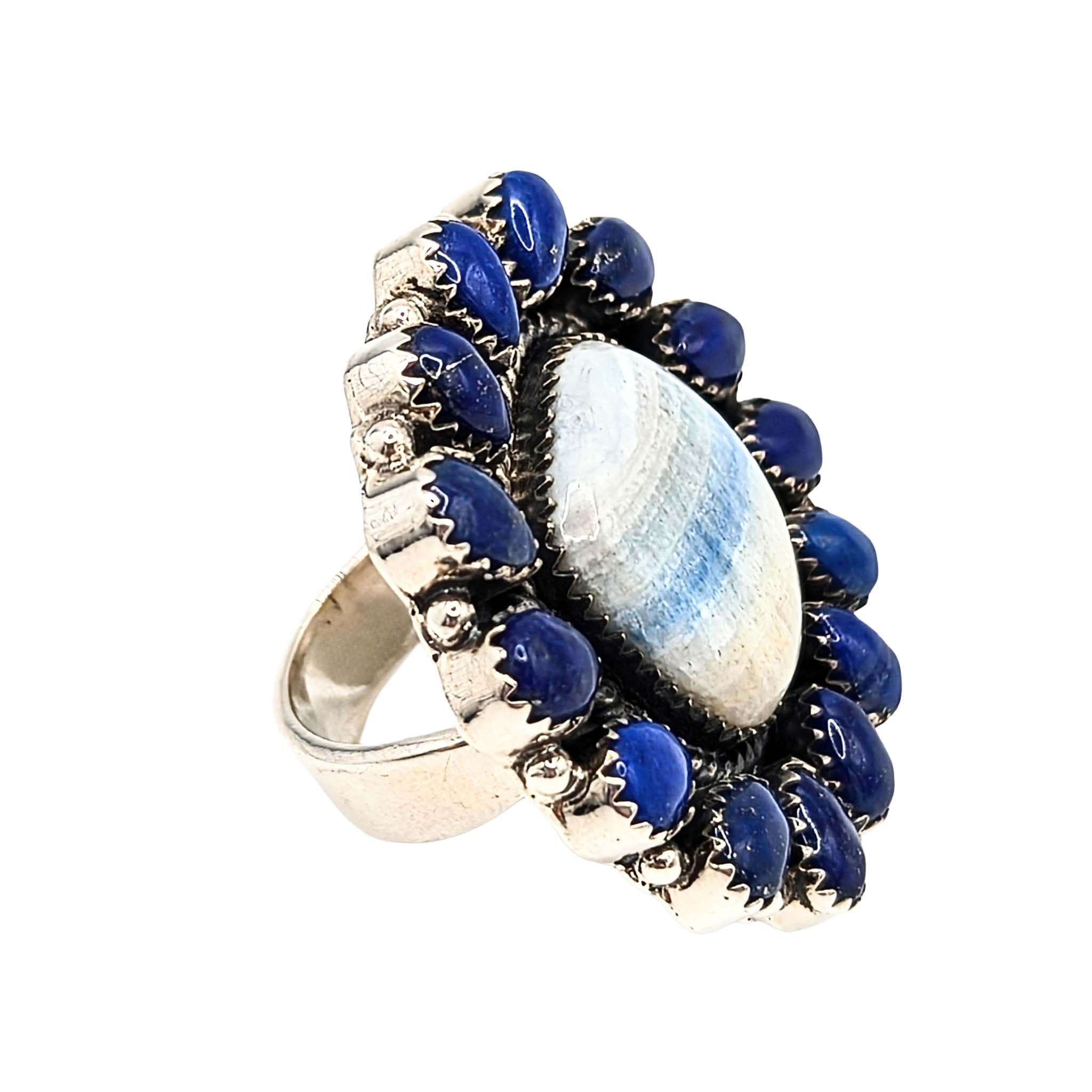 Southwest Sterling Silver Lapis Agate Cluster Ring Signed Hada Sterling Approx Size 7 Adjustable 26.6g