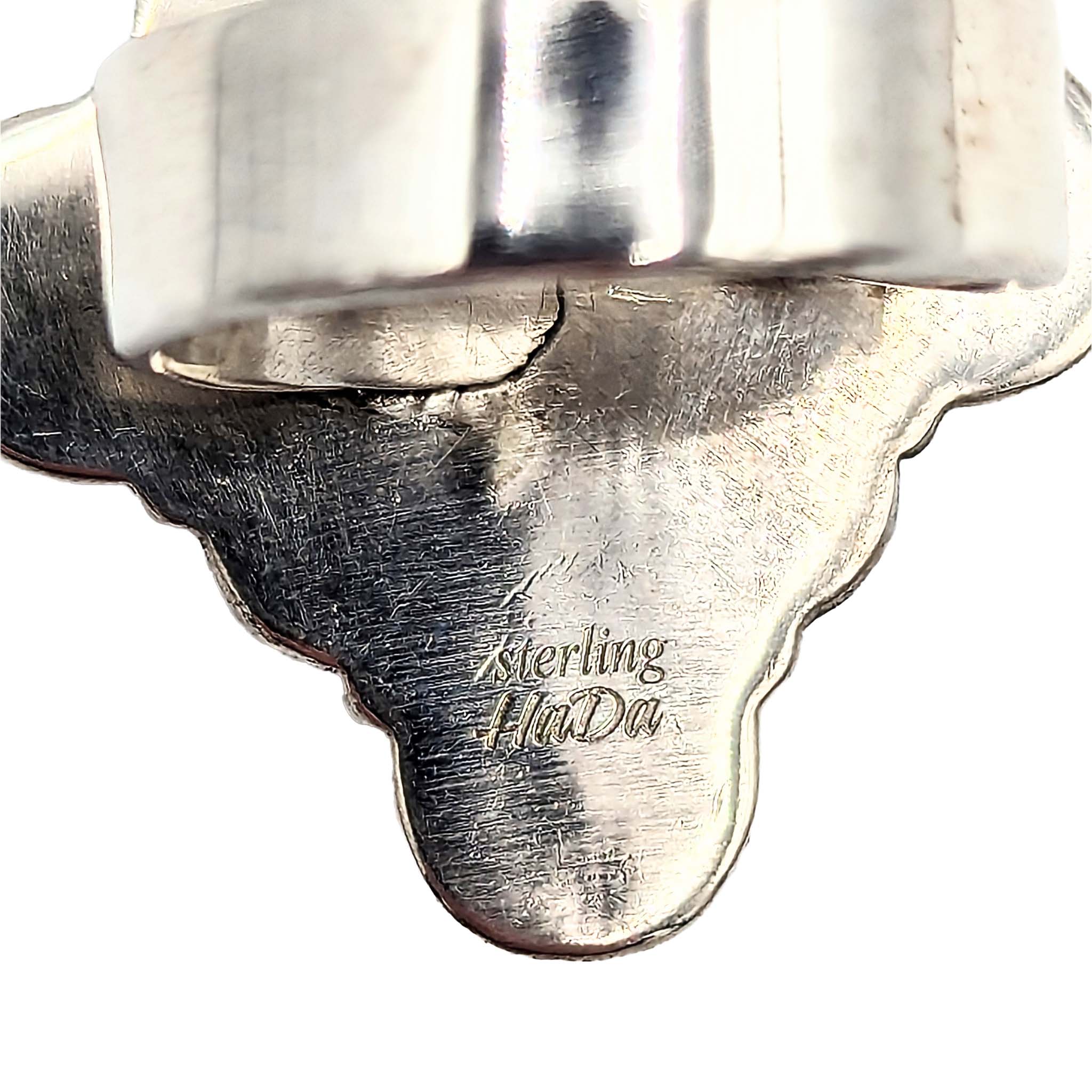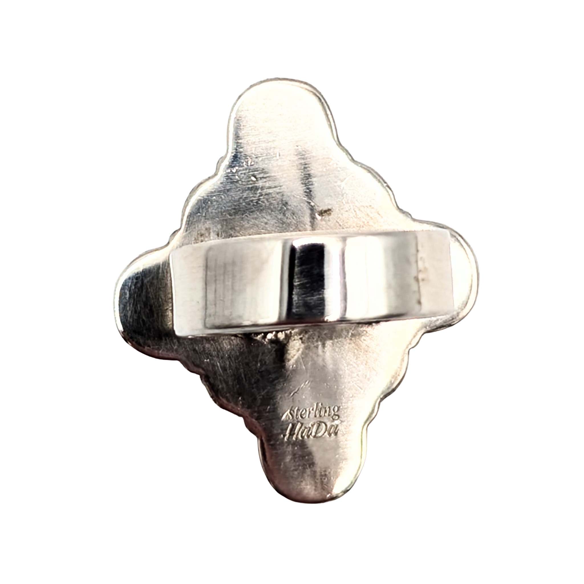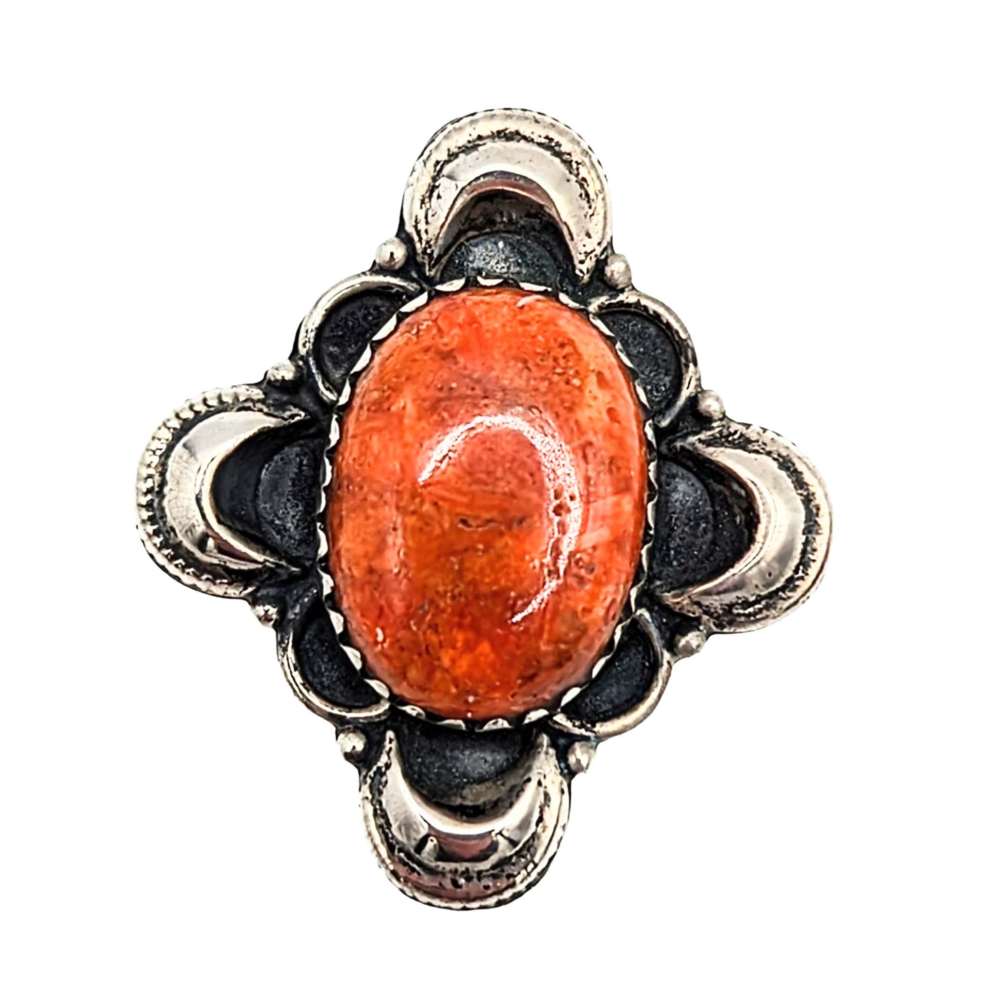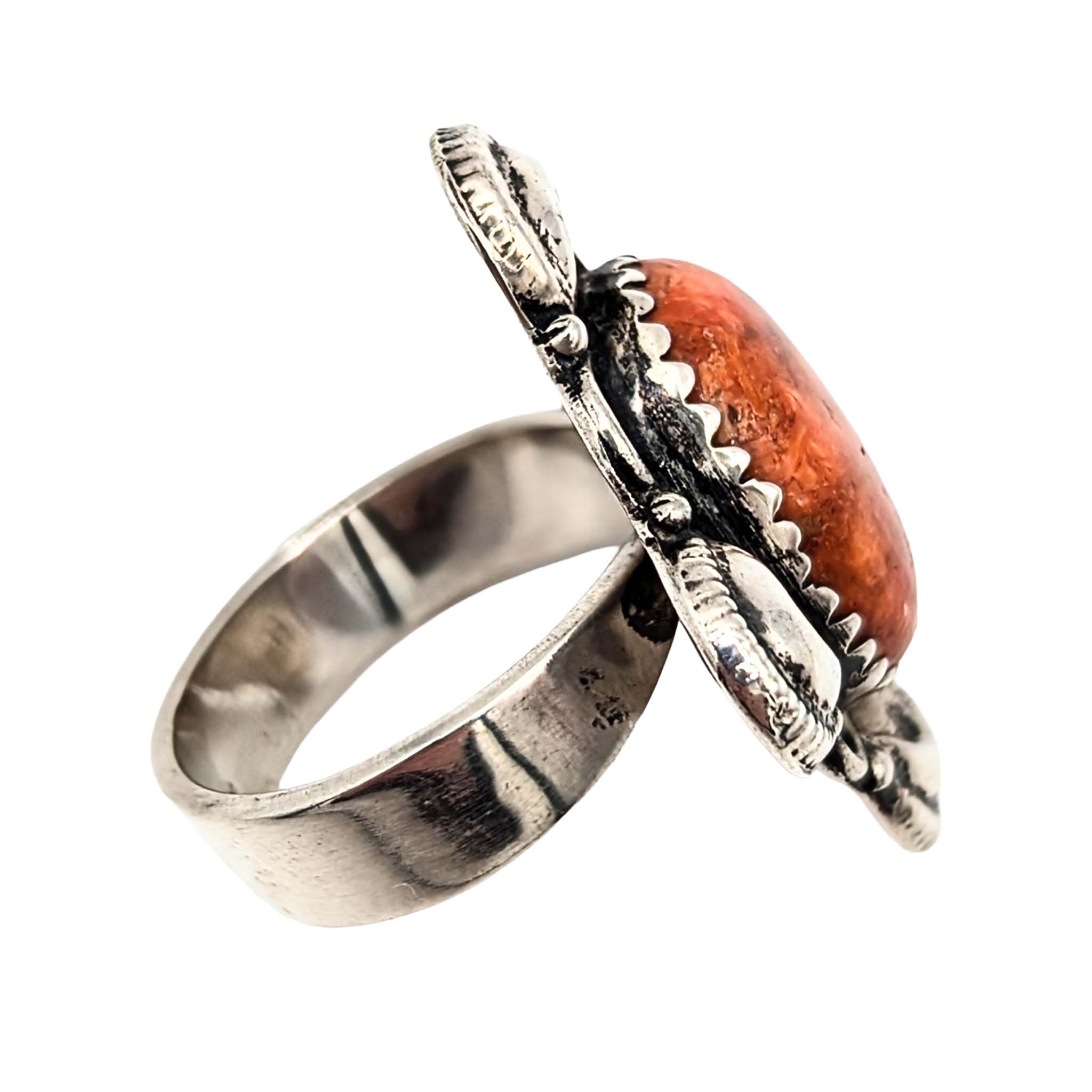 Southwest Sterling Silver Apple Coral Oval Ring Signed Hada Sterling Approx Size 7.5 Adjustable 10.7g