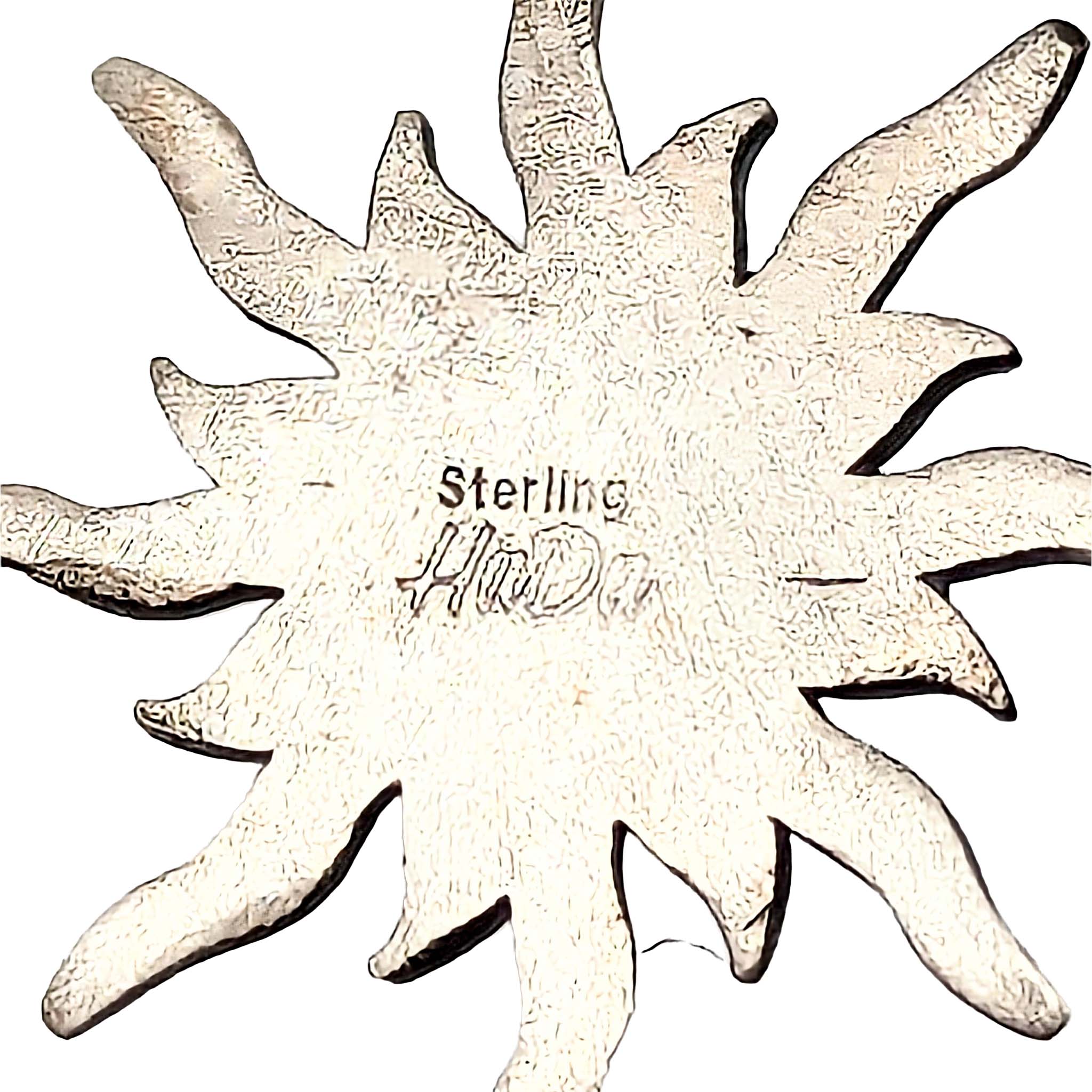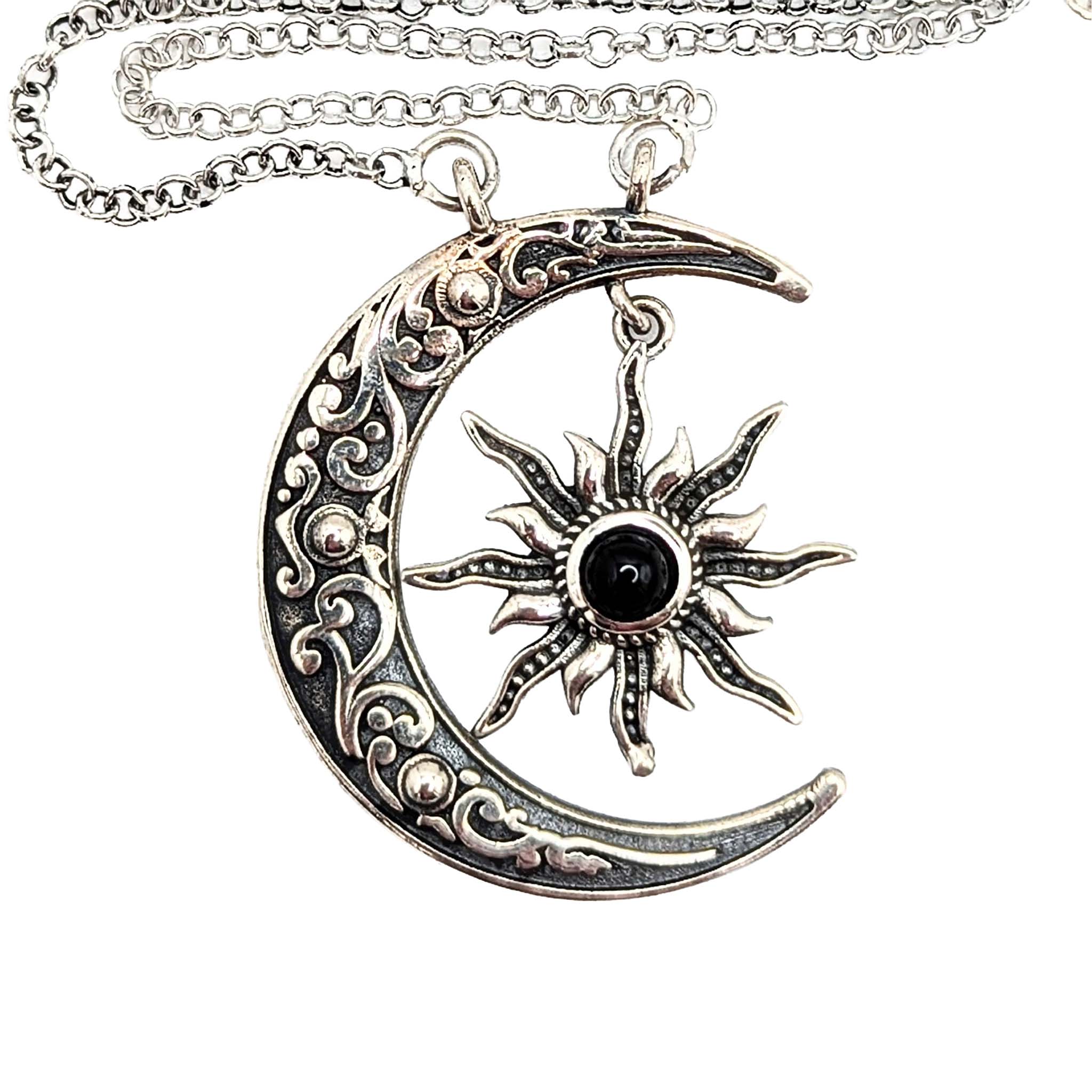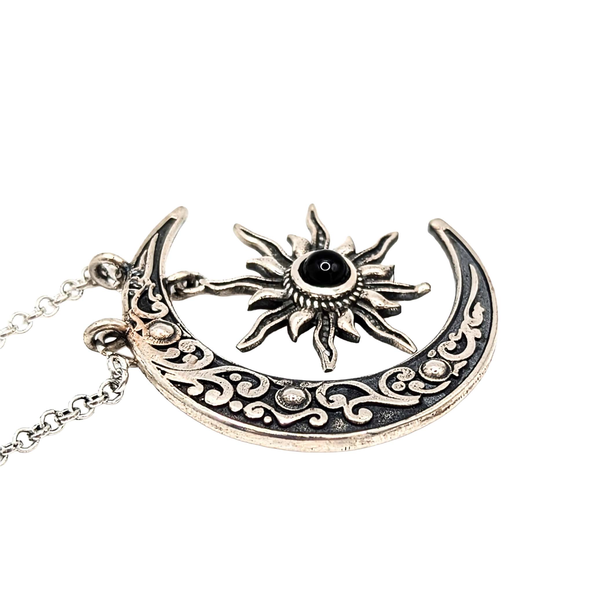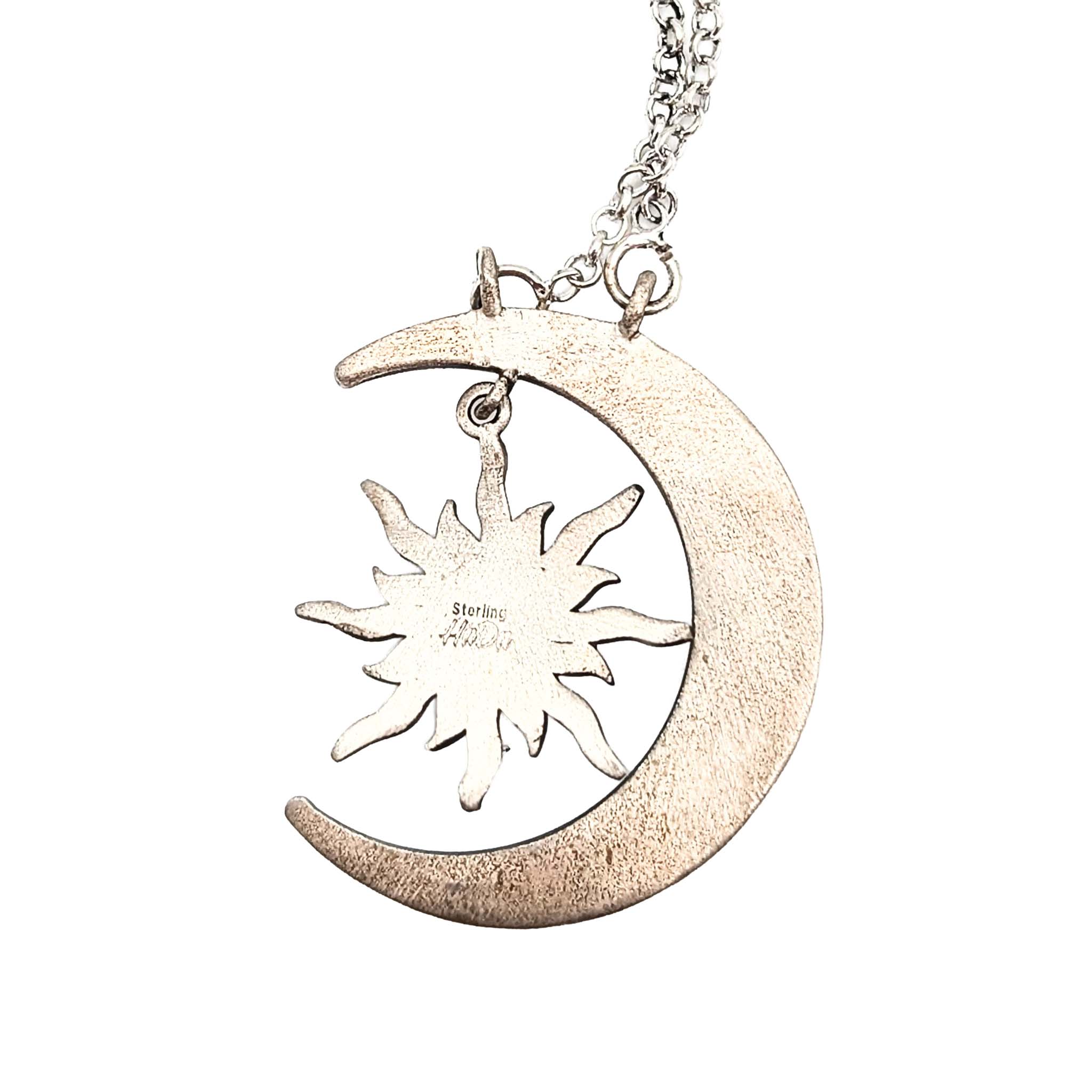 Southwest Sterling Silver Onyx Crescent Moon with dangling Sun Necklace Signed Hada Sterling 18-20in Length Adjustable 10.2g