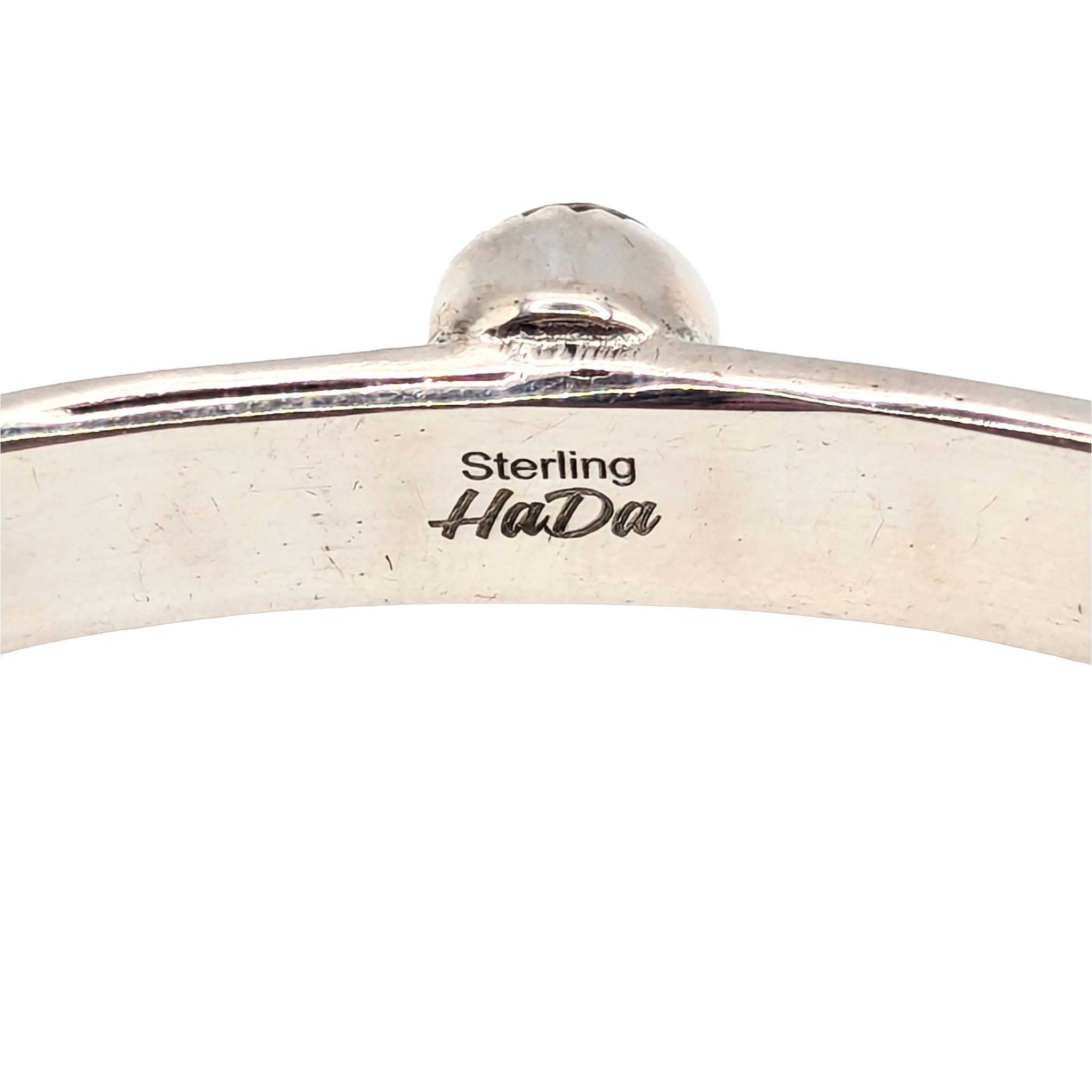 Southwest Sterling Silver Dhalia Rose Turquoise Studded Cuff Bracelet Signed Hada Sterling 14.8g