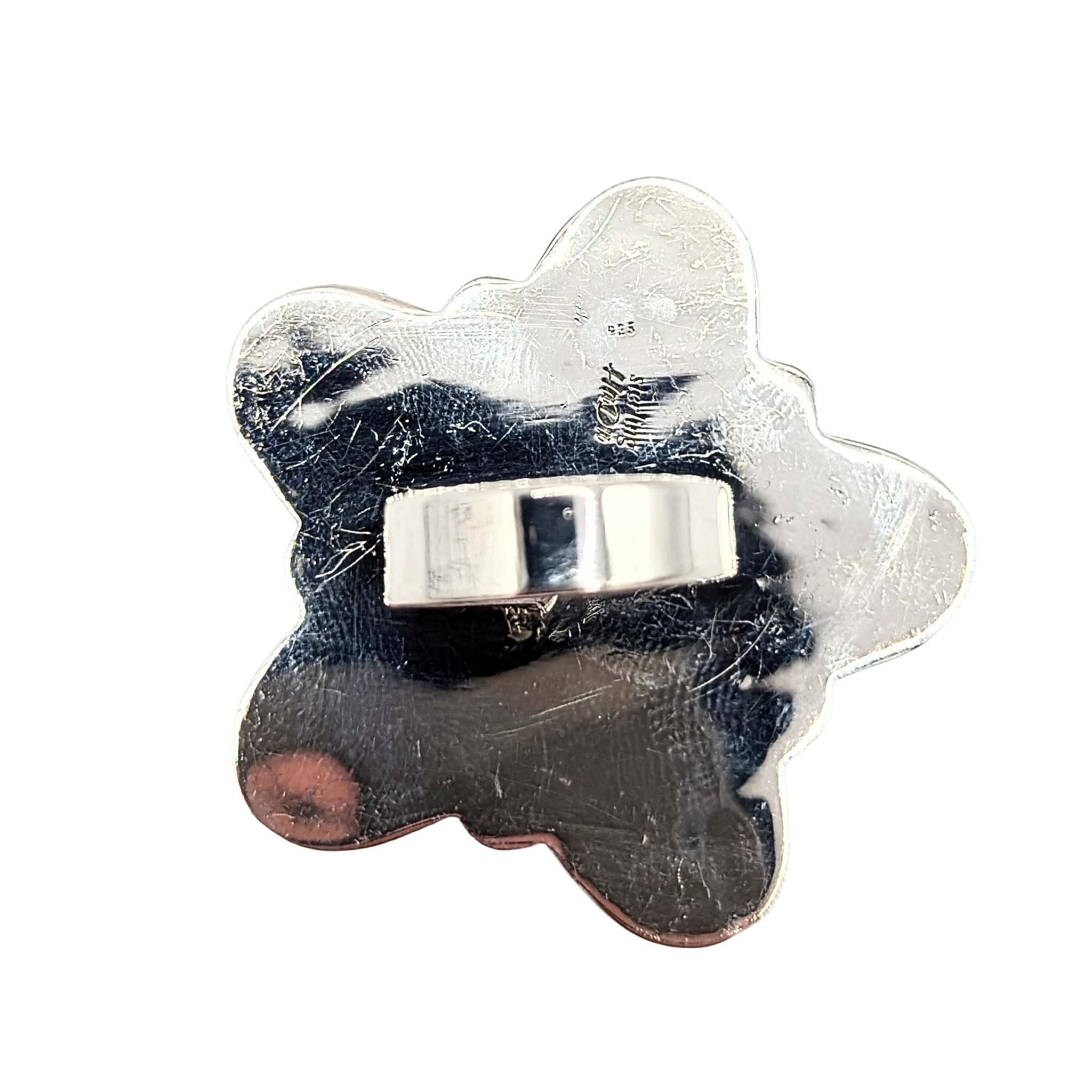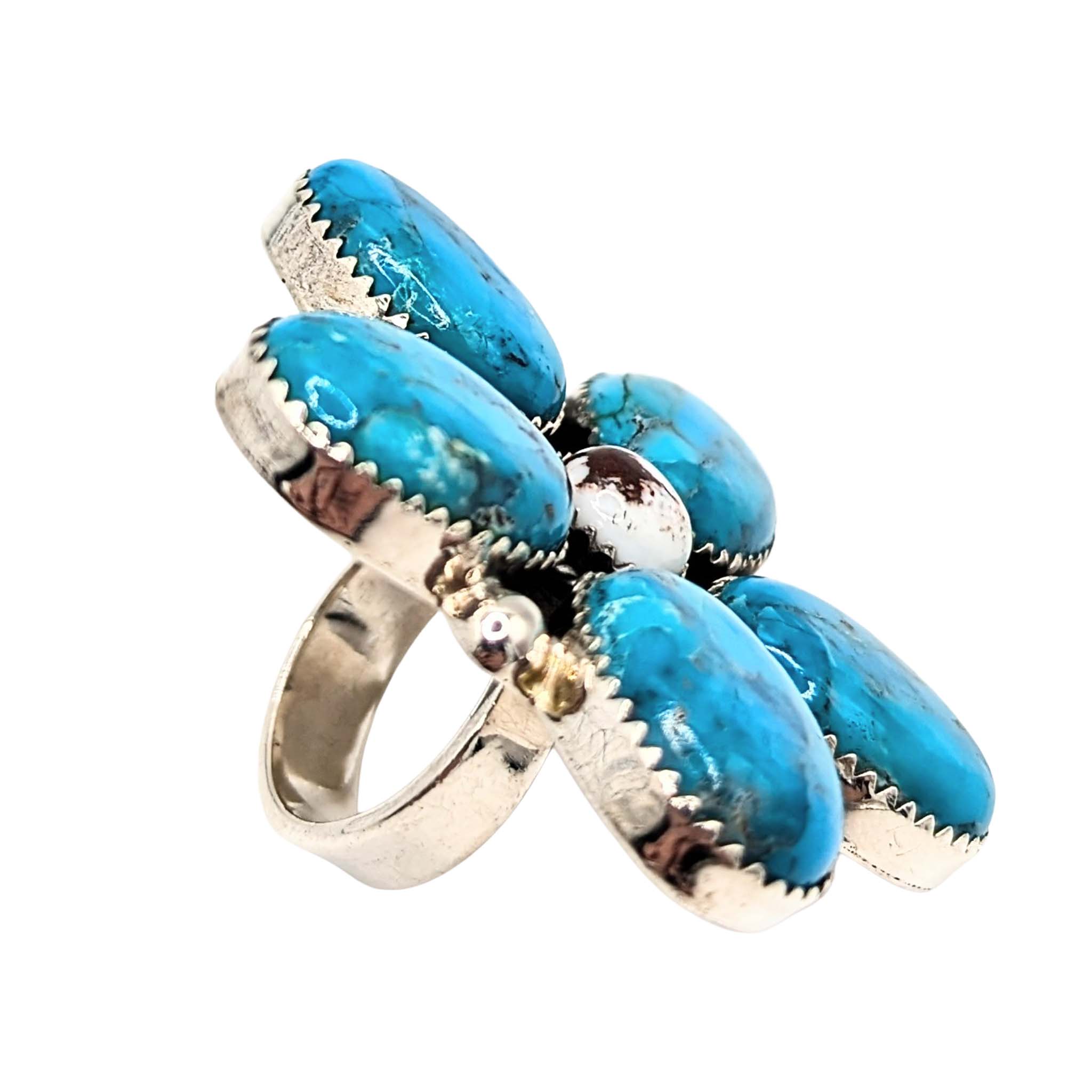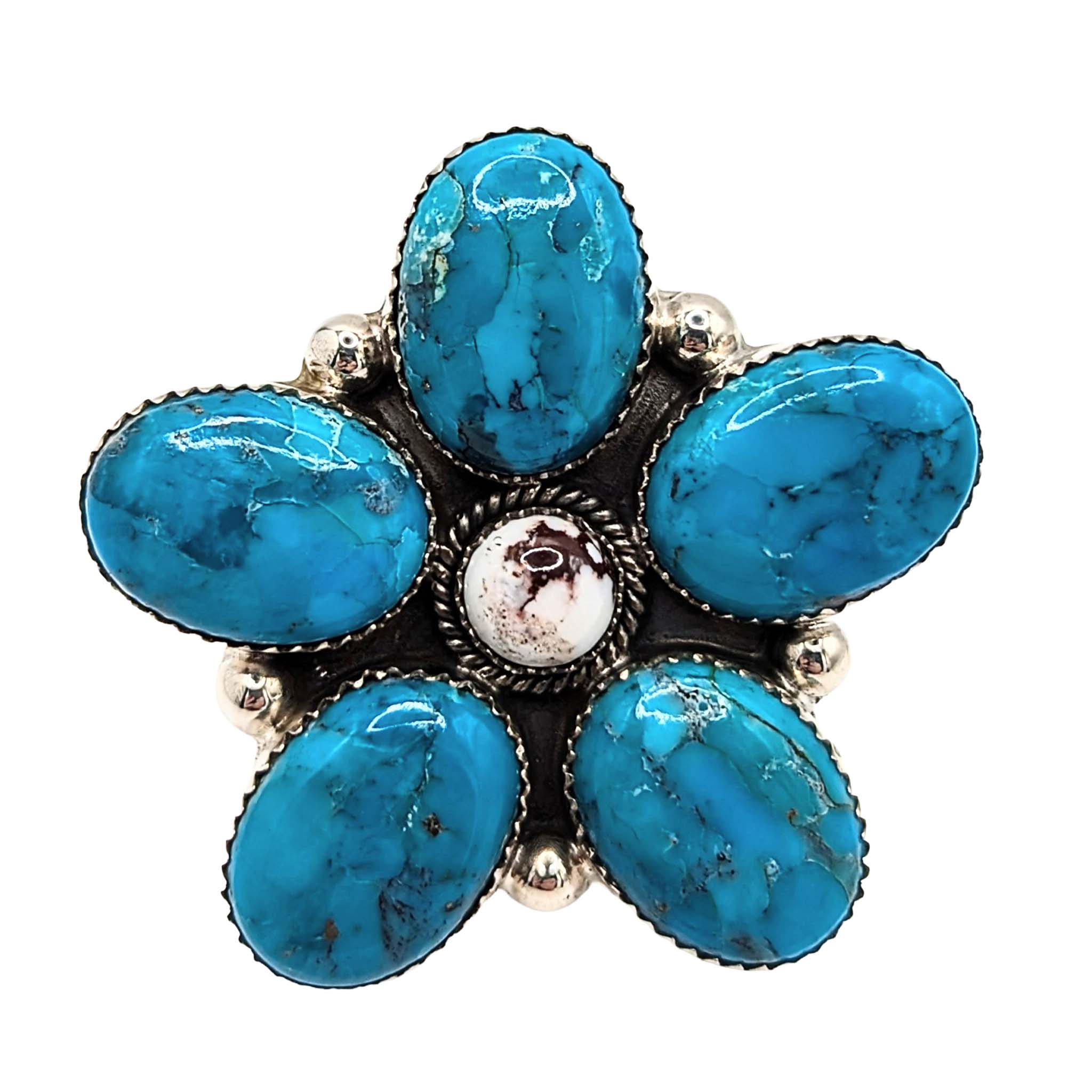 Southwest Sterling Silver Turquoise Wild Horse Turquoise Flower Ring Signed Hada Sterling Approx Size 6 Adjustable 24g