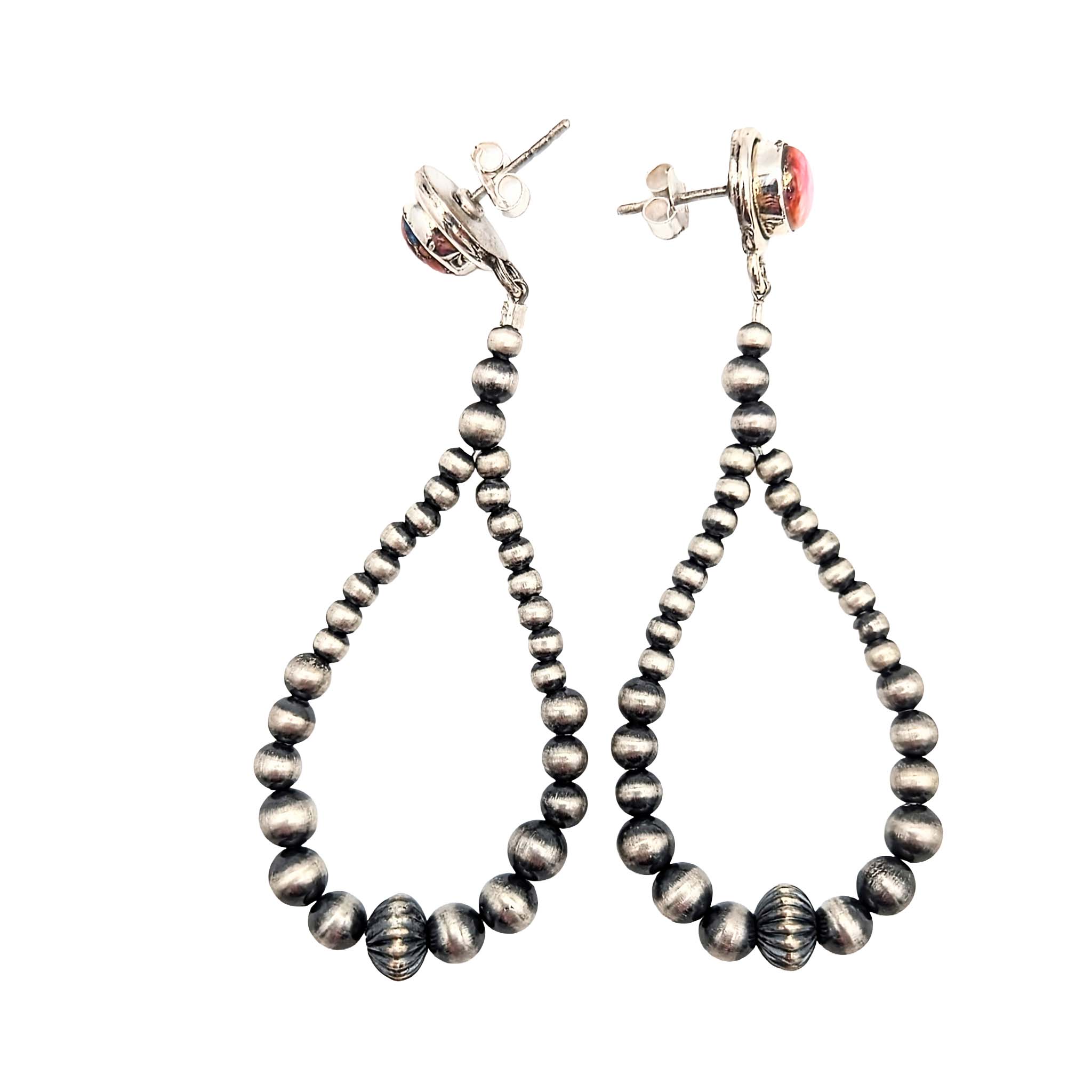 Southwest Sterling Silver Pink Dhalia Turquoise Beaded Drop Dangle Stud Earrings 10.4g