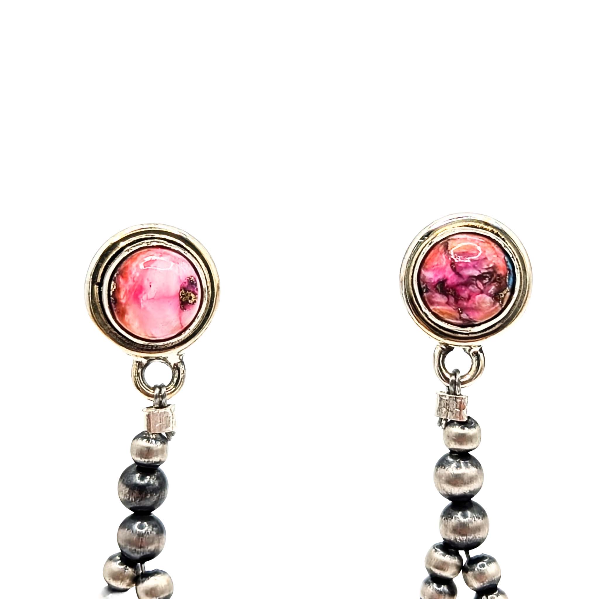 Southwest Sterling Silver Pink Dhalia Turquoise Beaded Drop Dangle Stud Earrings