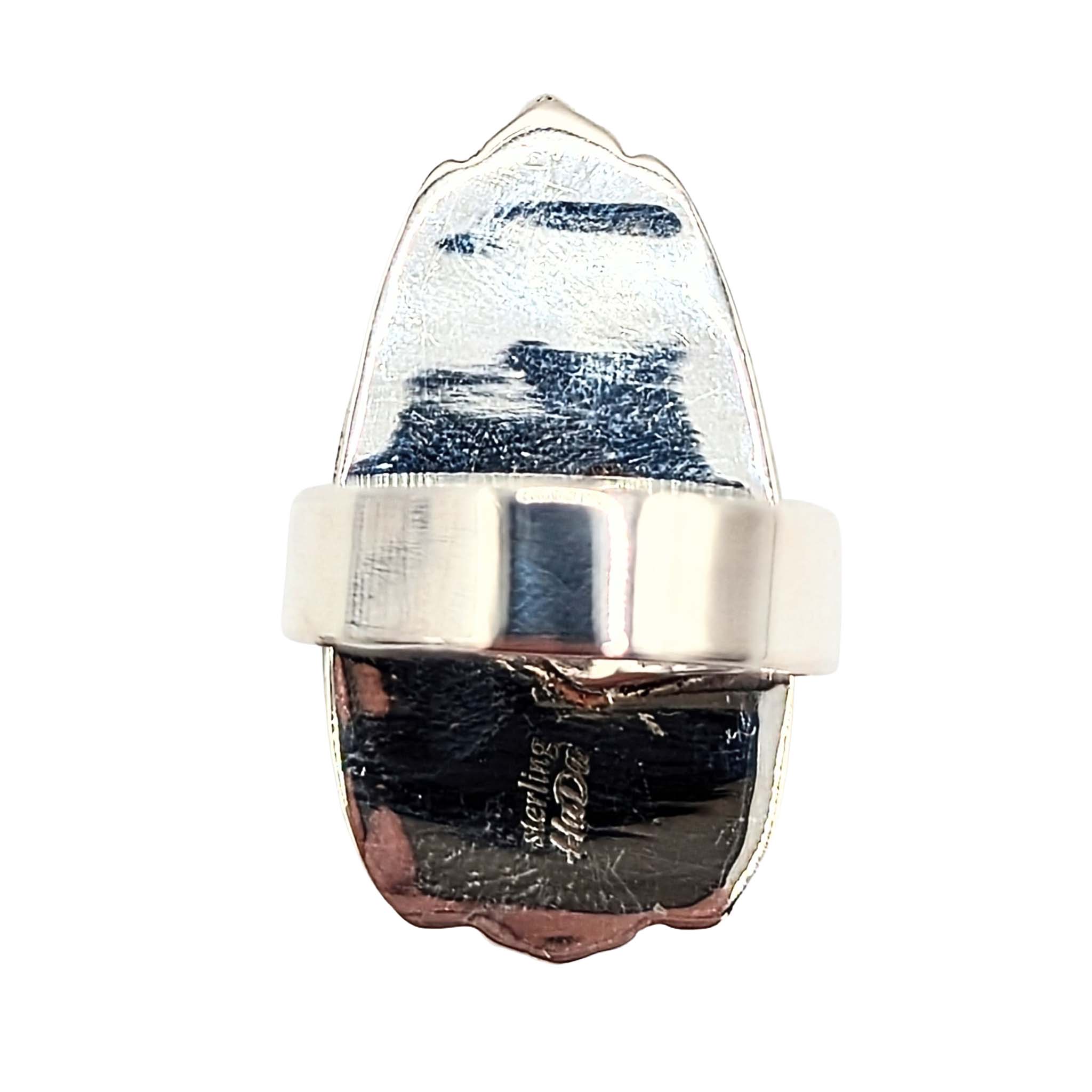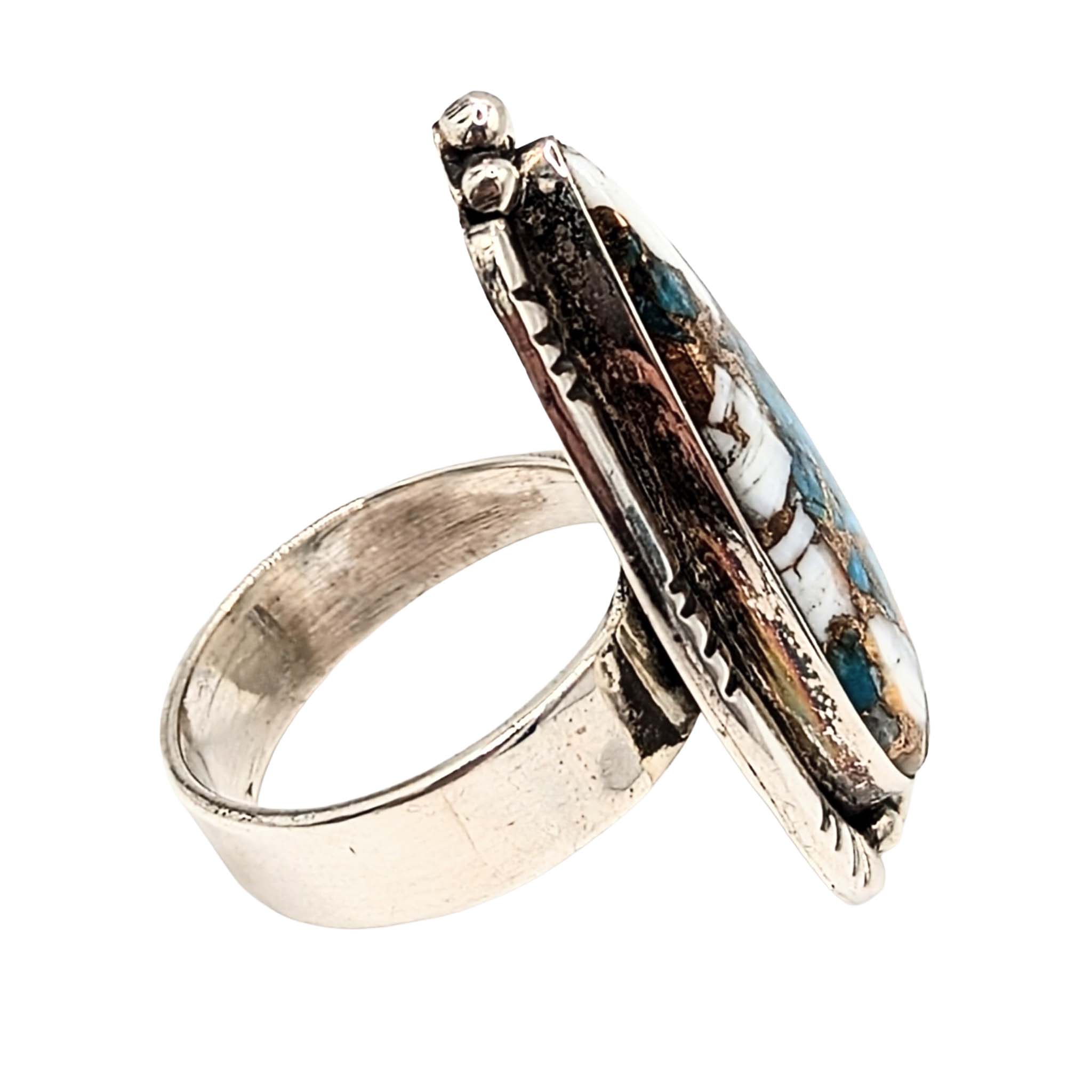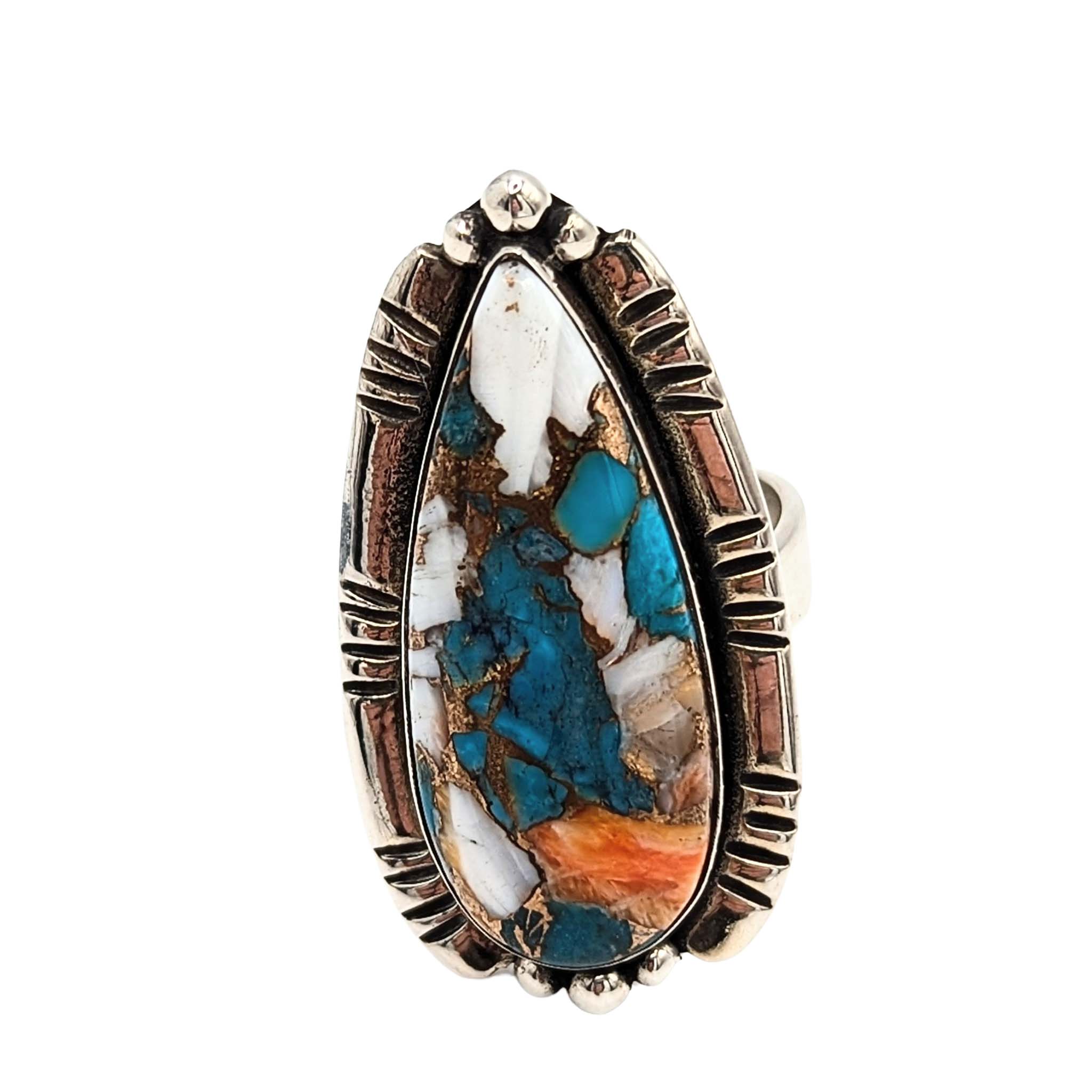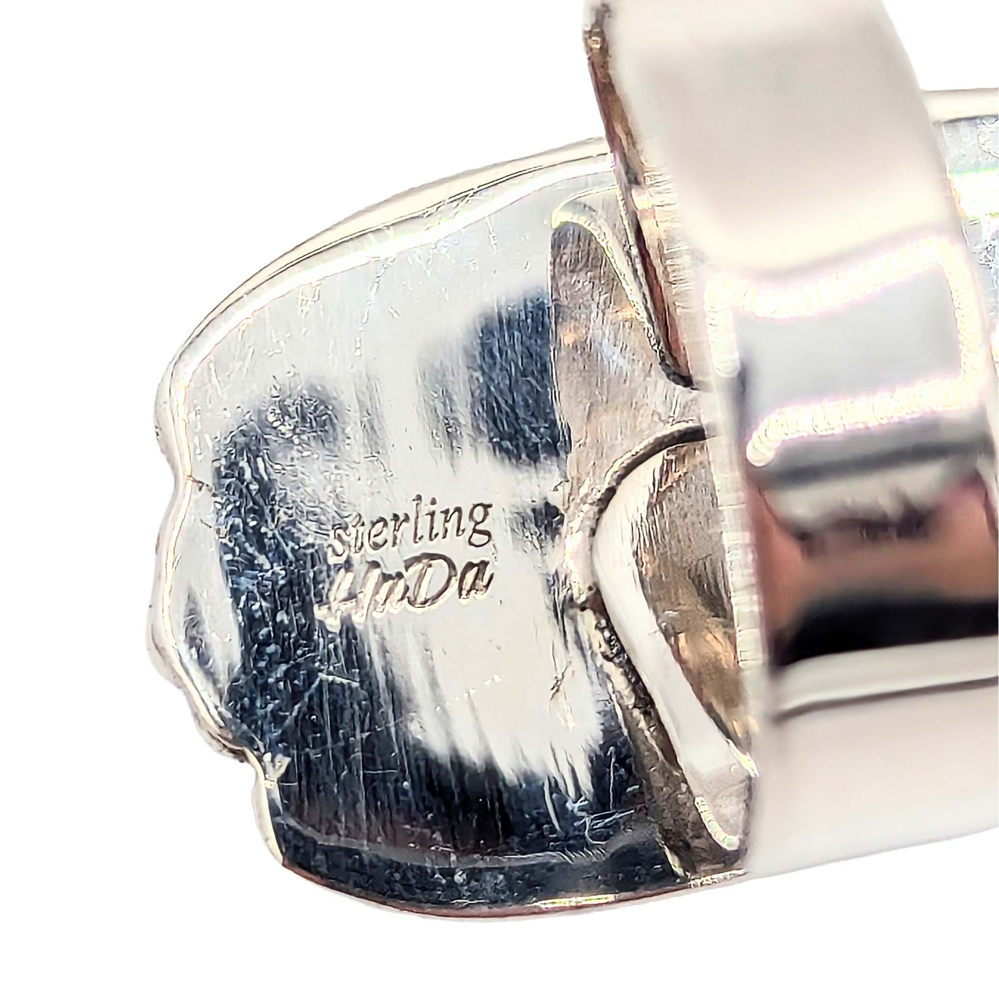 Southwest Sterling Silver Spiny Mojave Turquoise Teardrop Ring Signed Hada Sterling Approx Size 9 Adjustable 12g