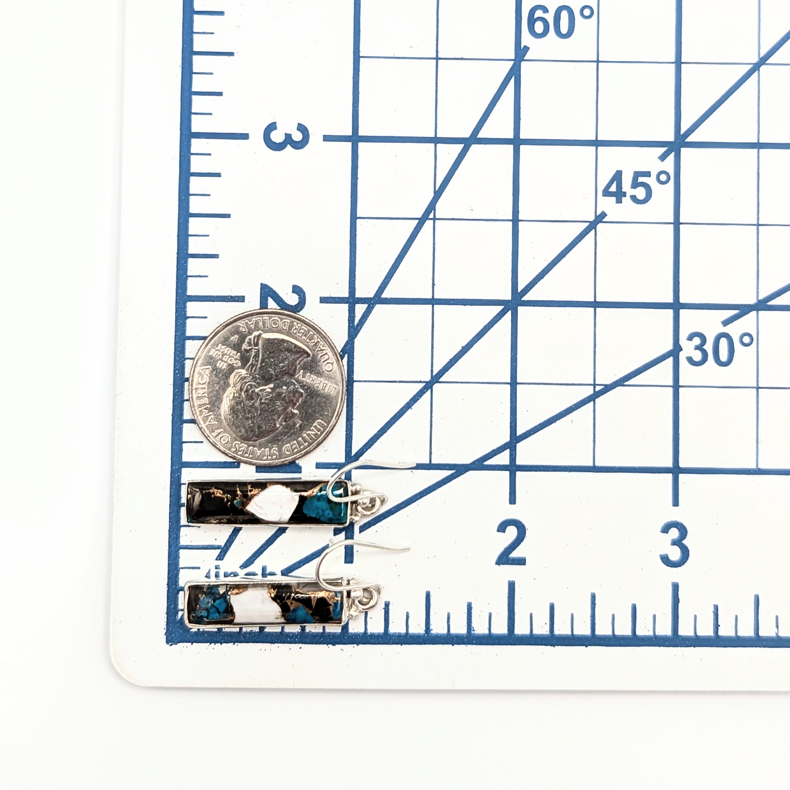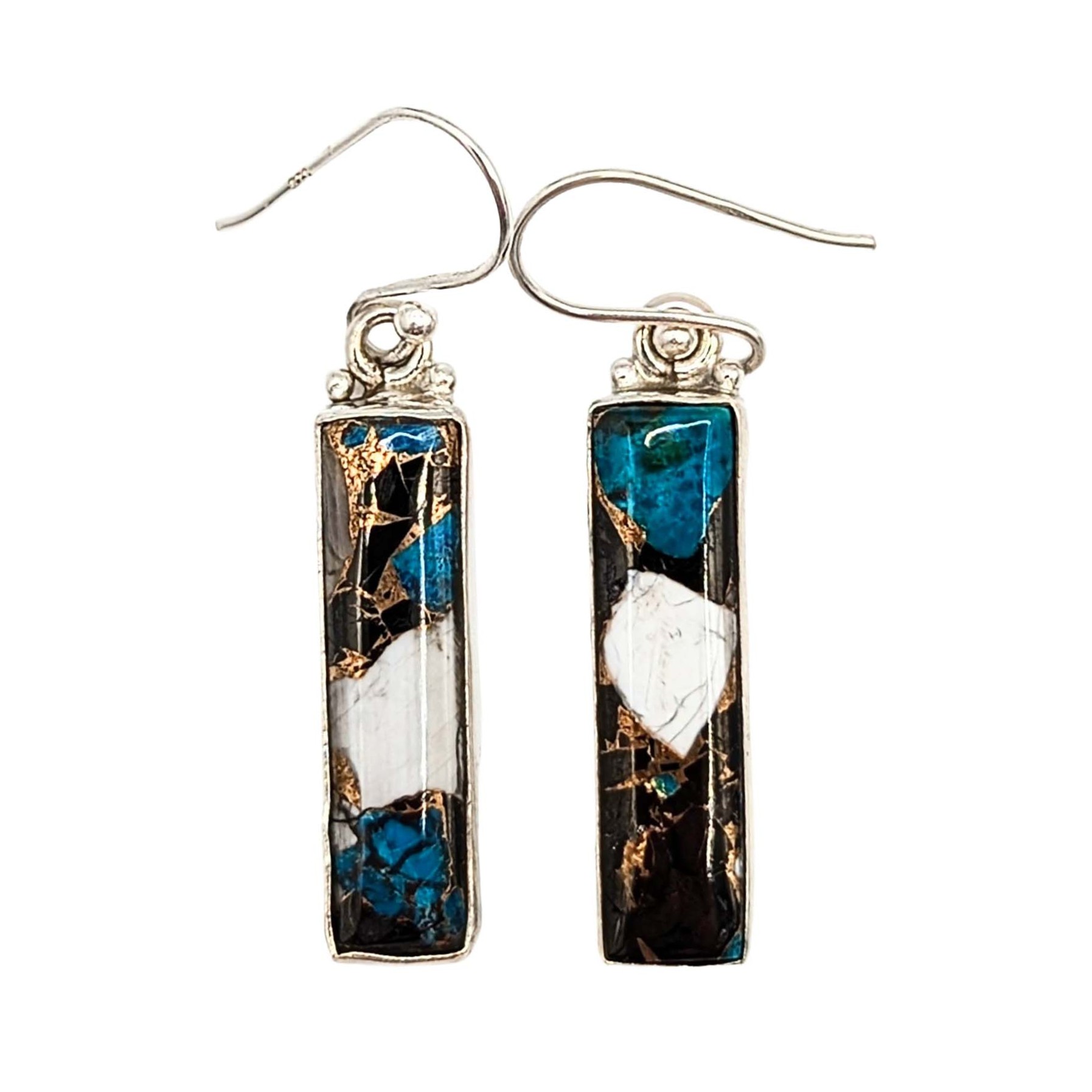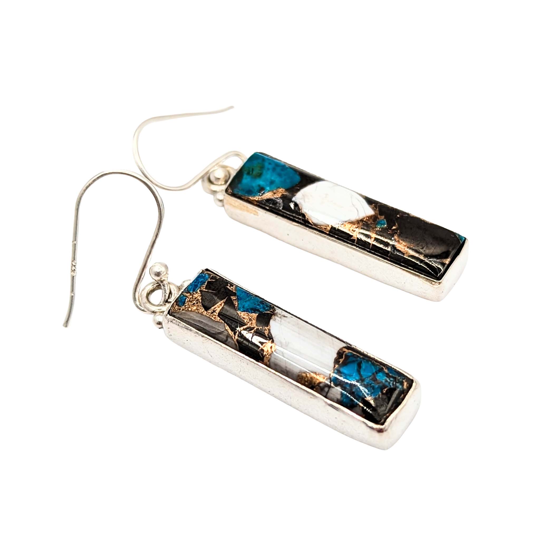 Southwest Sterling Silver White Buffalo Turquoise Bar Dangle Earrings