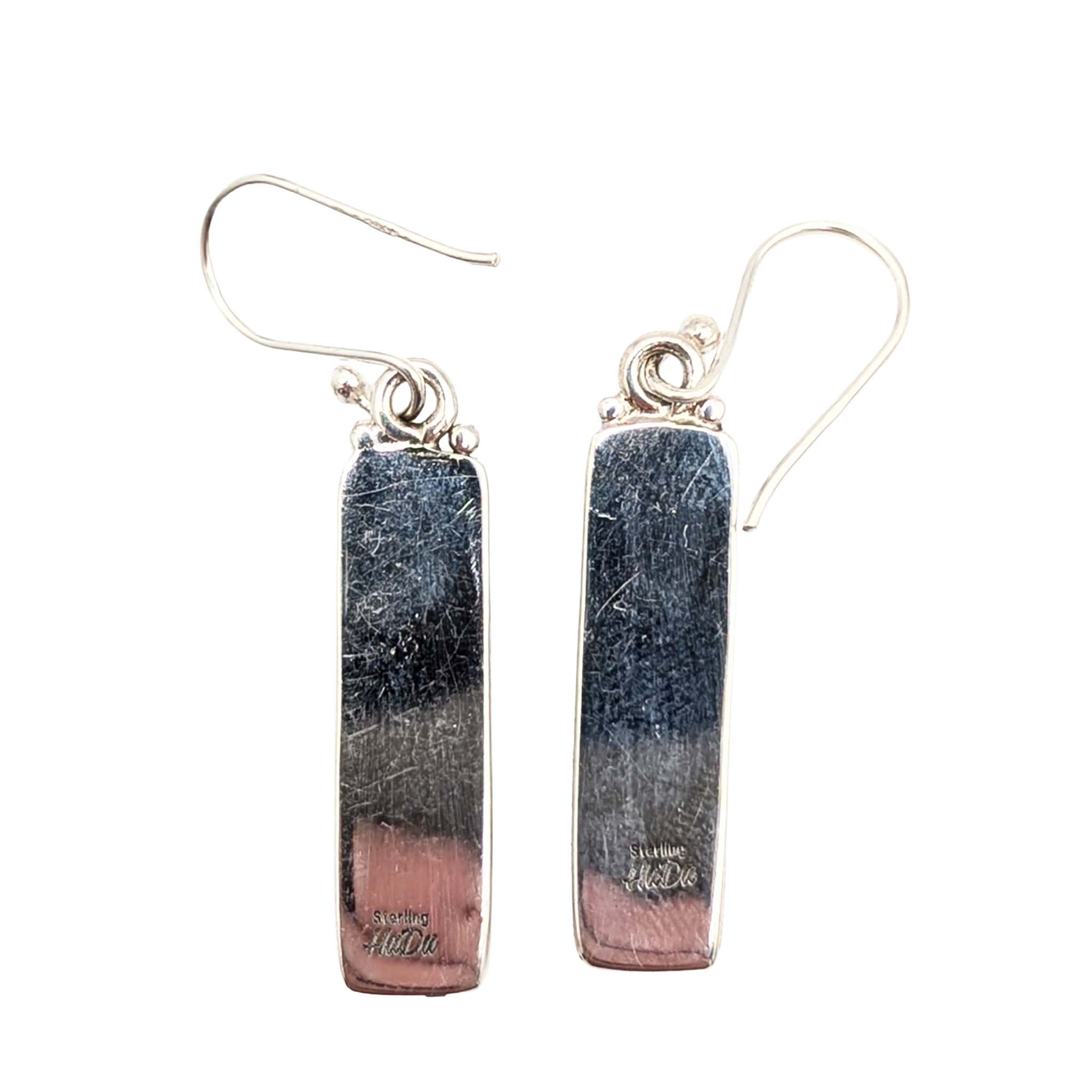 Southwest Sterling Silver White Buffalo Turquoise Bar Dangle Earrings Signed Hada Sterling 5.6g