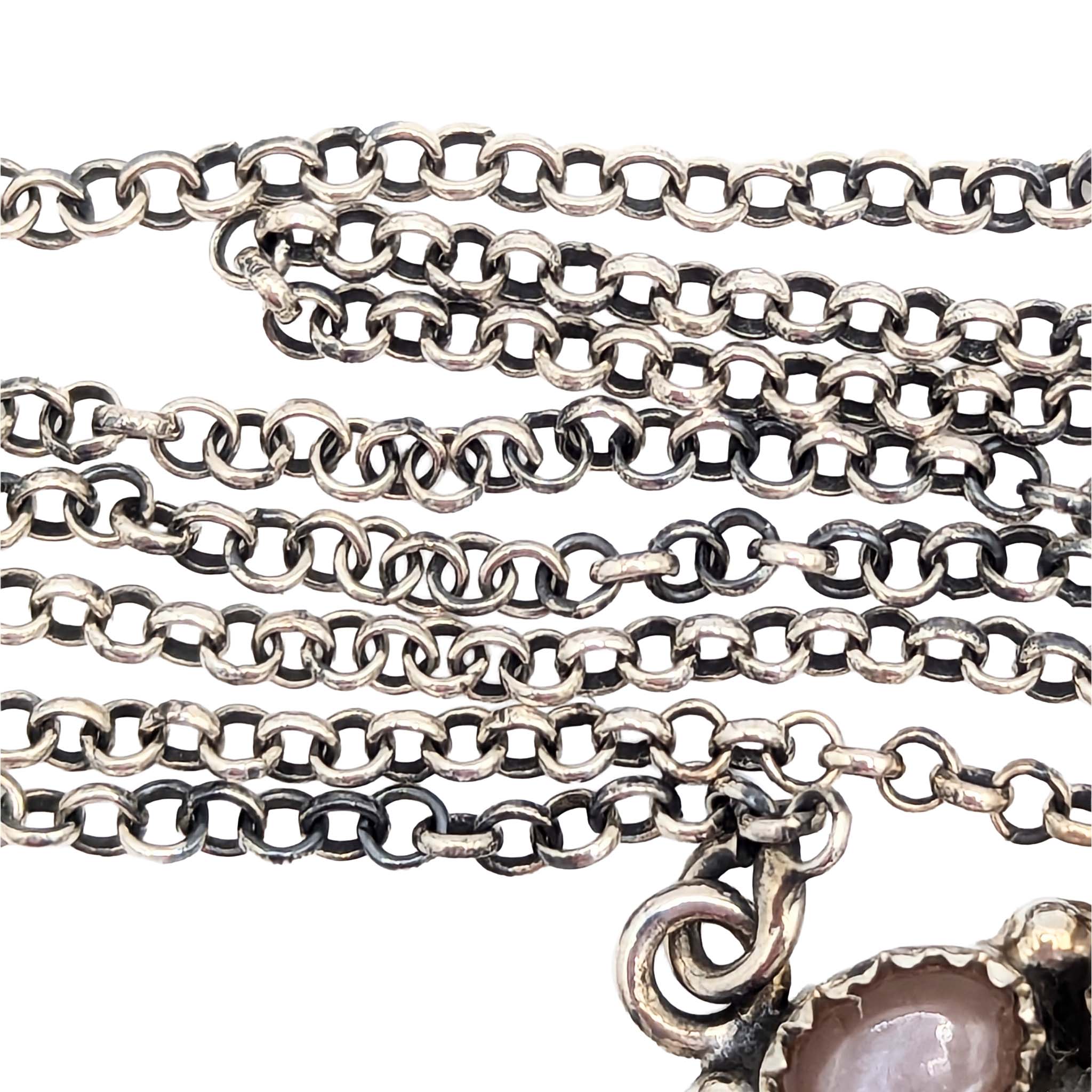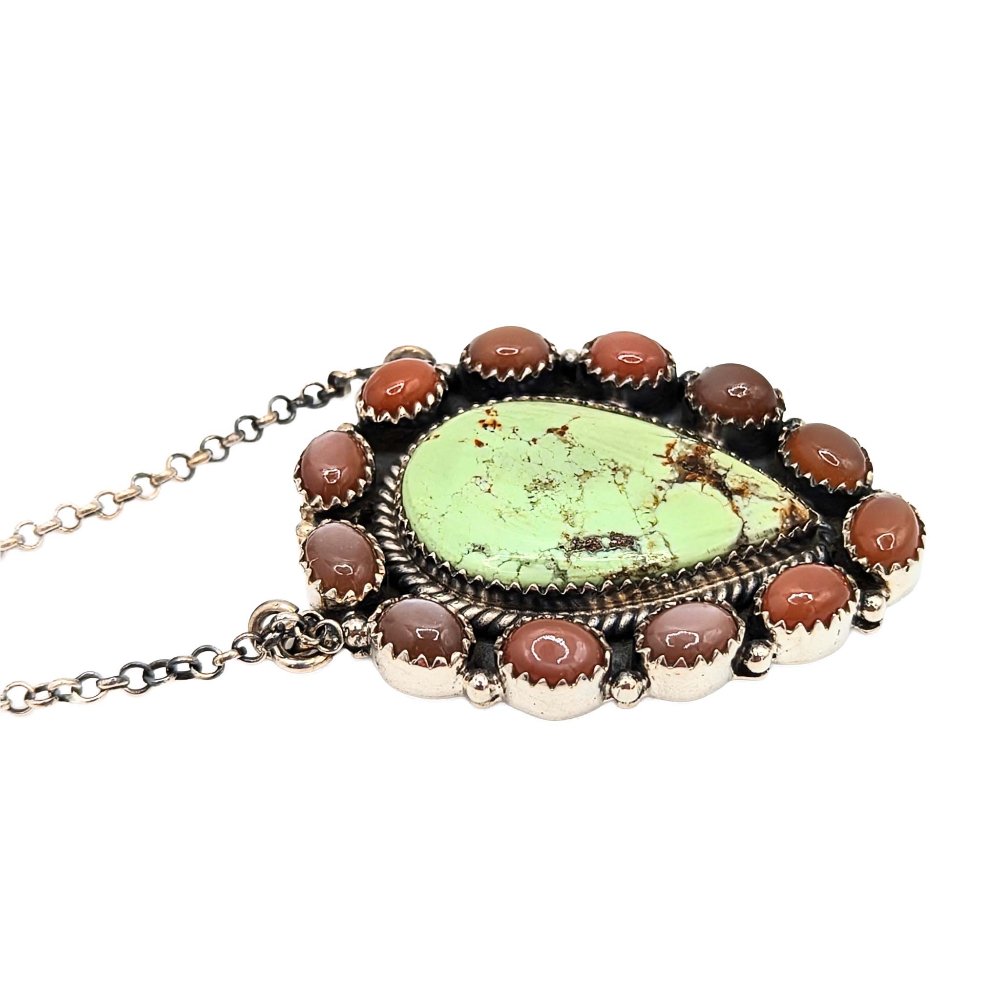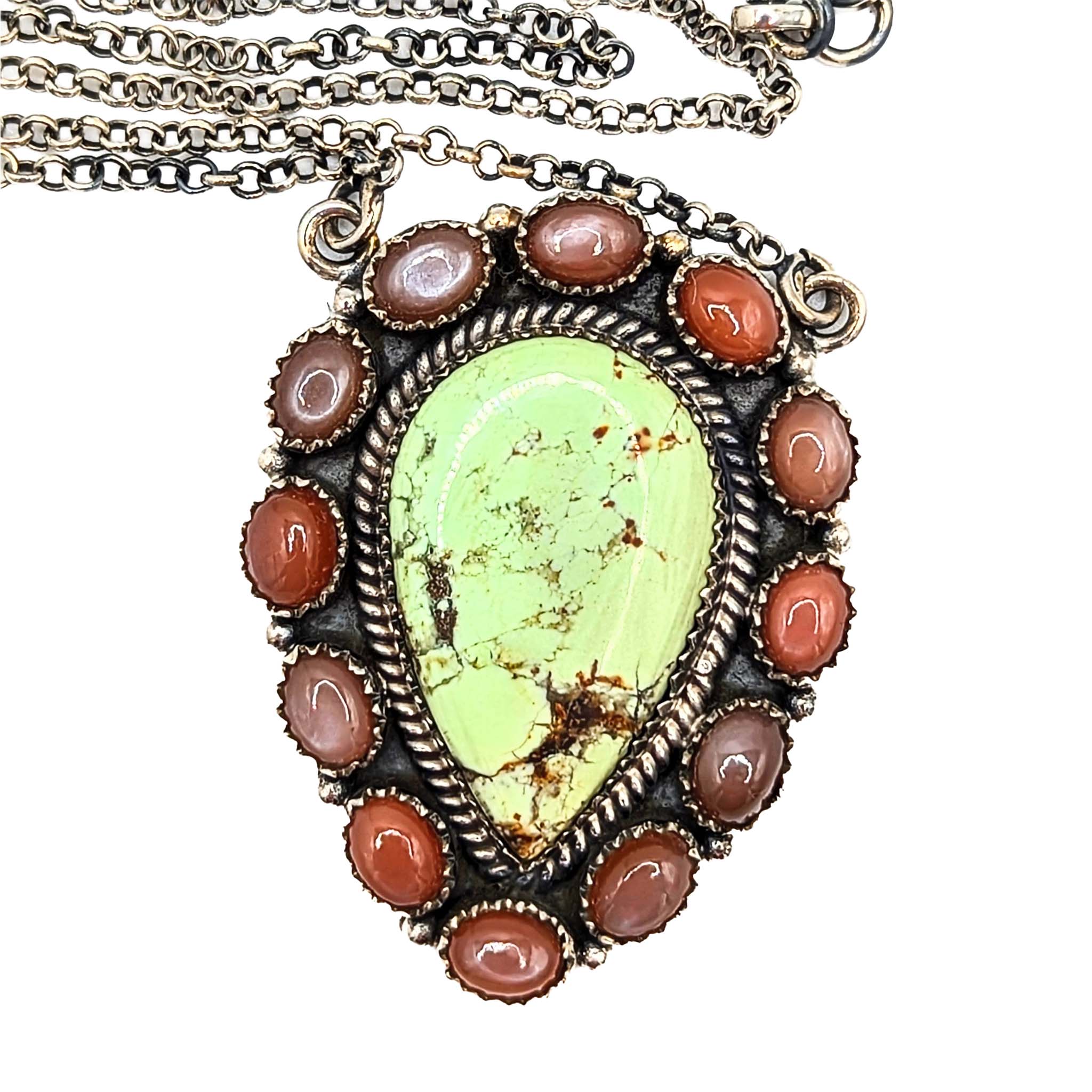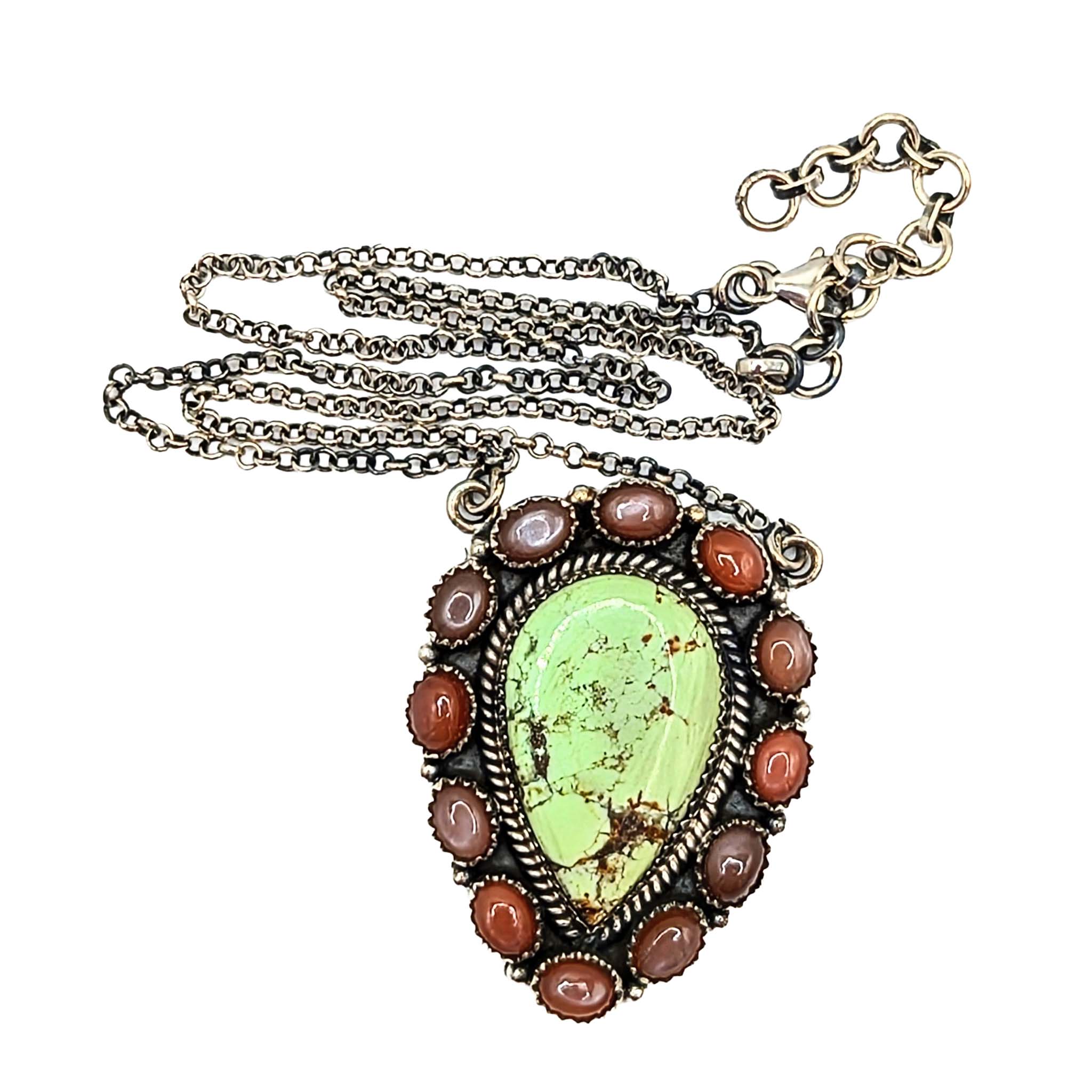 Southwest Sterling Silver Turquoise Pink Opal Teardrop Necklace Signed Hada Sterling 16-18in Length 28.8g