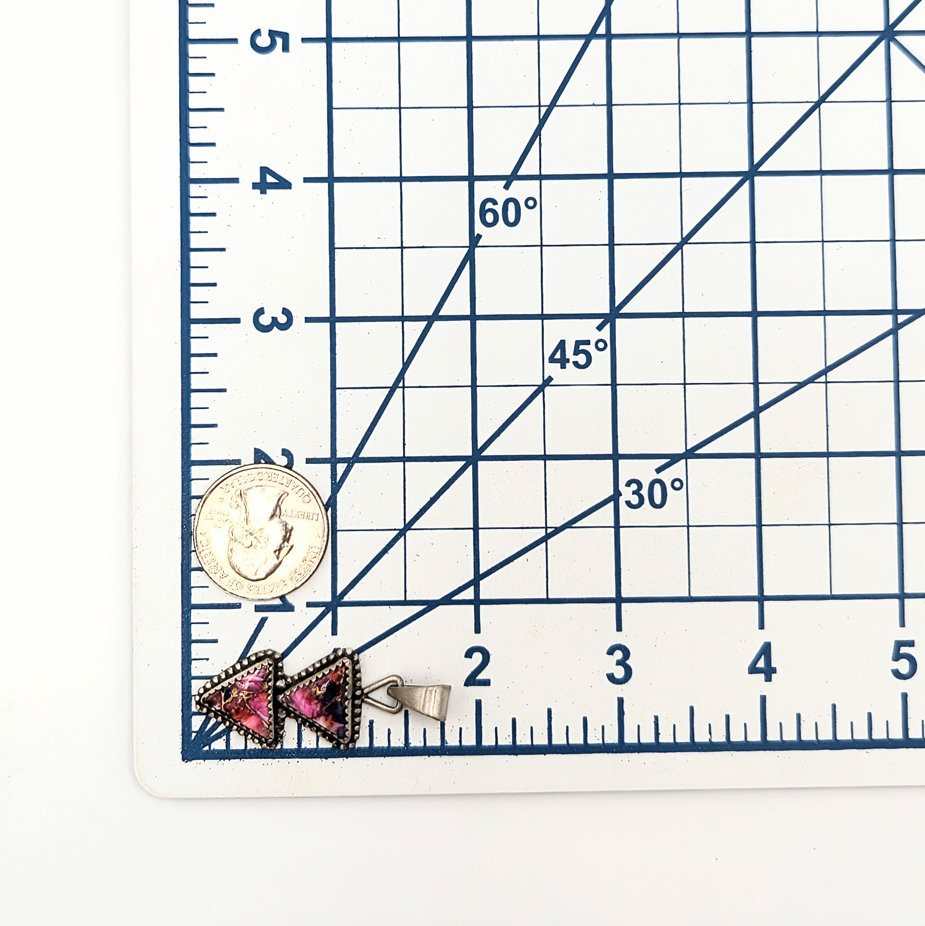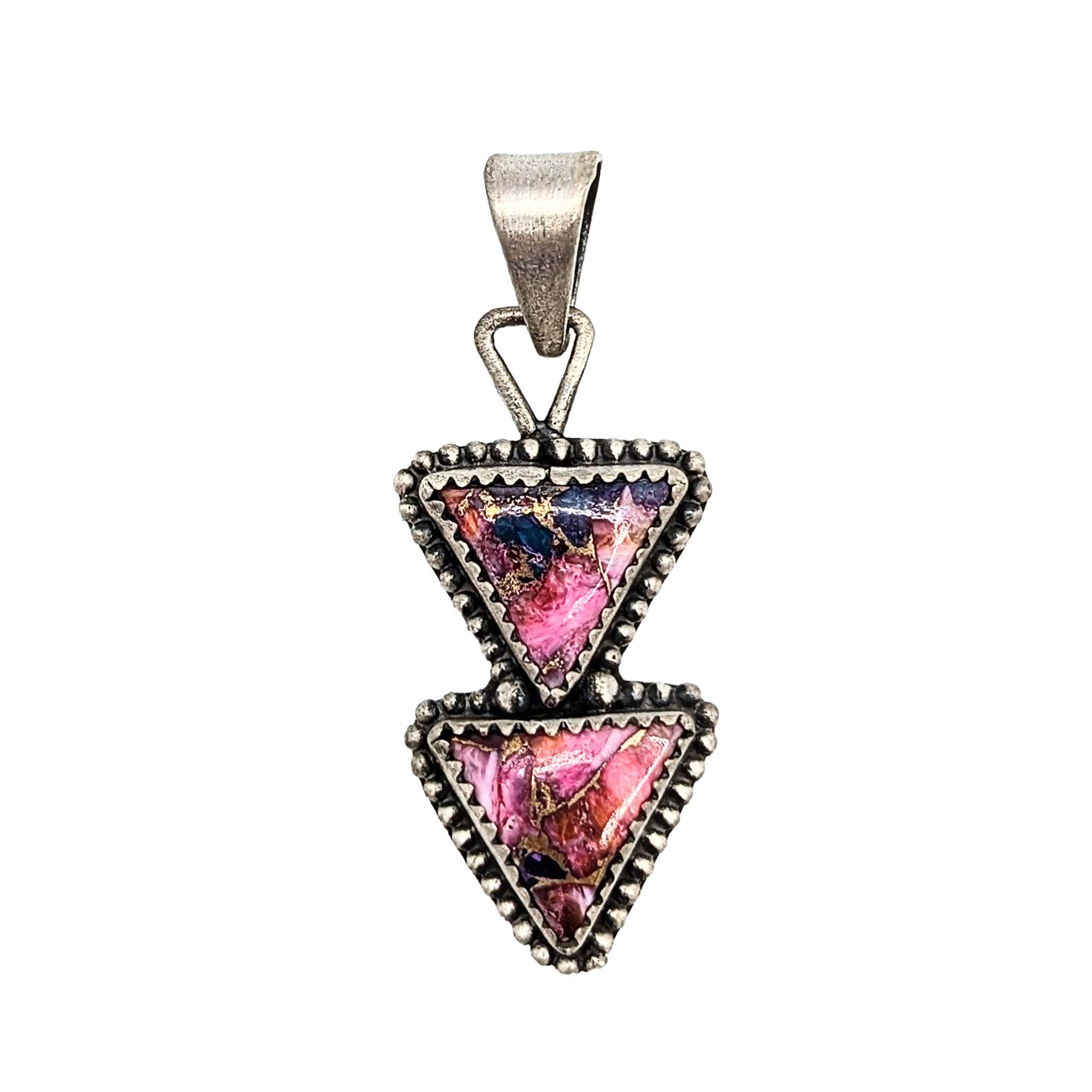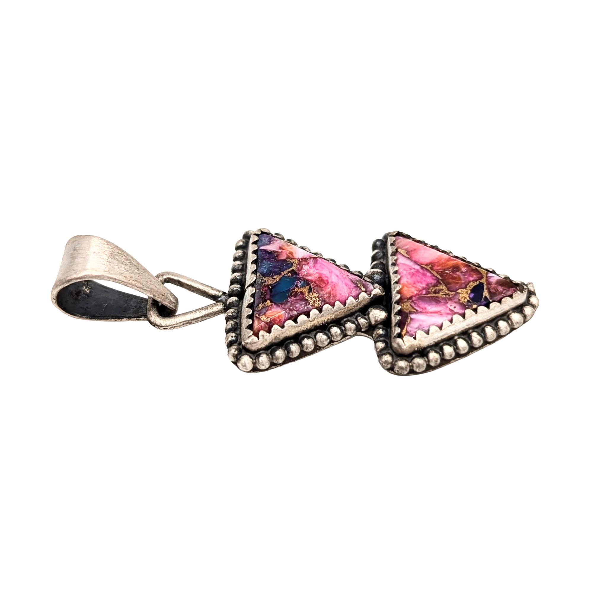 Southwest Sterling Silver Pink Dhalia Turquoise 2 Stone Triangle Pendant Signed Hada Sterling 6.3g