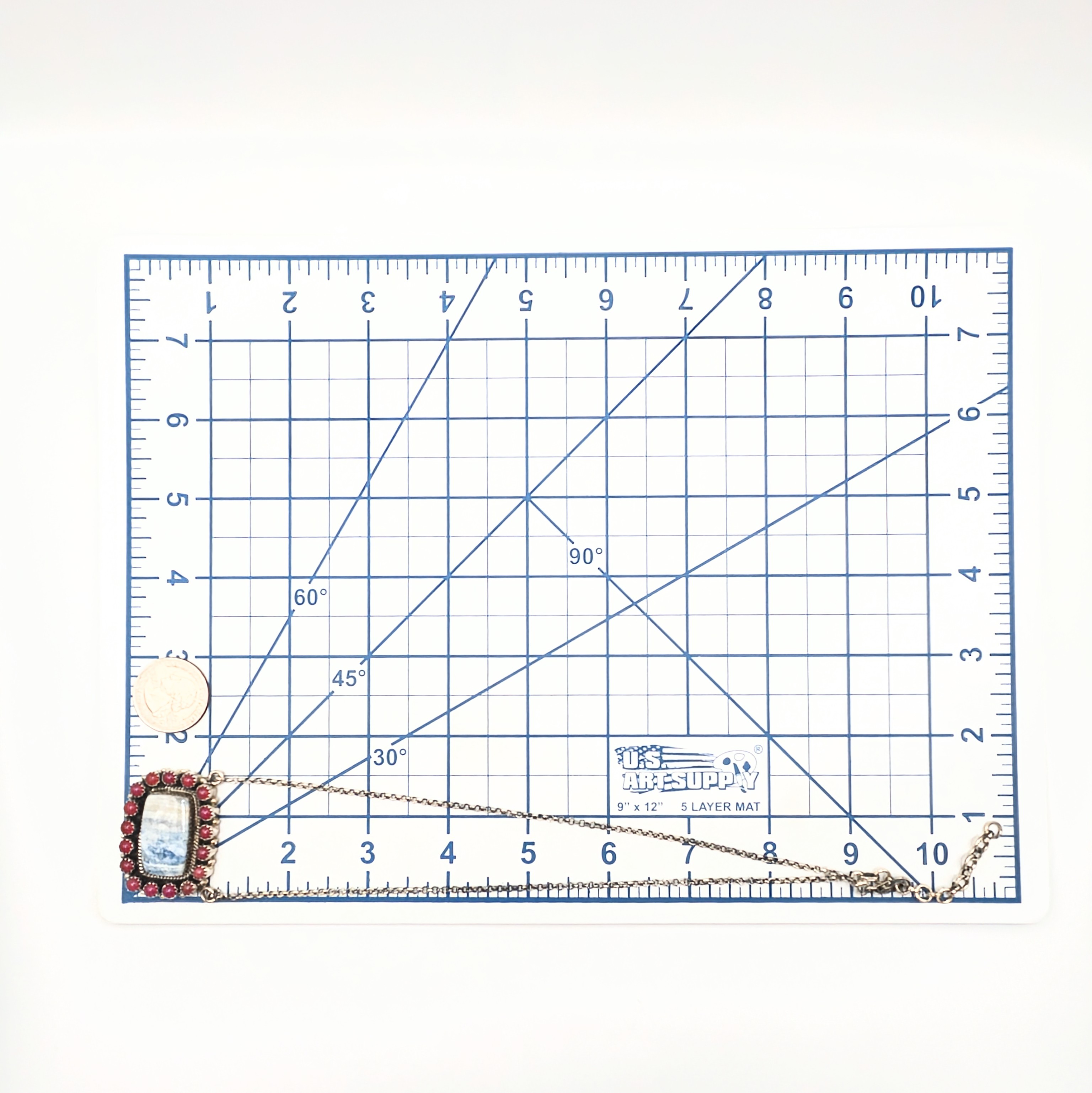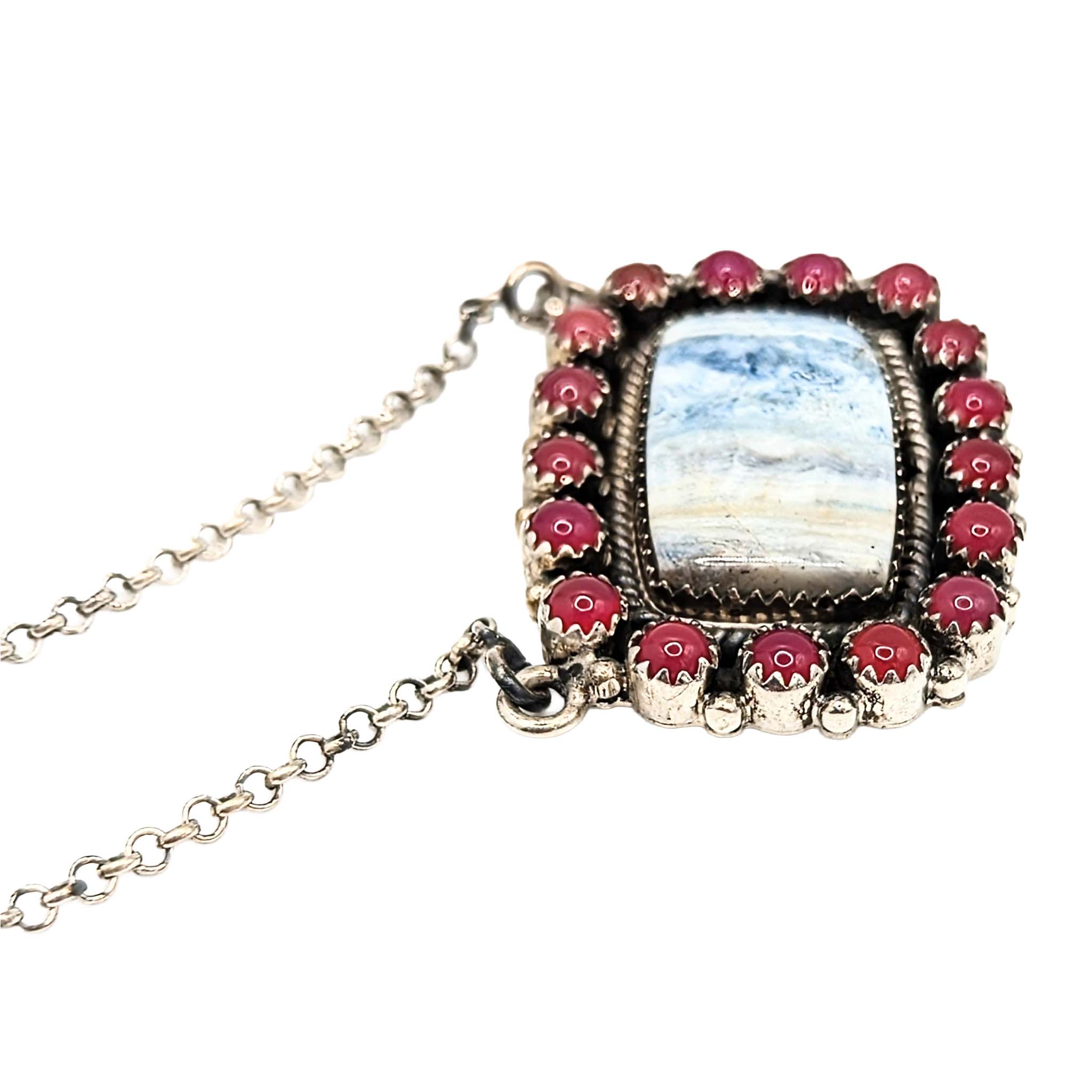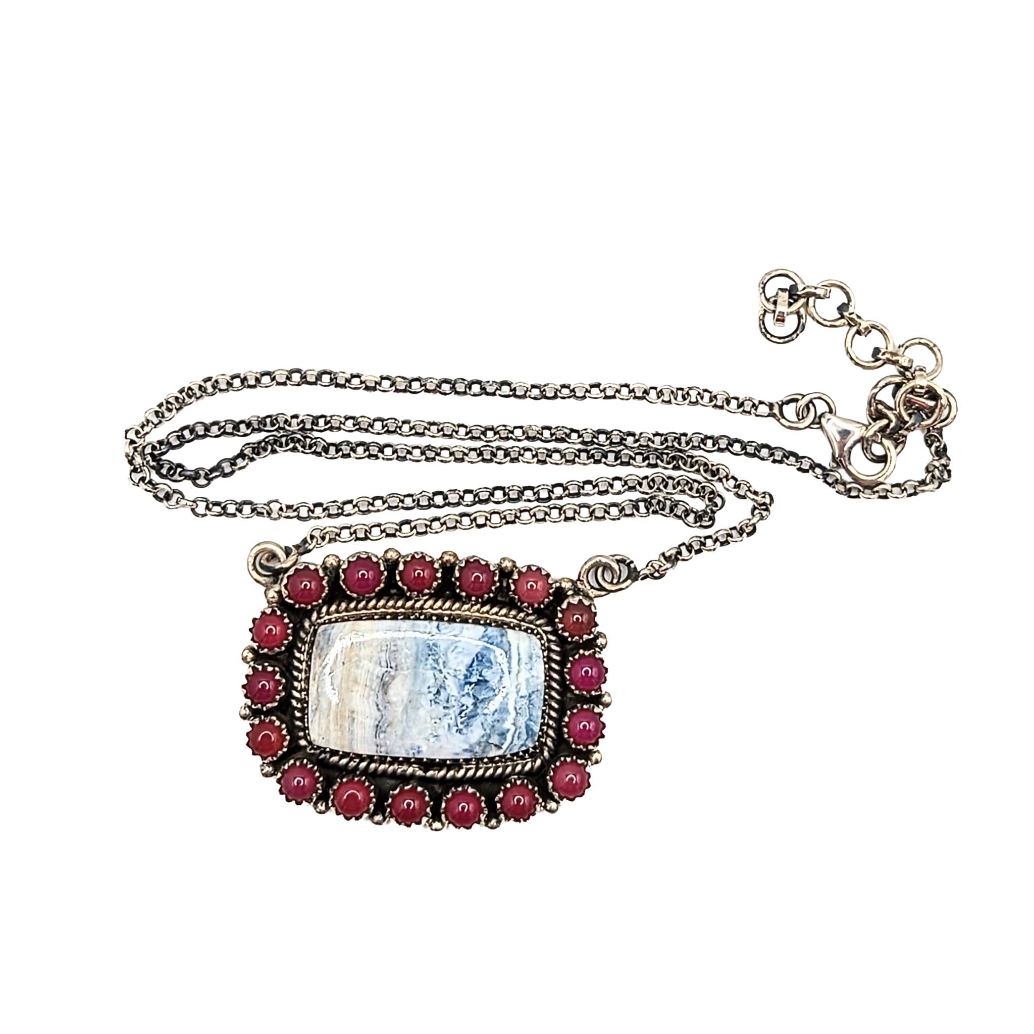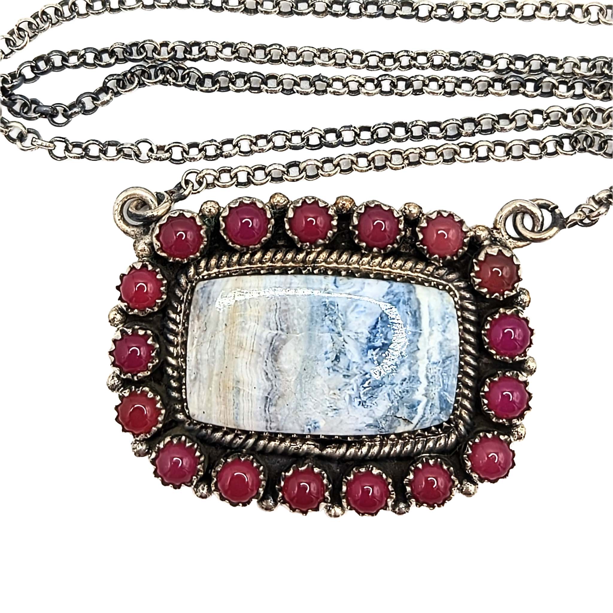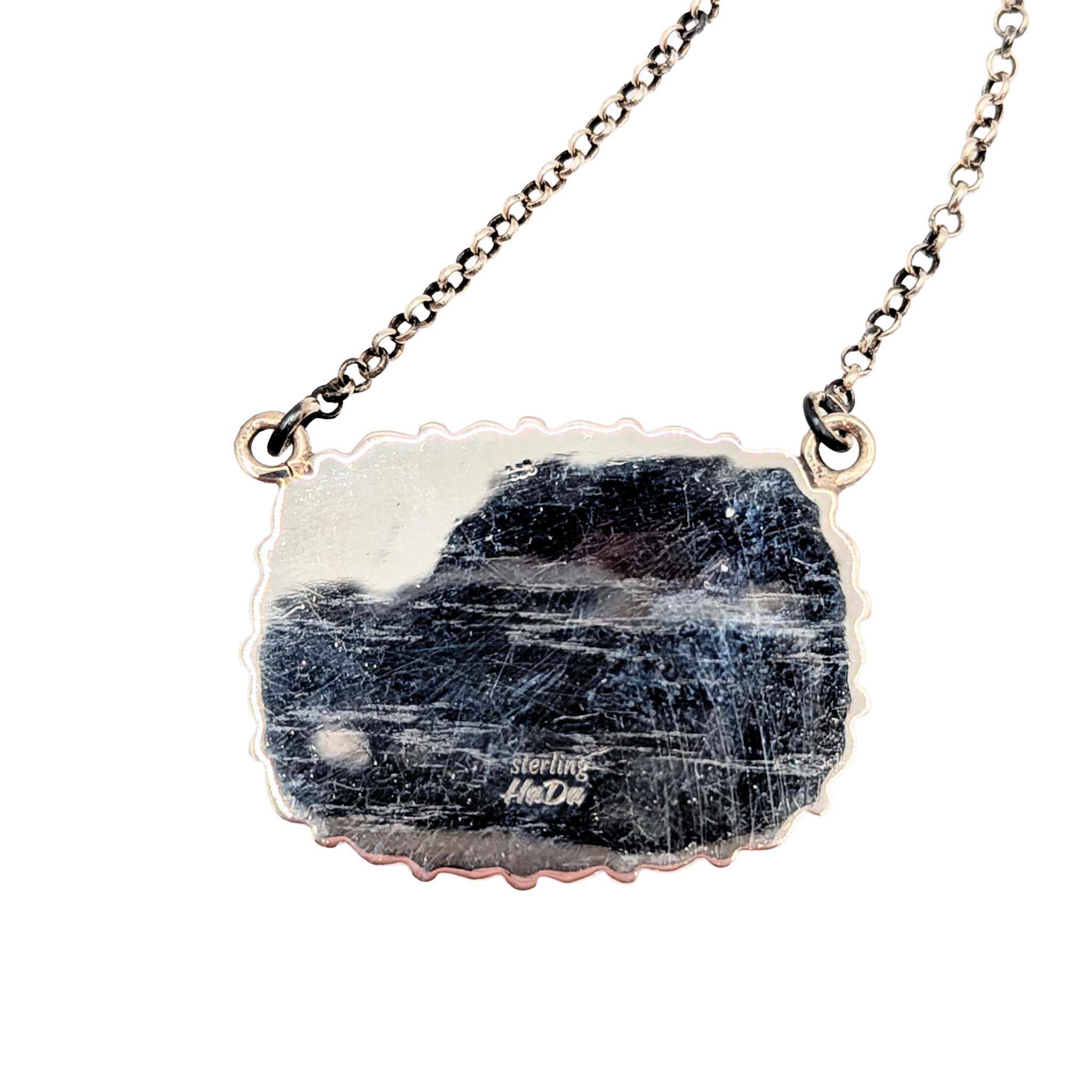 Southwest Sterling Silver Agate Pink Tourmaline Rectangle Necklace Signed Hada Sterling 18-20in Length 26.7g