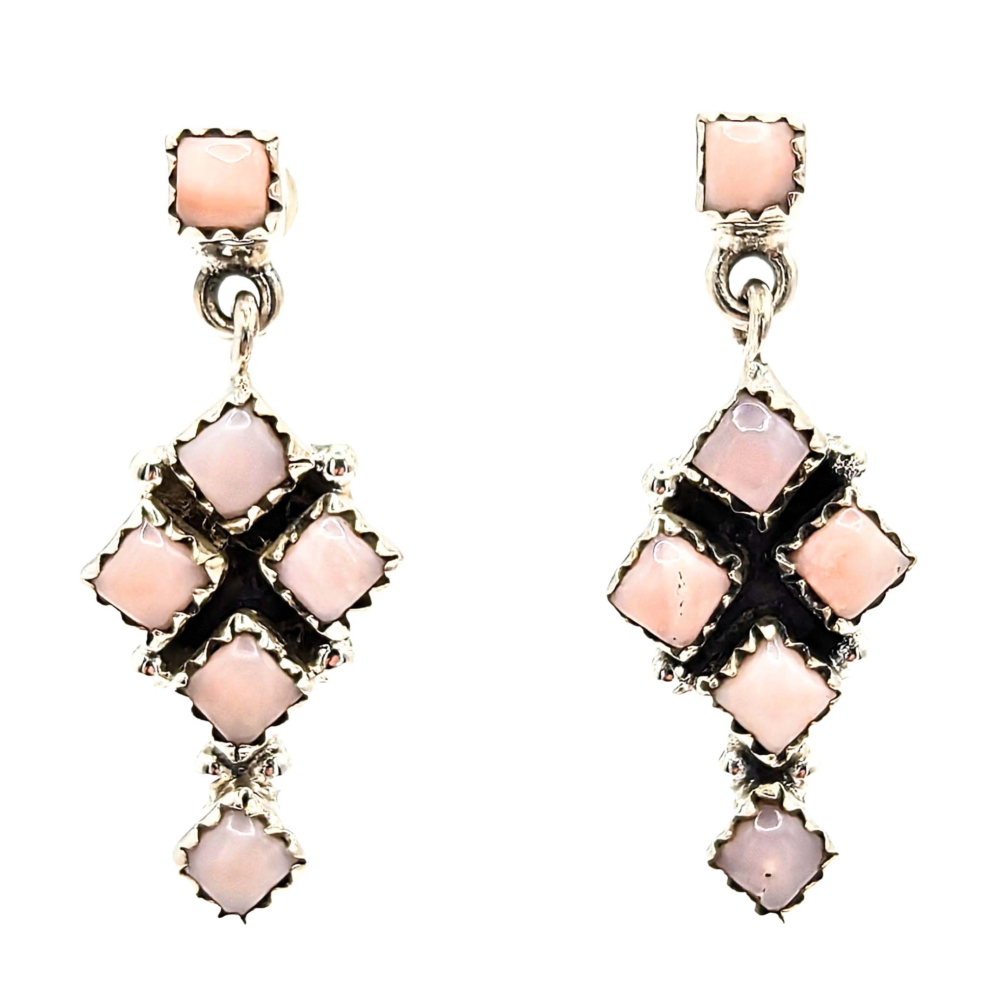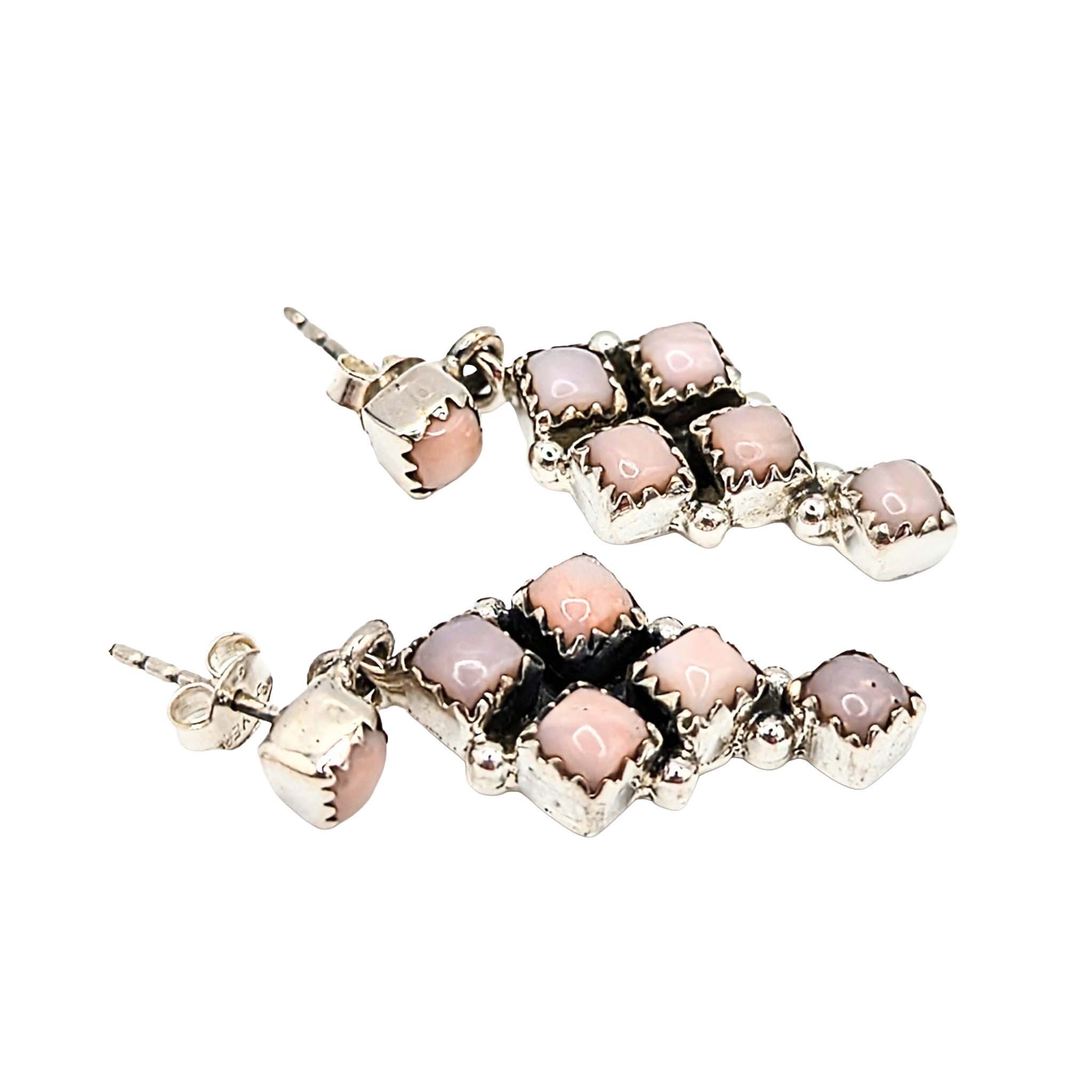Southwest Sterling Silver Pink Opal Dangle Stud Earrings