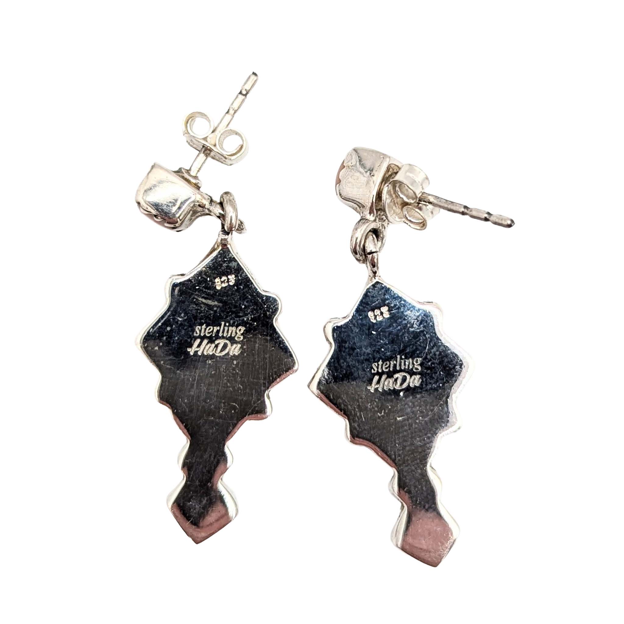 Southwest Sterling Silver Pink Opal Dangle Stud Earrings Signed Hada Sterling 8.3g