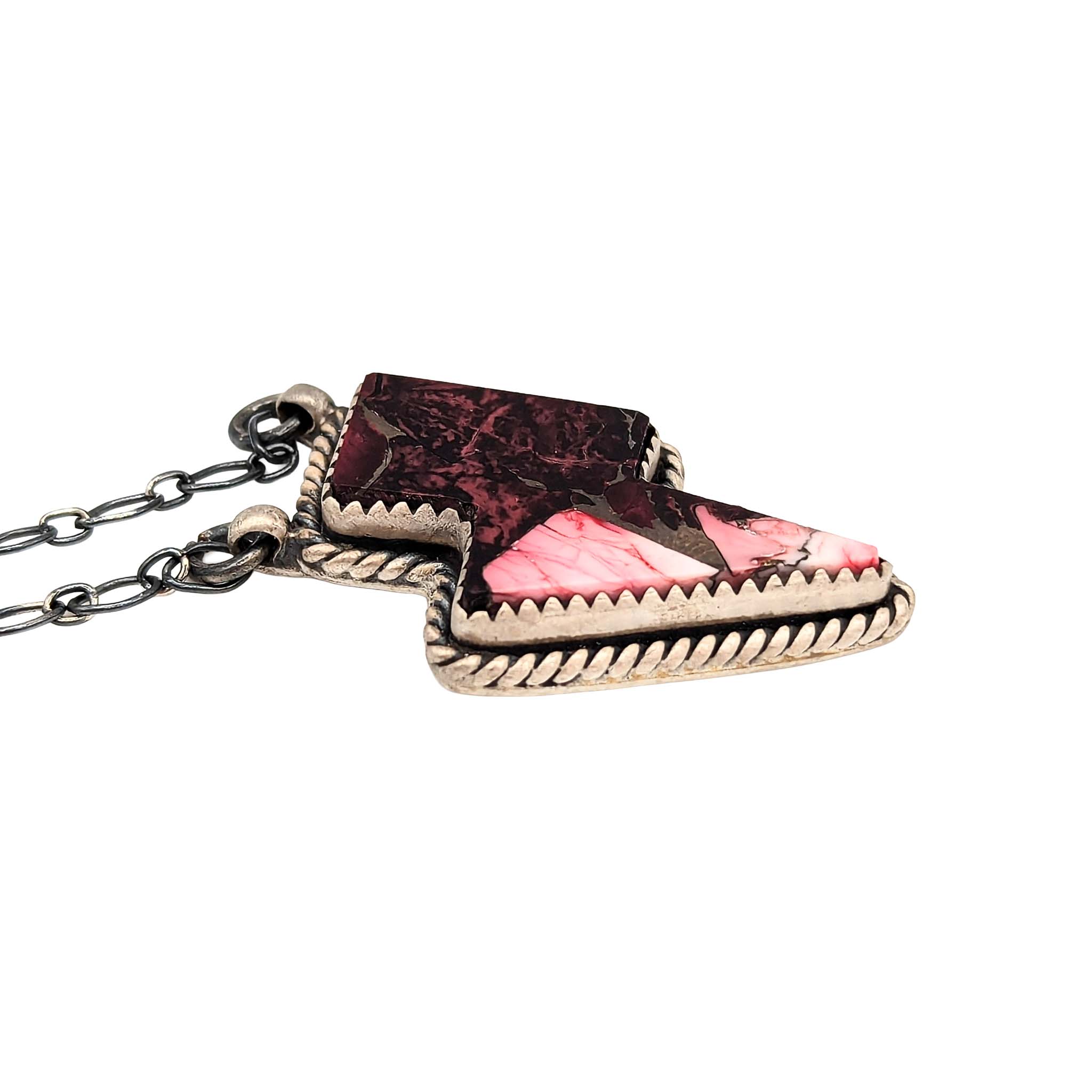 Southwest Sterling Silver Rose Dhalia Turquoise Lightning Bolt Necklace Signed Hada Sterling 20in Length Adjustable 11.3g