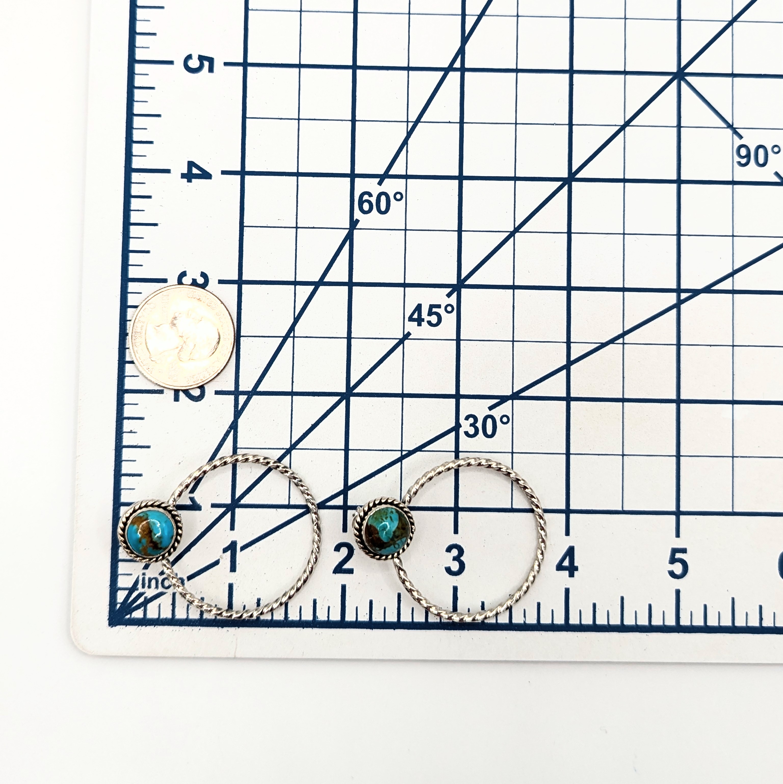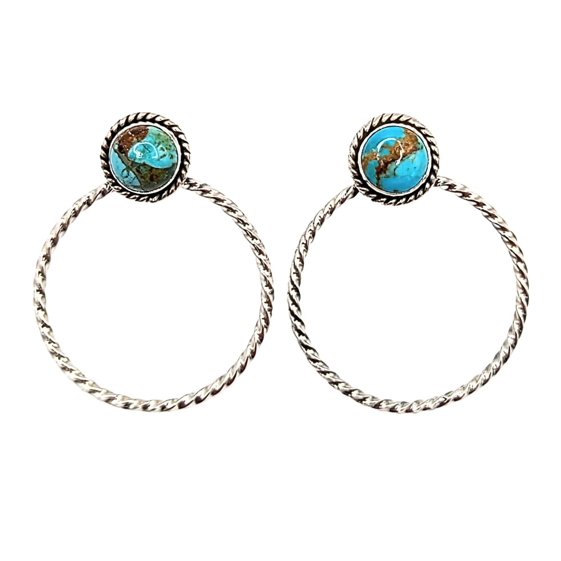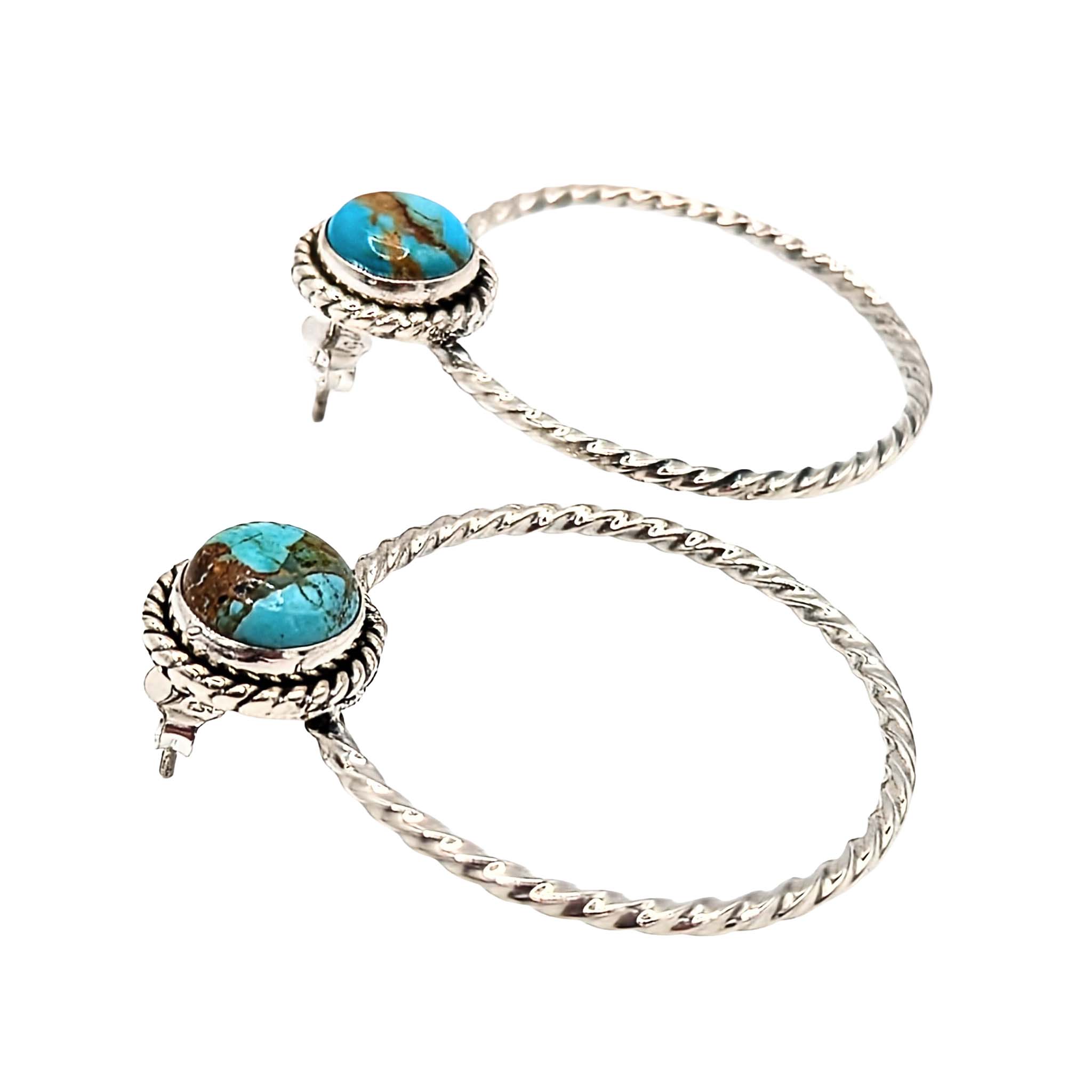 Southwest Sterling Silver Turquoise Twisted Hoop Stud Earrings