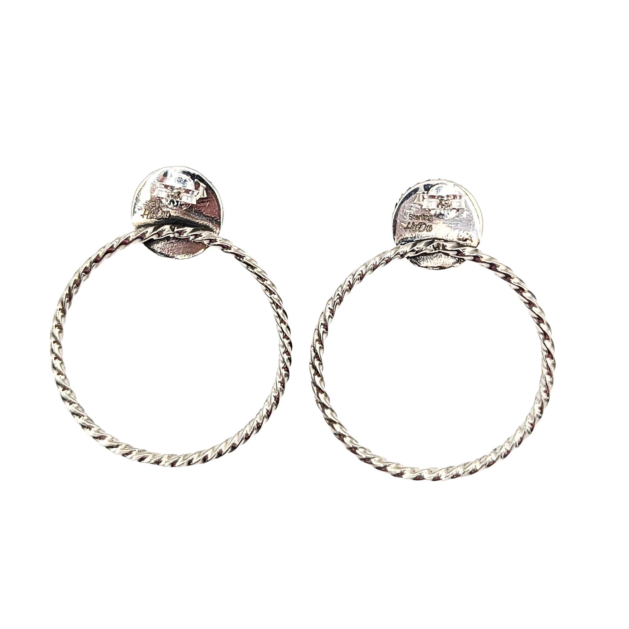 Southwest Sterling Silver Turquoise Twisted Hoop Stud Earrings Signed Hada Sterling 11.2g