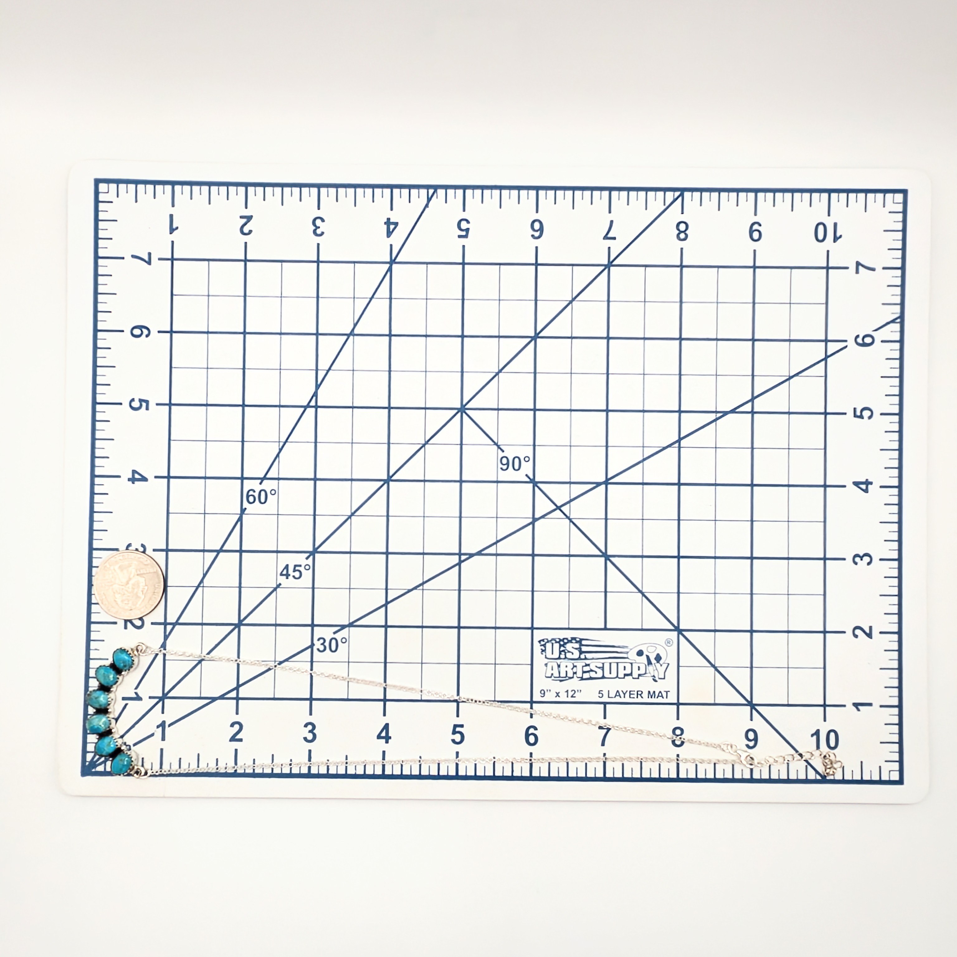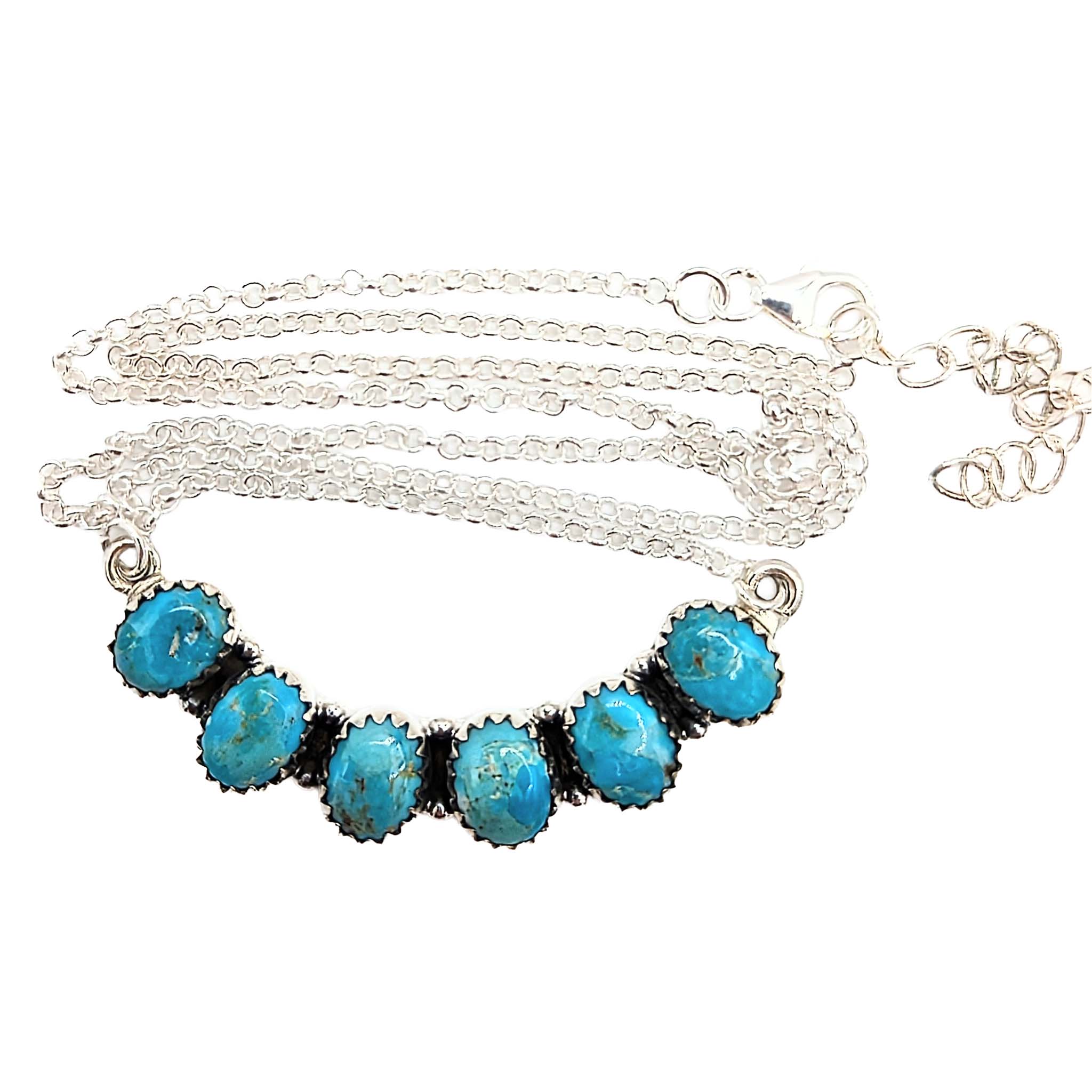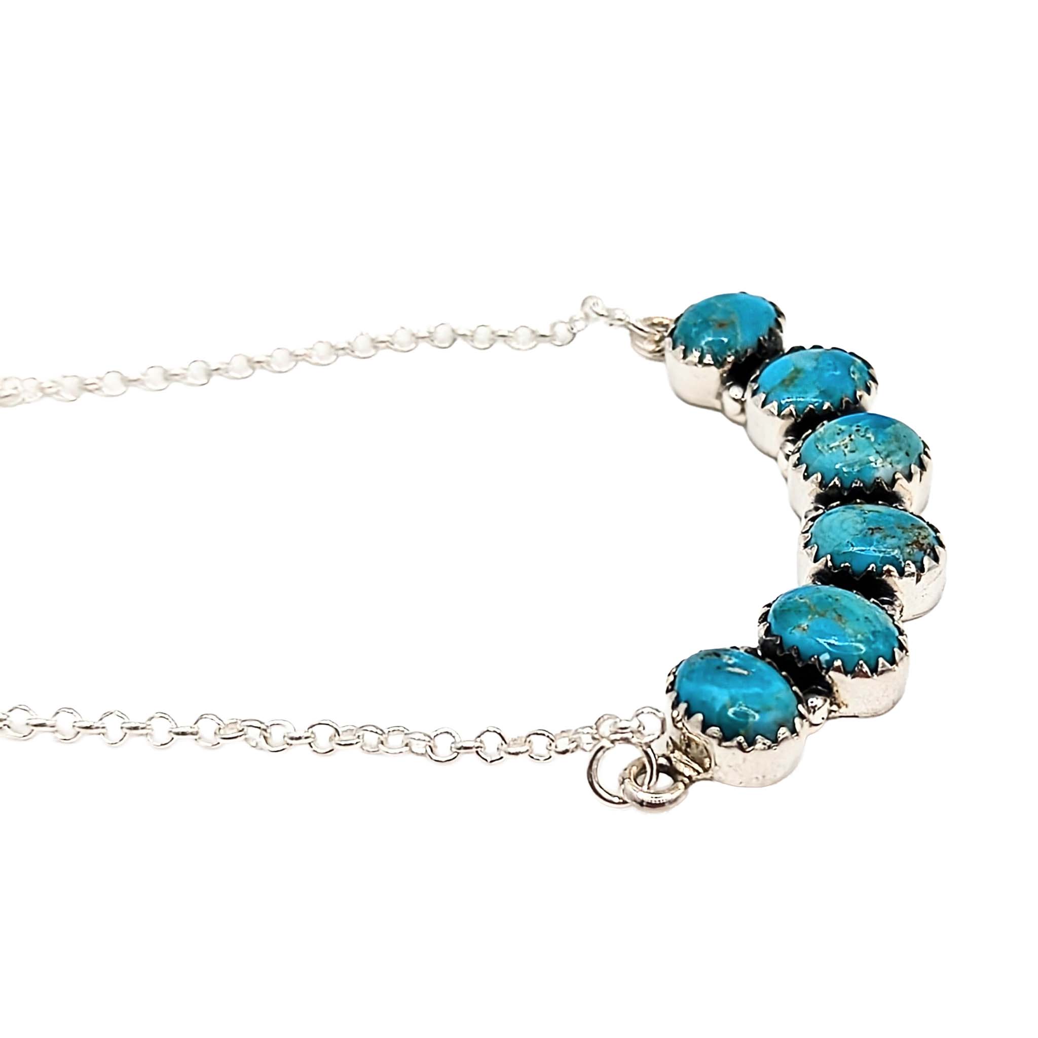 Southwest Sterling Silver Turquoise 6 Stone Bar Necklace Signed Hada Sterling 16-18in Length 9g