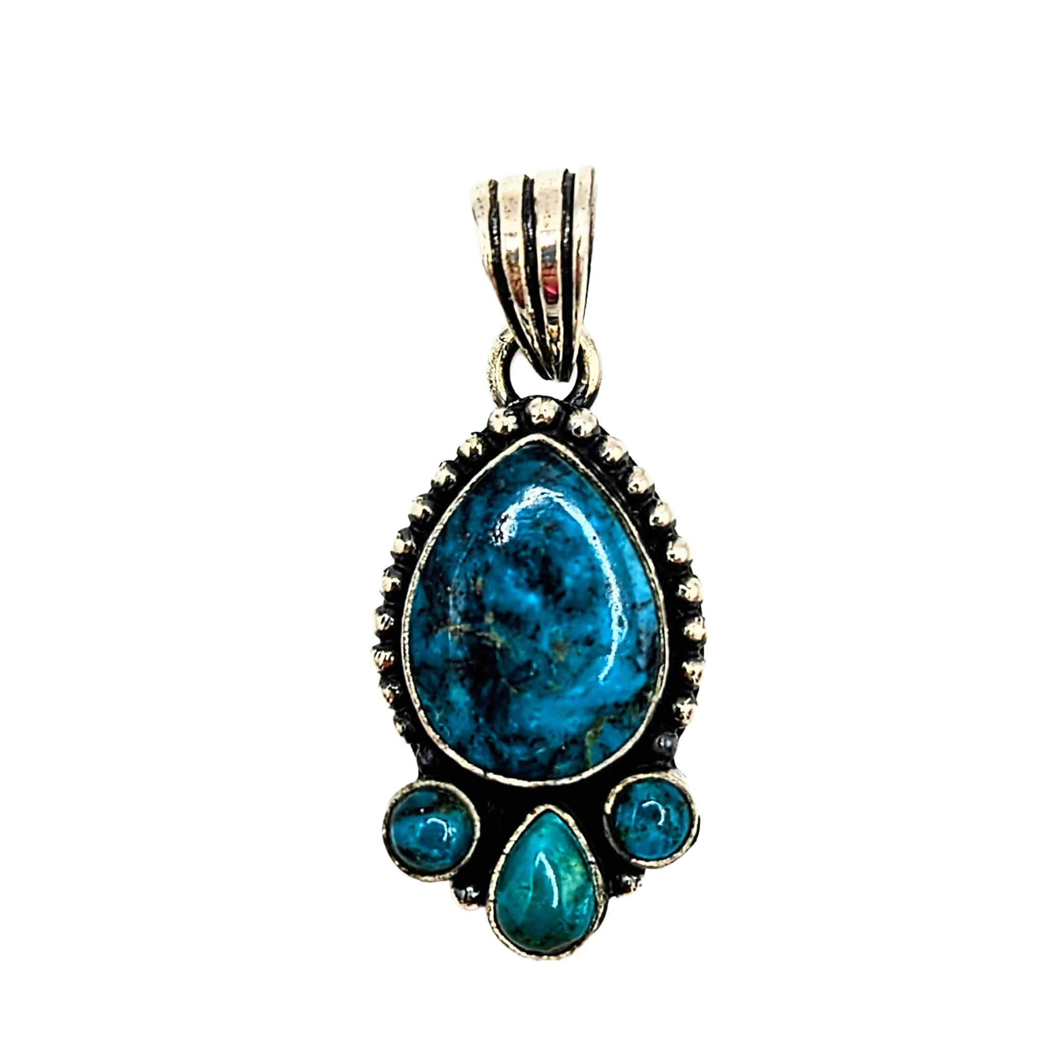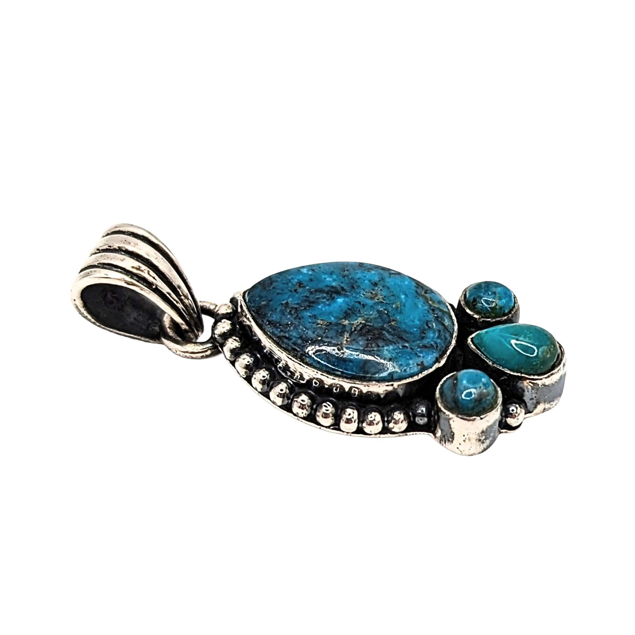 Southwest Sterling Silver Turquoise Multi Stone Drop Pendant Signed Hada Sterling 7.1g