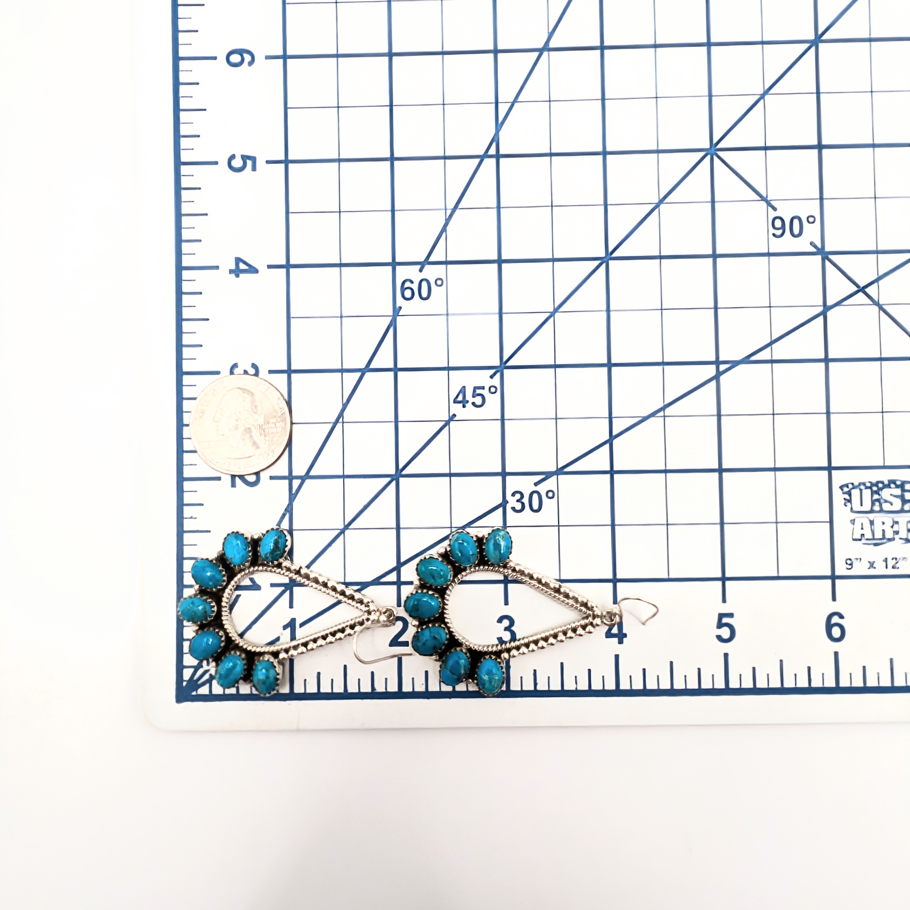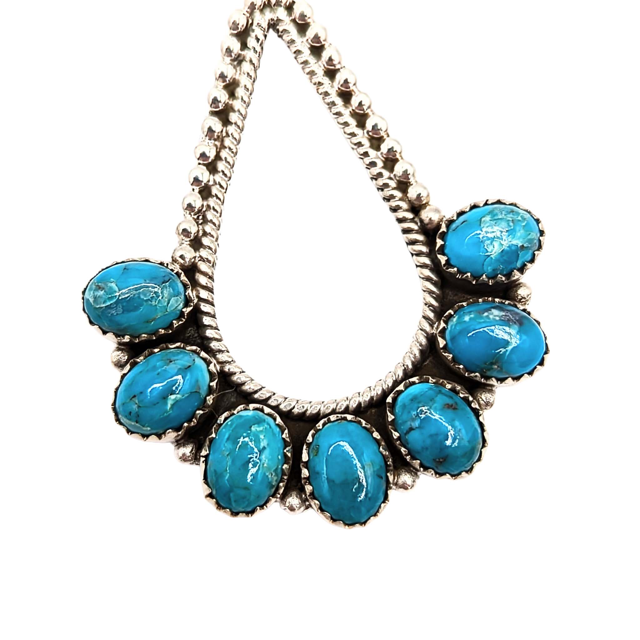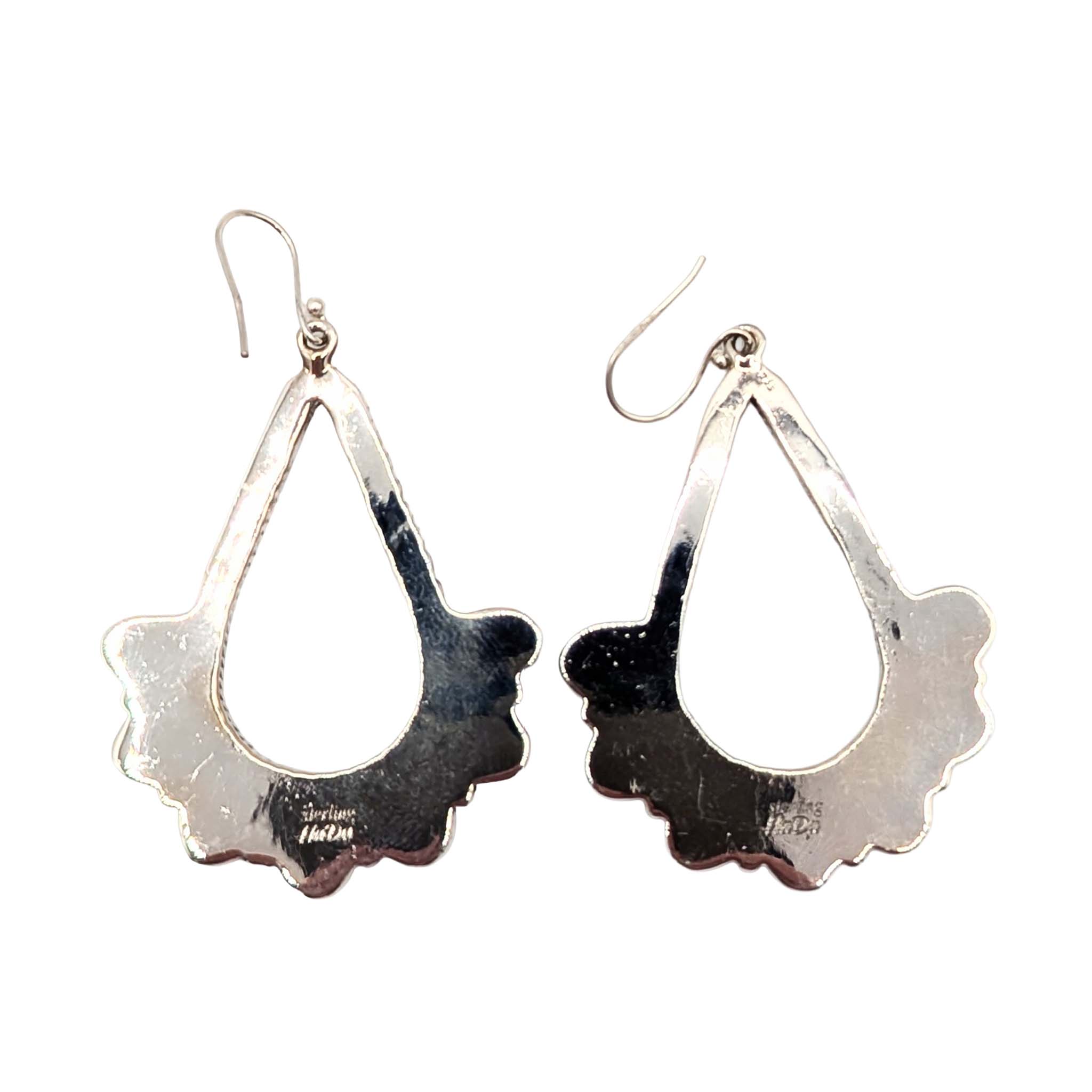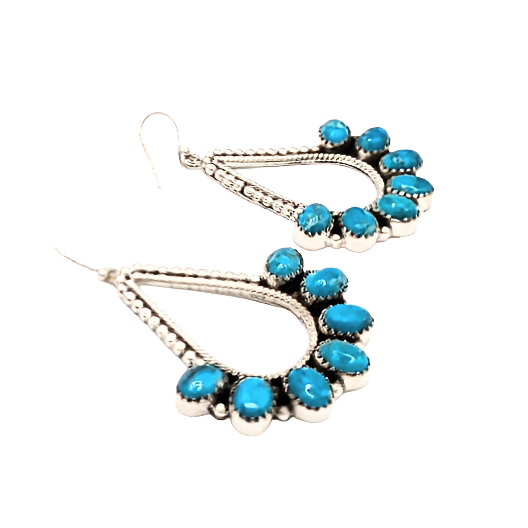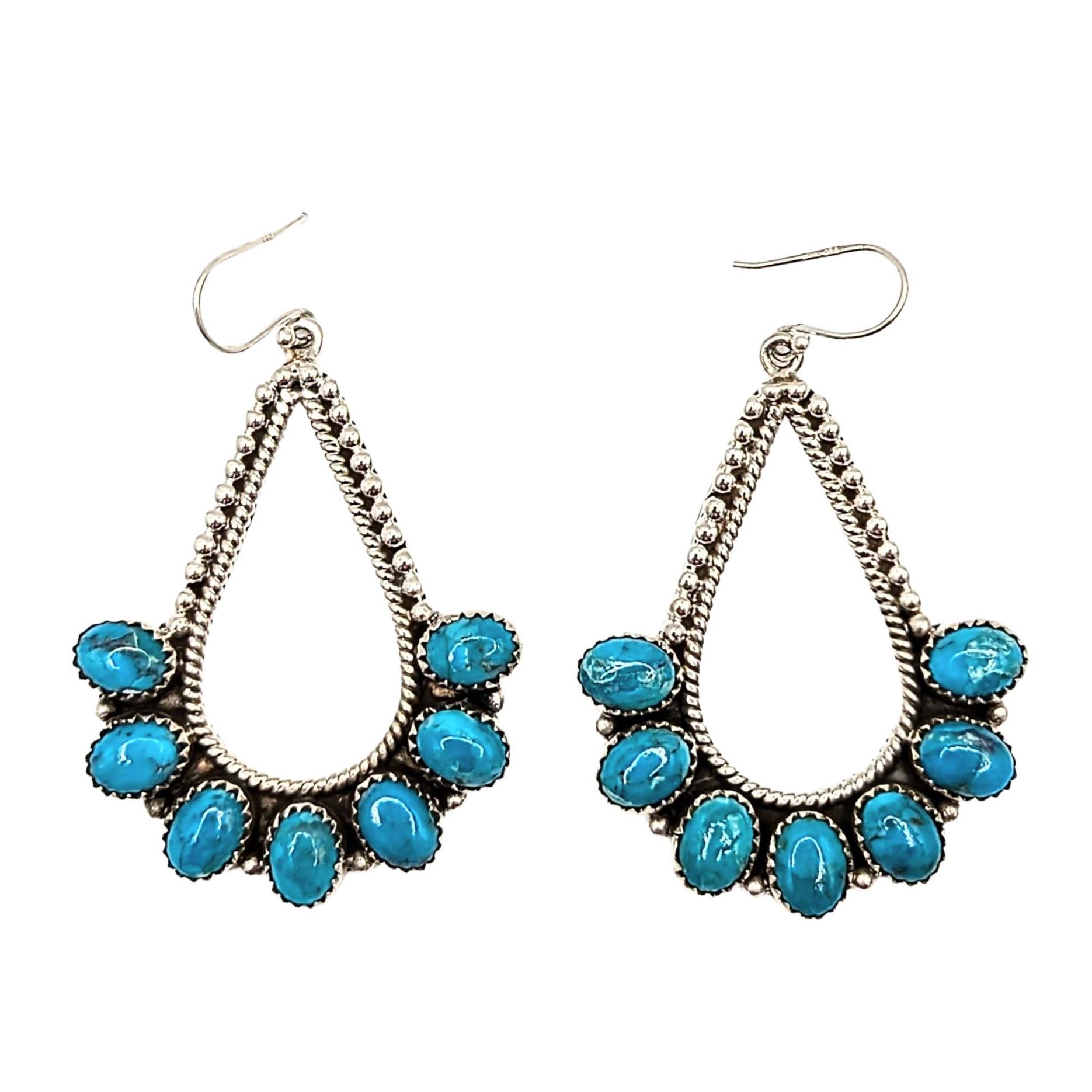 Southwest Sterling Silver Ice Blue Dhalia Turquoise Drop Hoop Dangle Earrings Signed Hada Sterling 25g