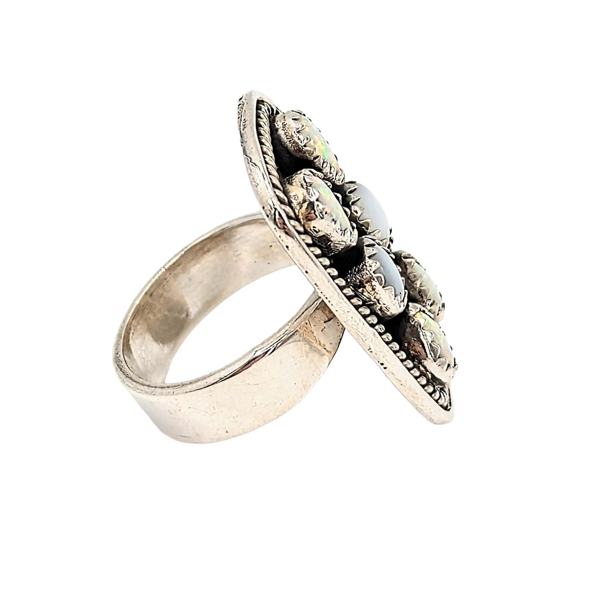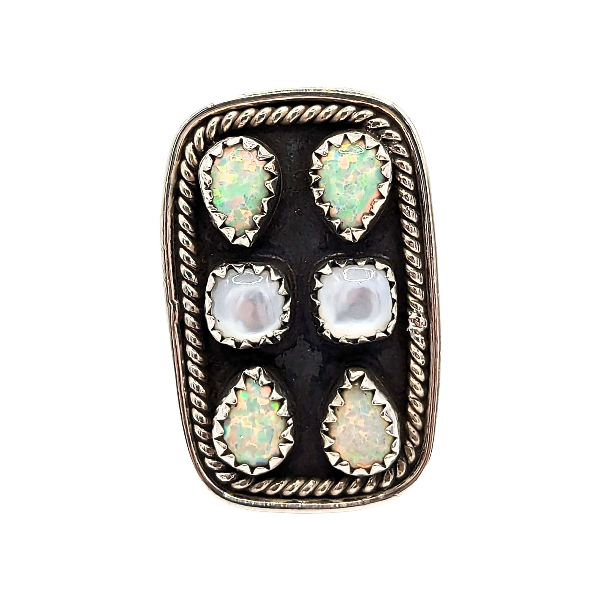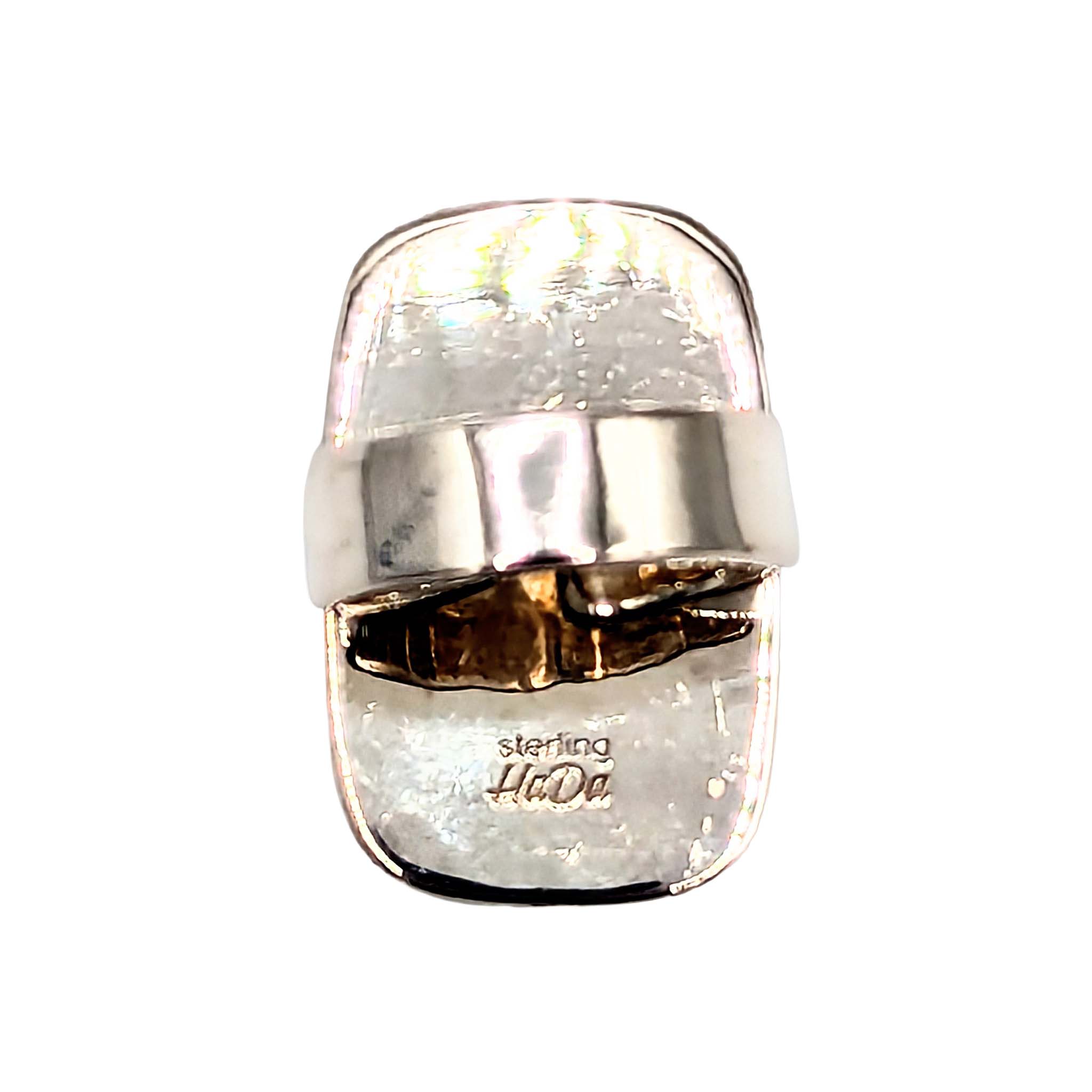 Southwest Sterling Silver Opal Mother of Pearl Rectangle Ring Signed Hada Sterling Approx Size 7 Adjustable 11.3g