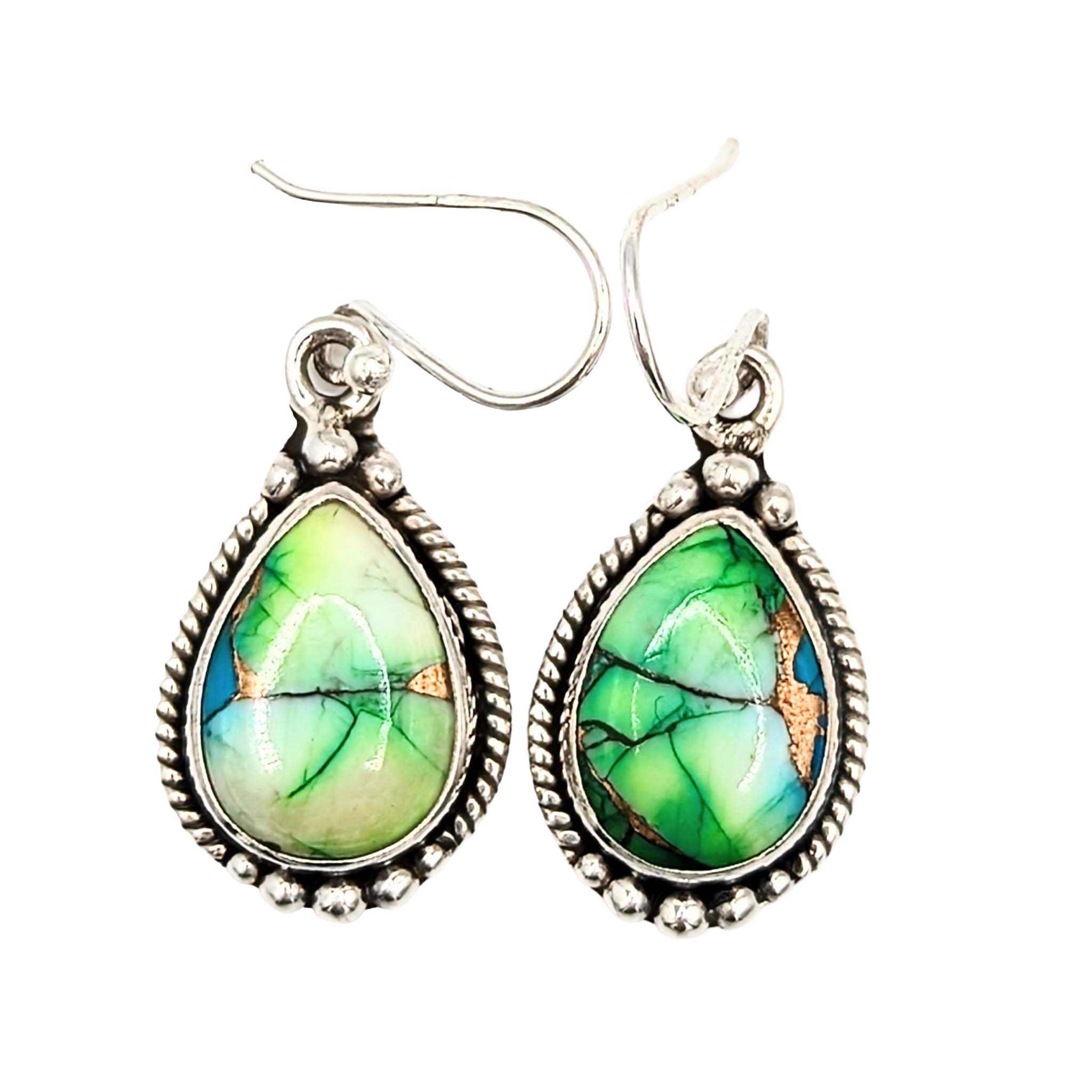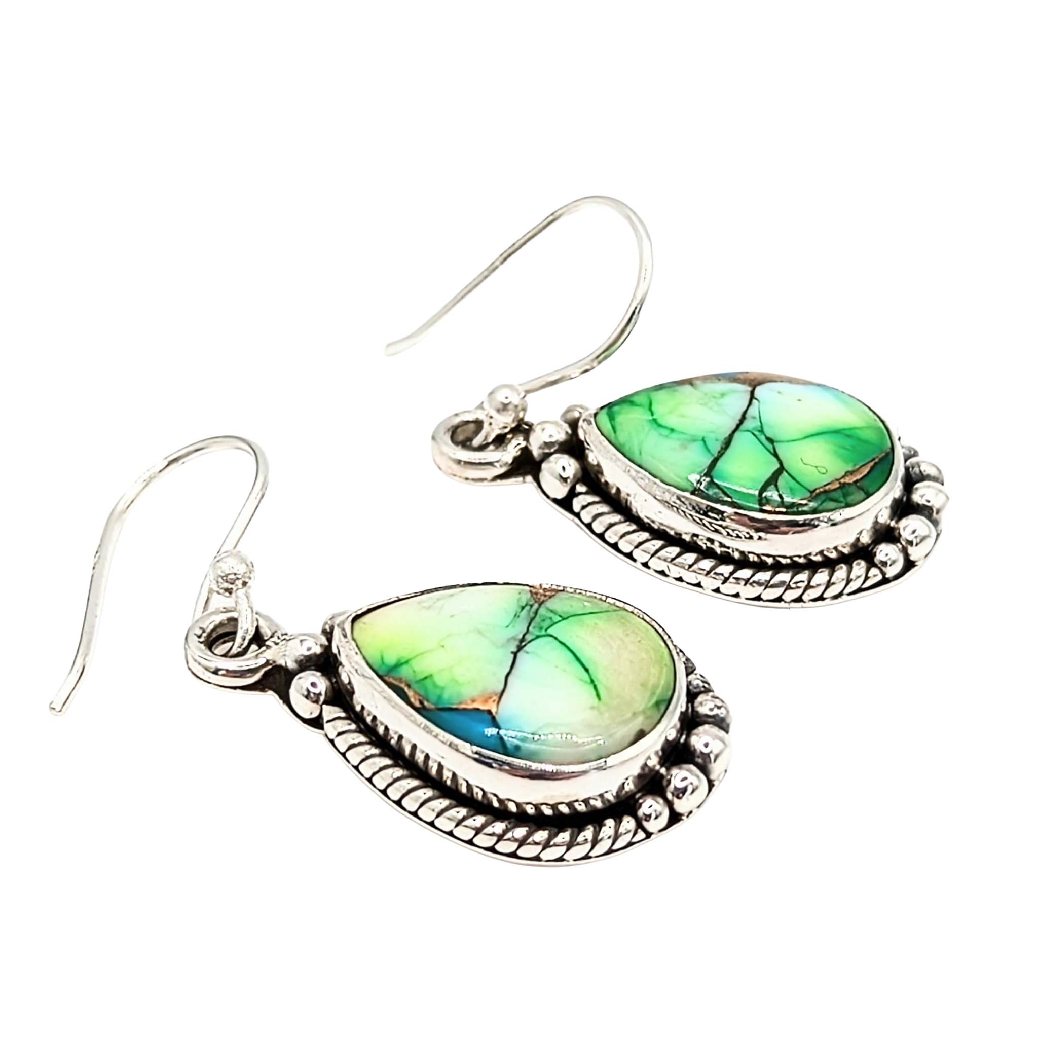 Southwest Sterling Silver Peacock Dhalia Turquoise Dangle Drop Earrings