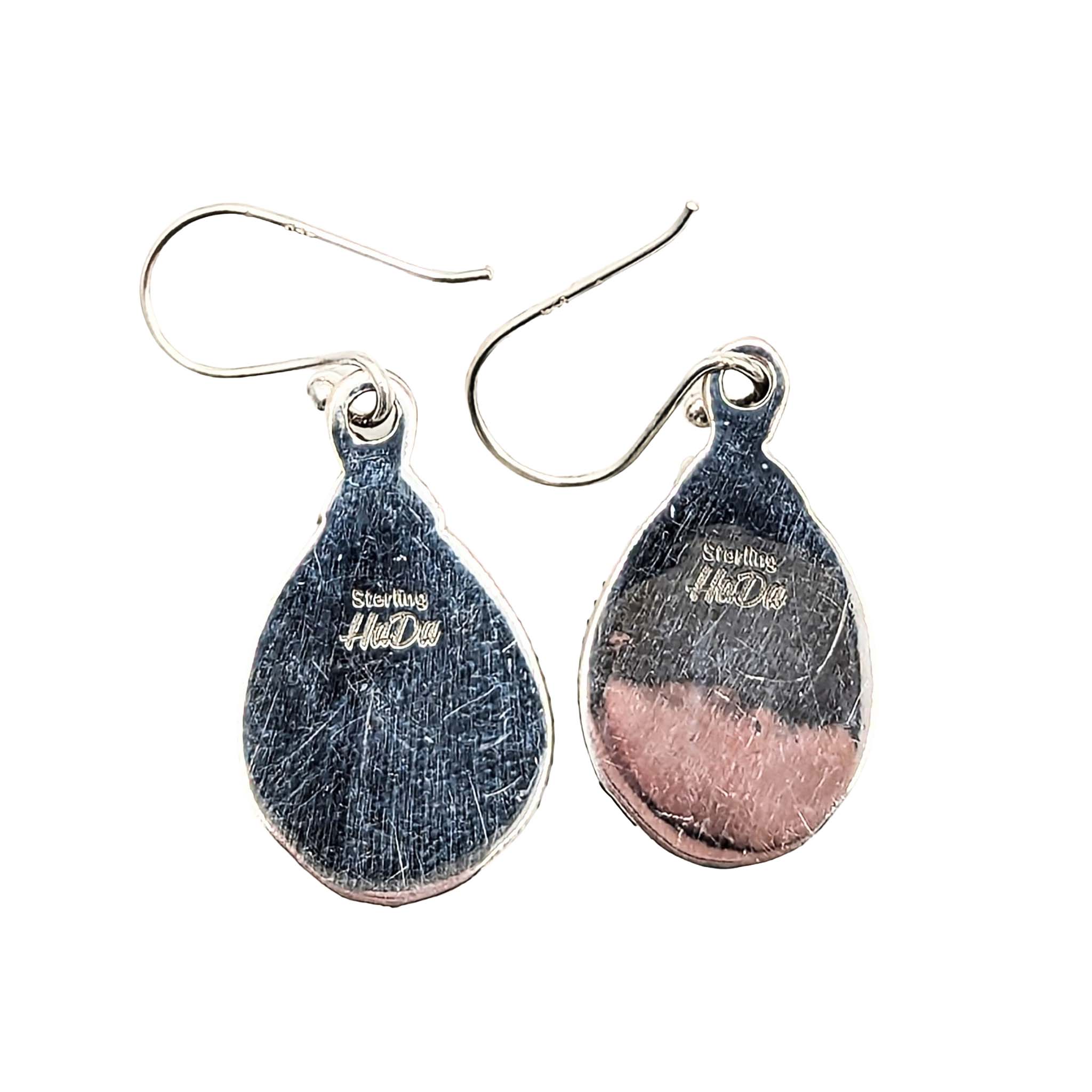 Southwest Sterling Silver Peacock Dhalia Turquoise Dangle Drop Earrings Signed Hada Sterling 6g