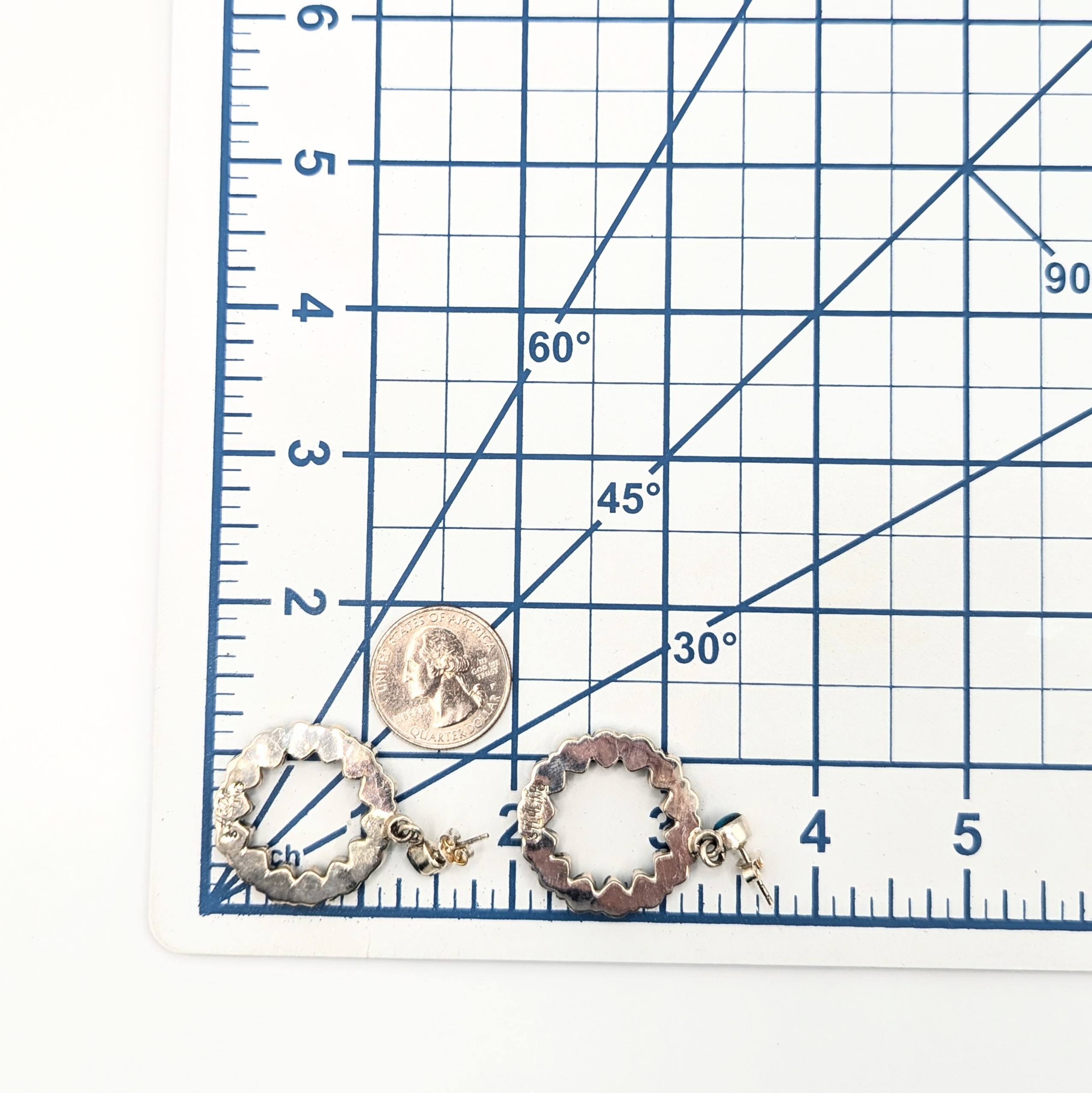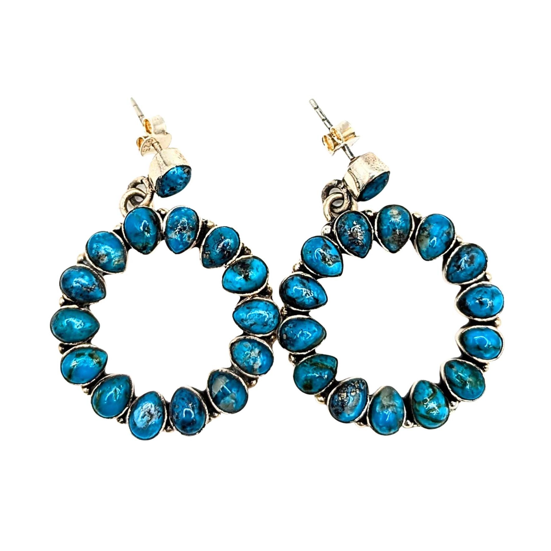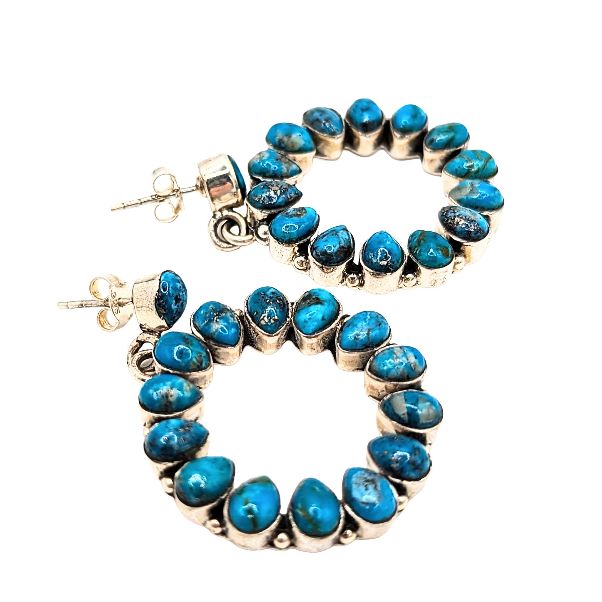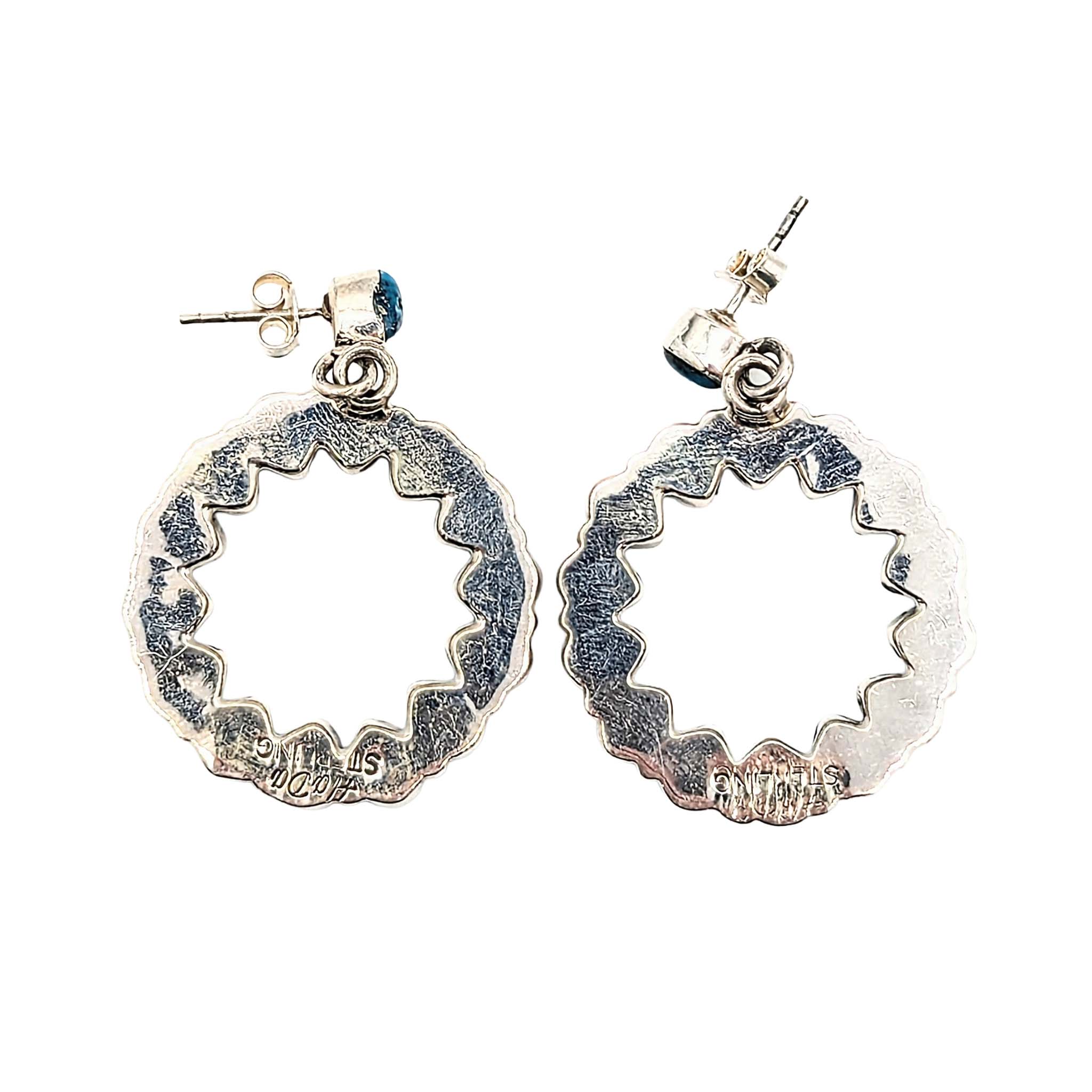 Southwest Sterling Silver Ice Blue Dhalia Turquoise Circle Dangle Stud Earrings Signed Hada Sterling 16g