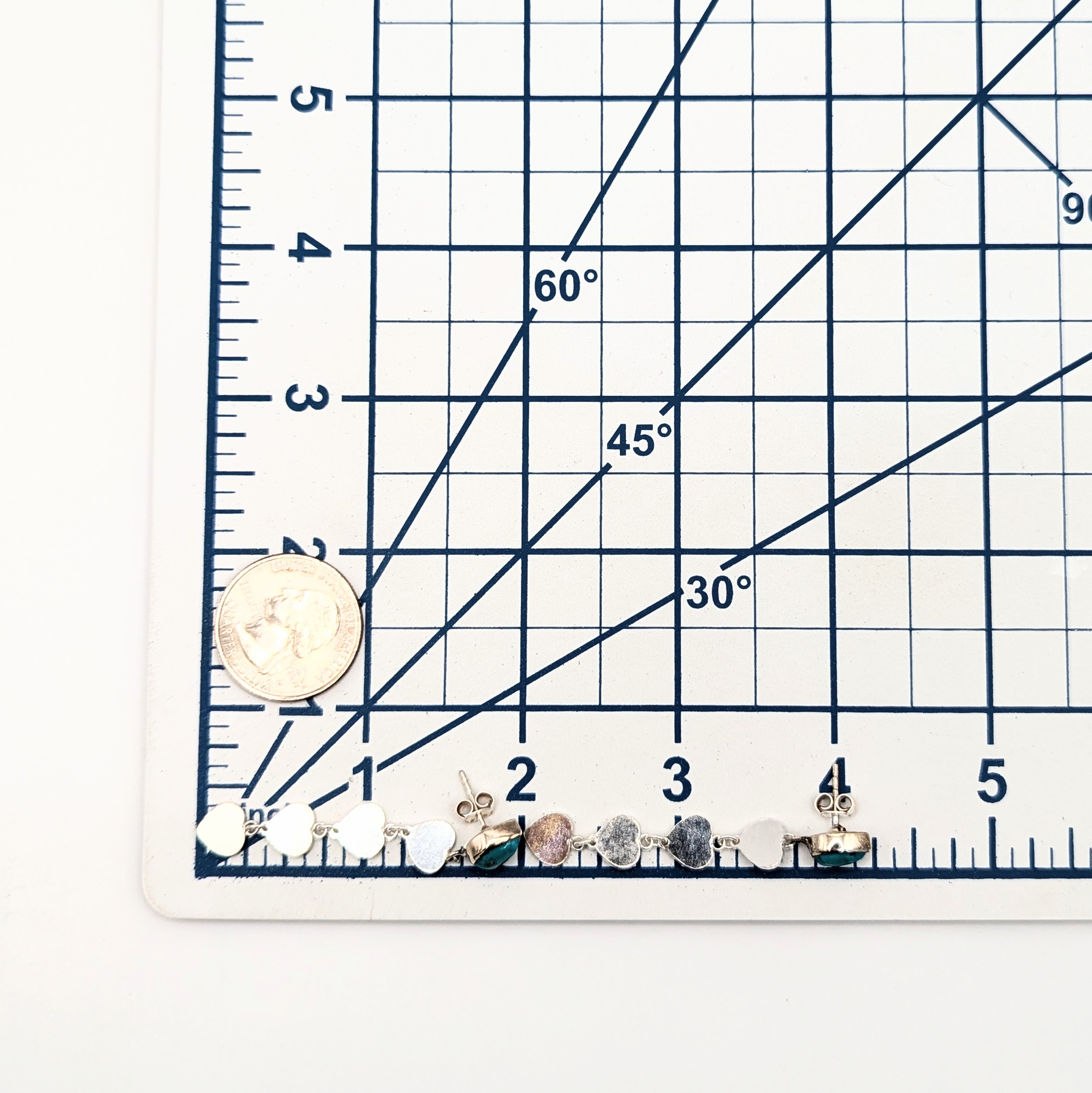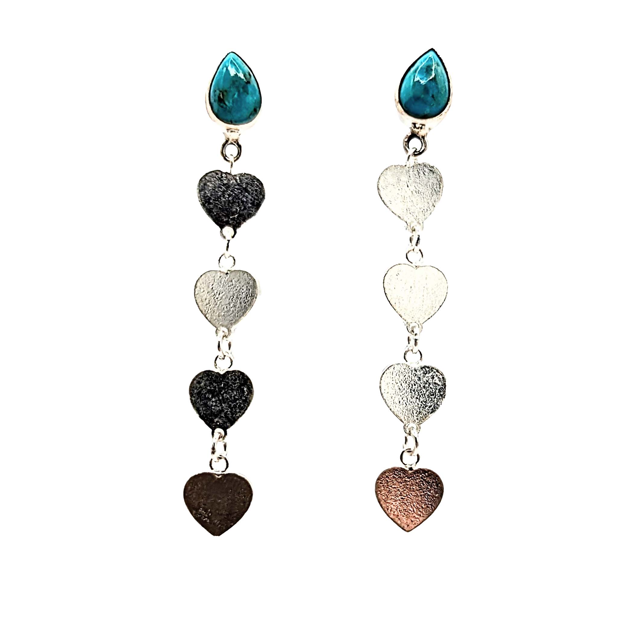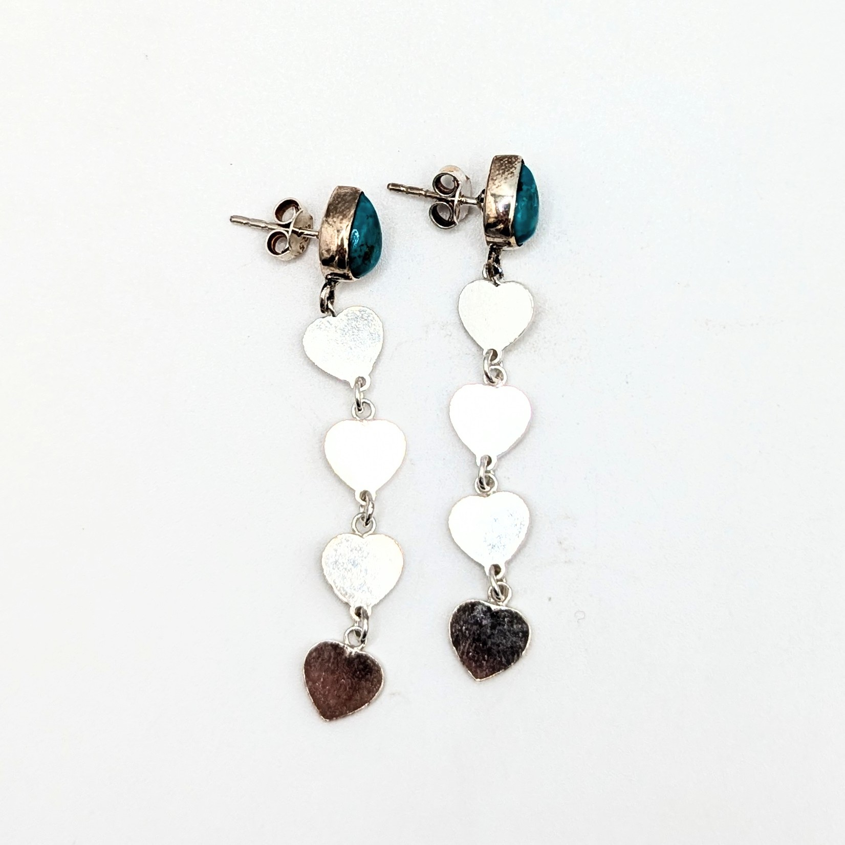 Southwest Sterling Silver Turquoise Stud Dangle Heart Earrings Signed Hada Sterling 6.6g