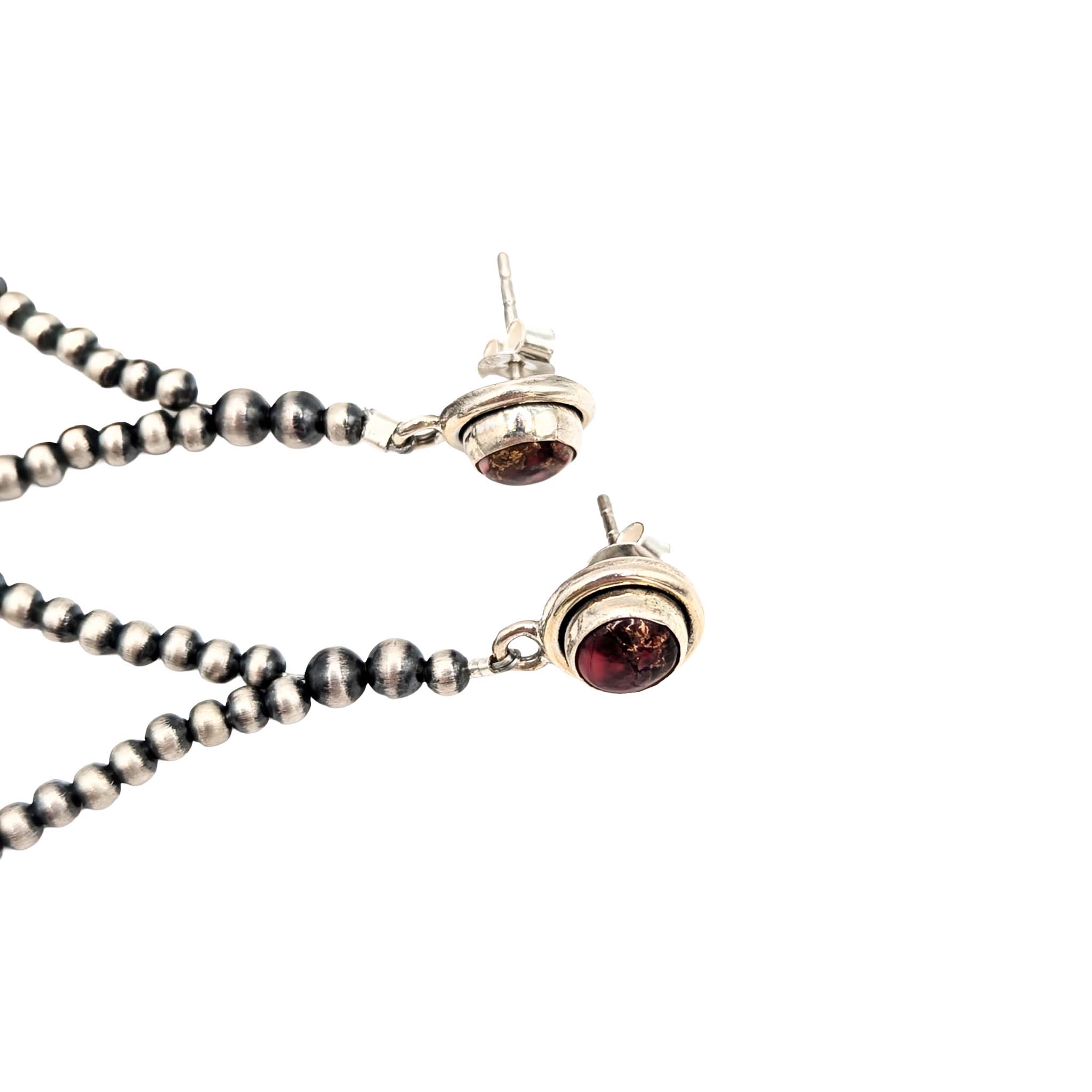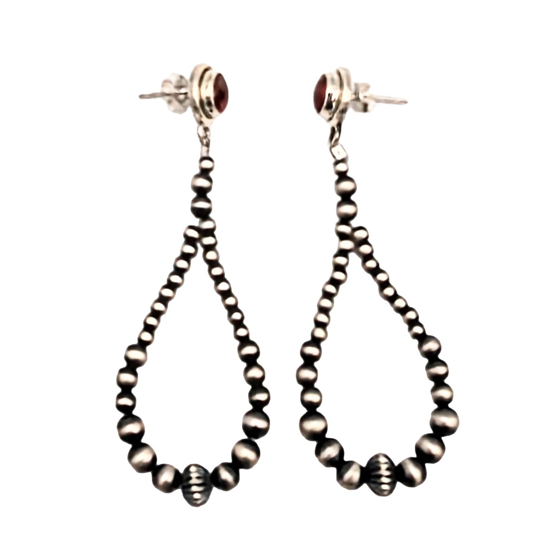 Southwest Sterling Silver Dhalia Rose Turquoise Beaded Hoop Stud Earrings Signed .925 10.3g