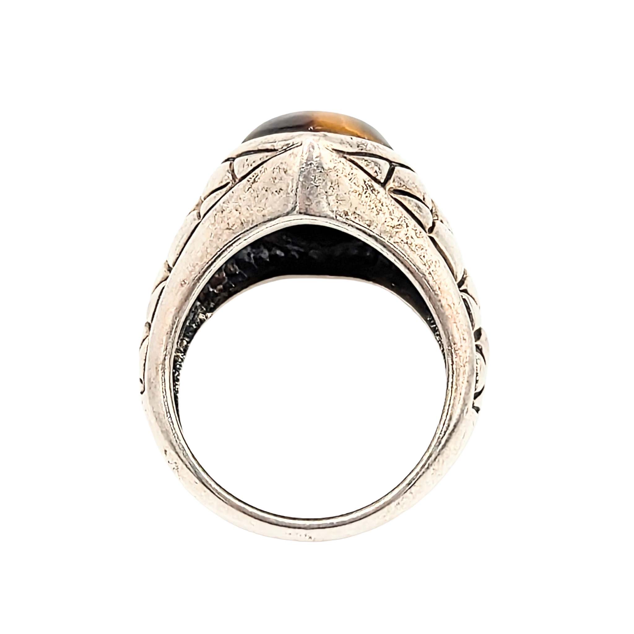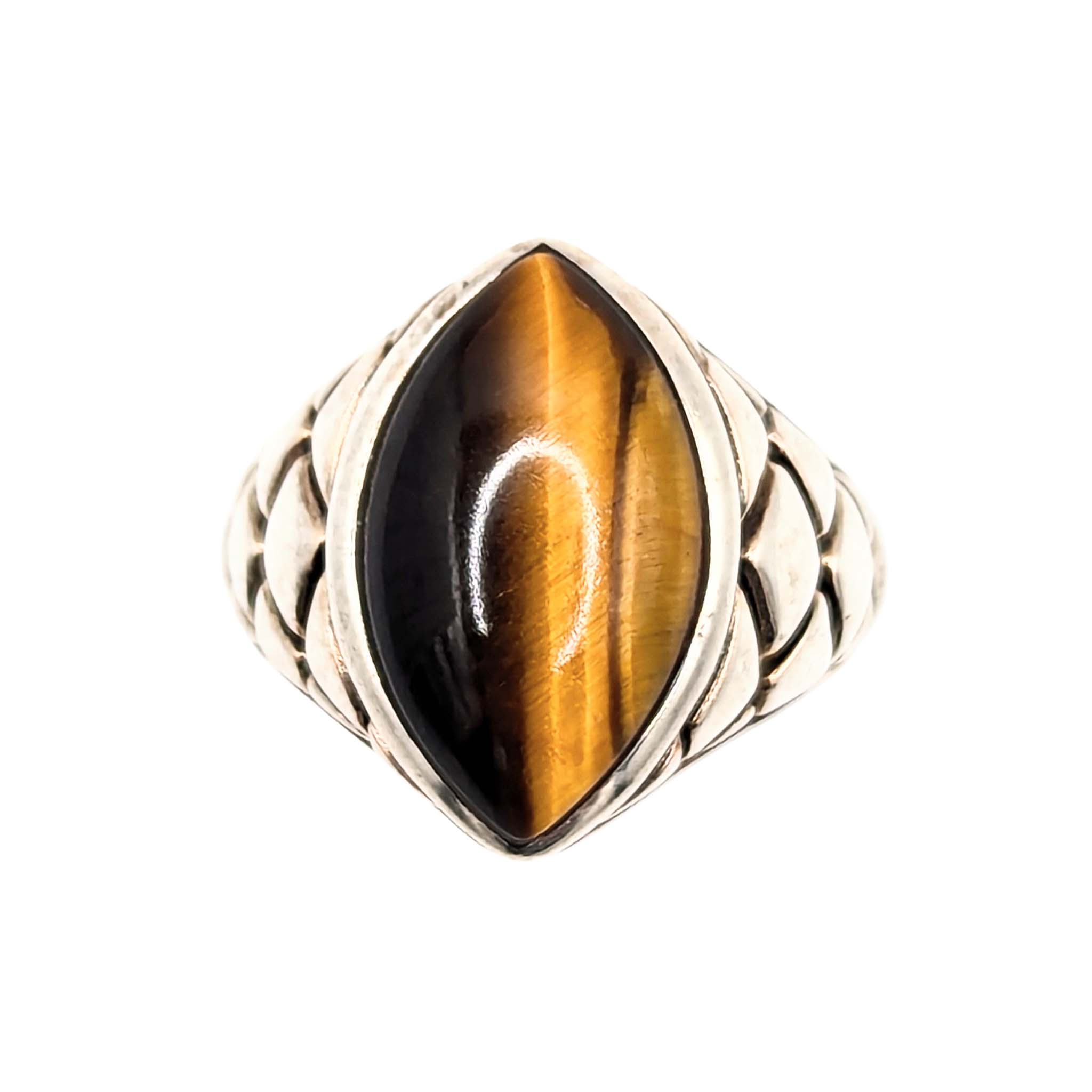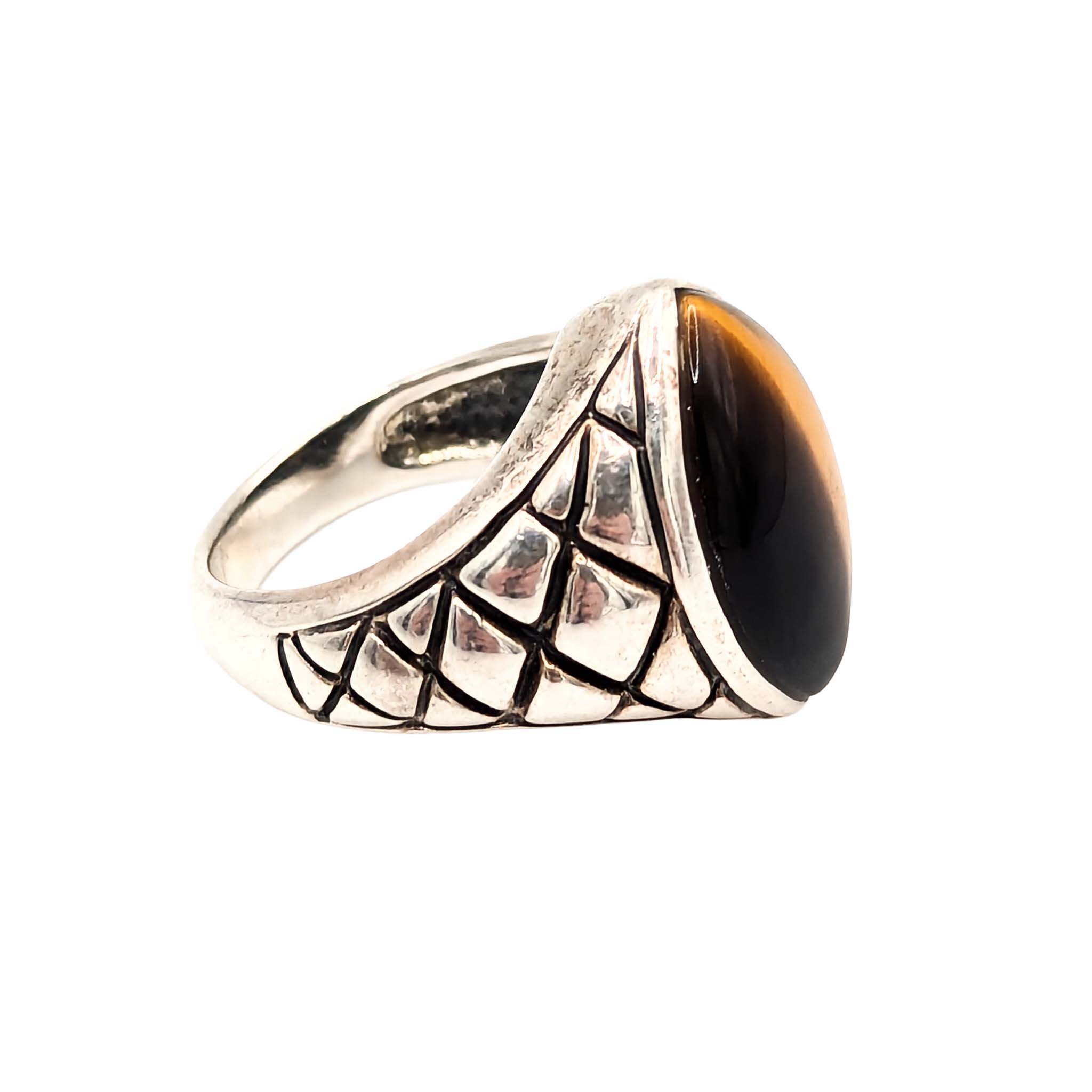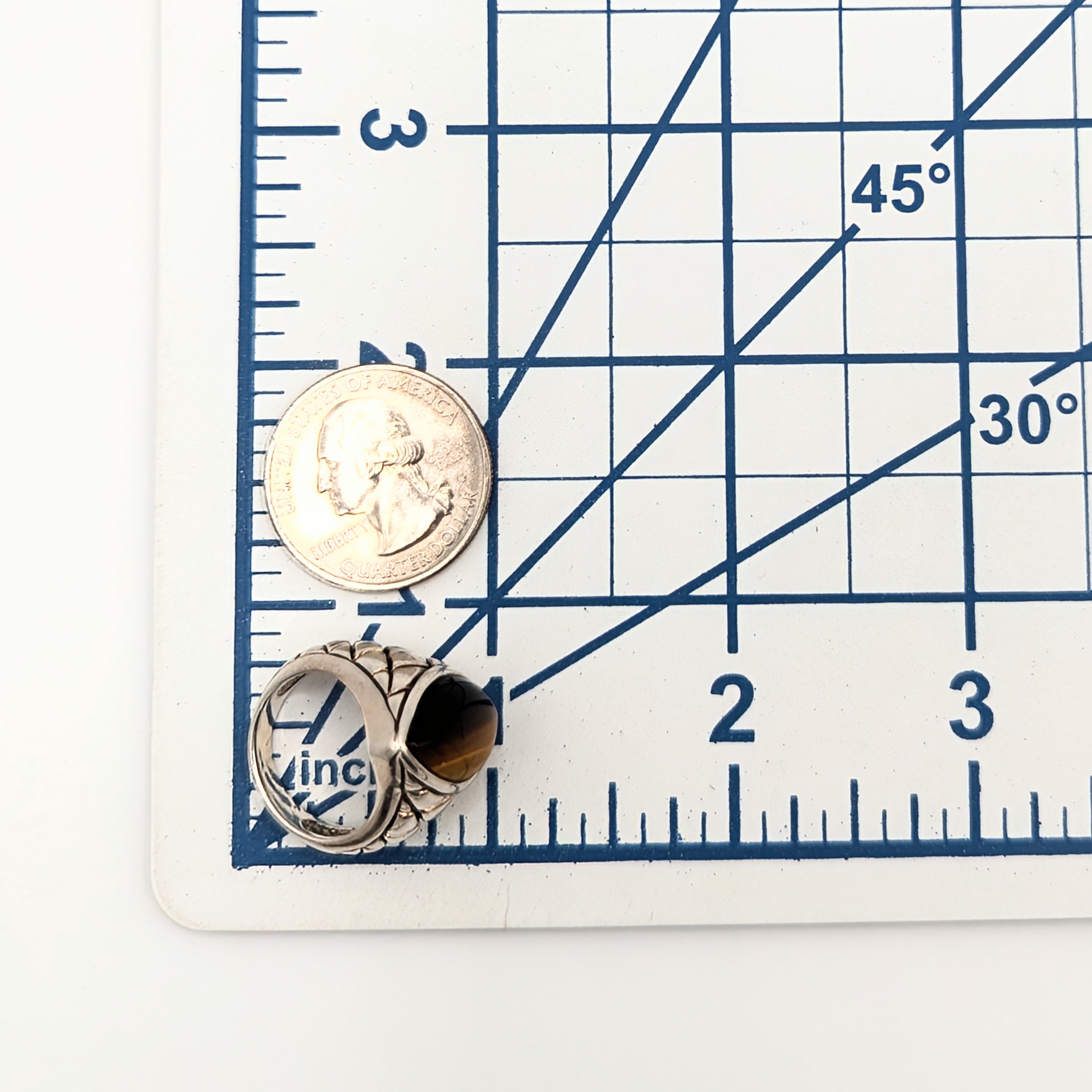 Sterling Silver Tigers Eye Oval Ring Signed SX .925 Size 5.5 9.2g