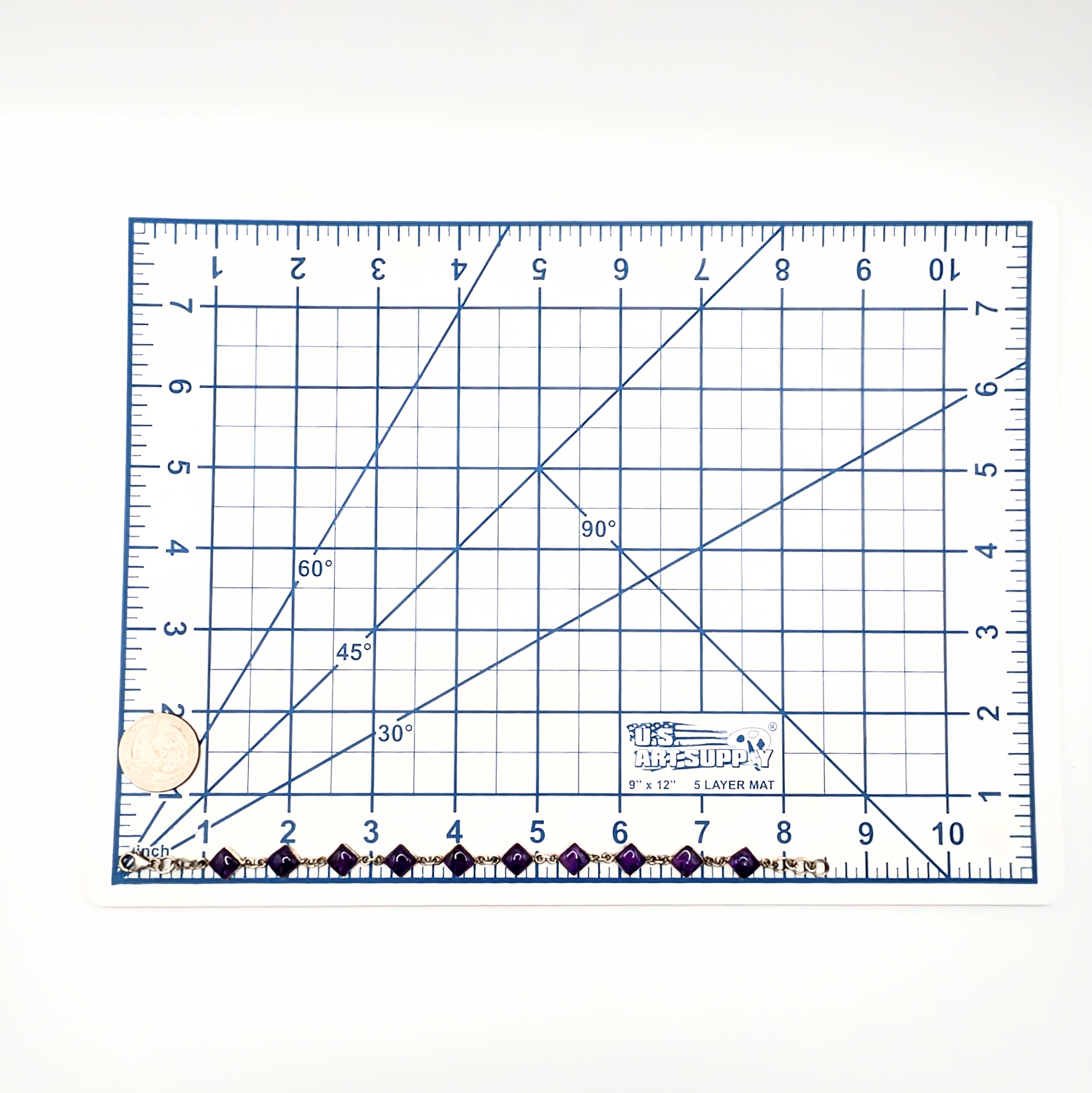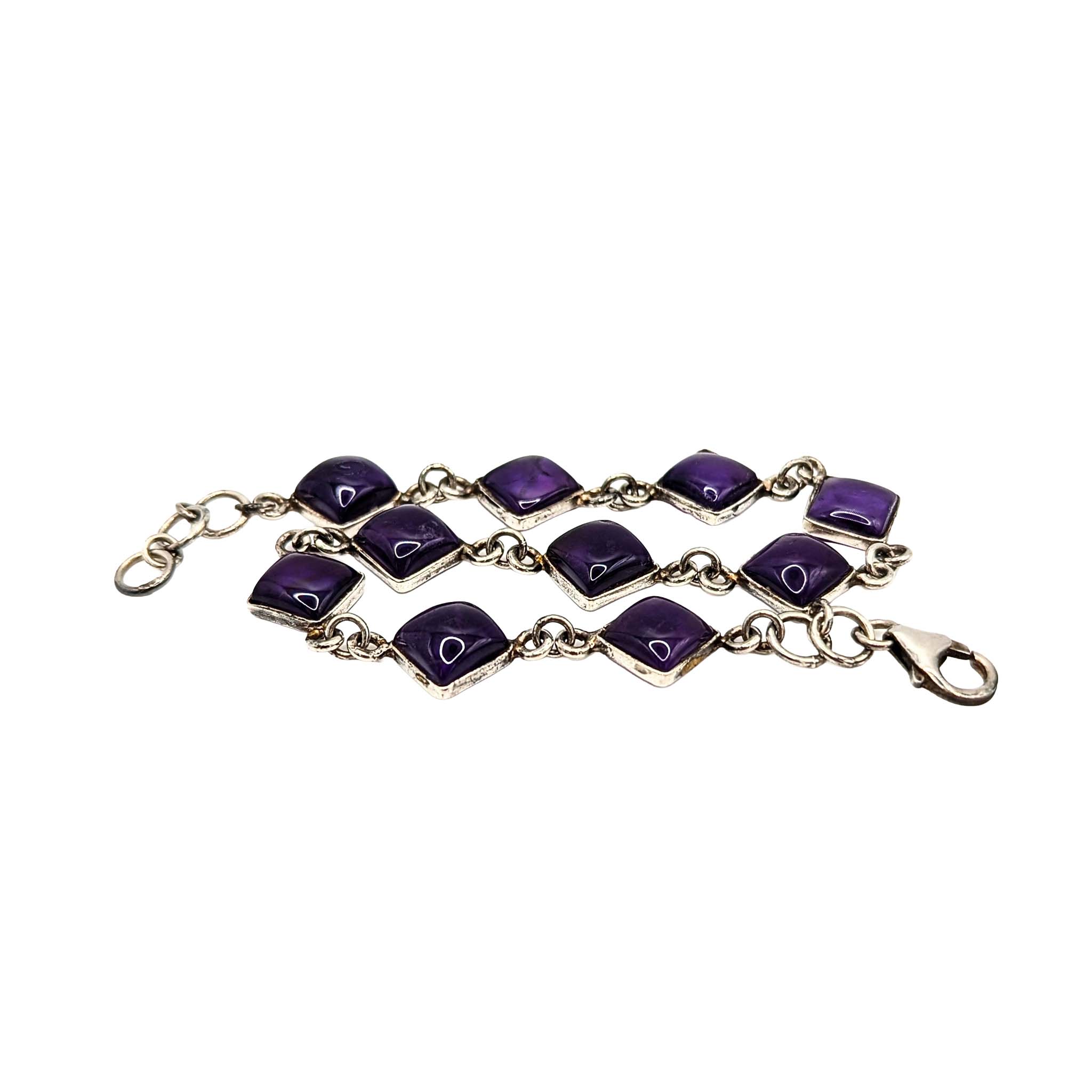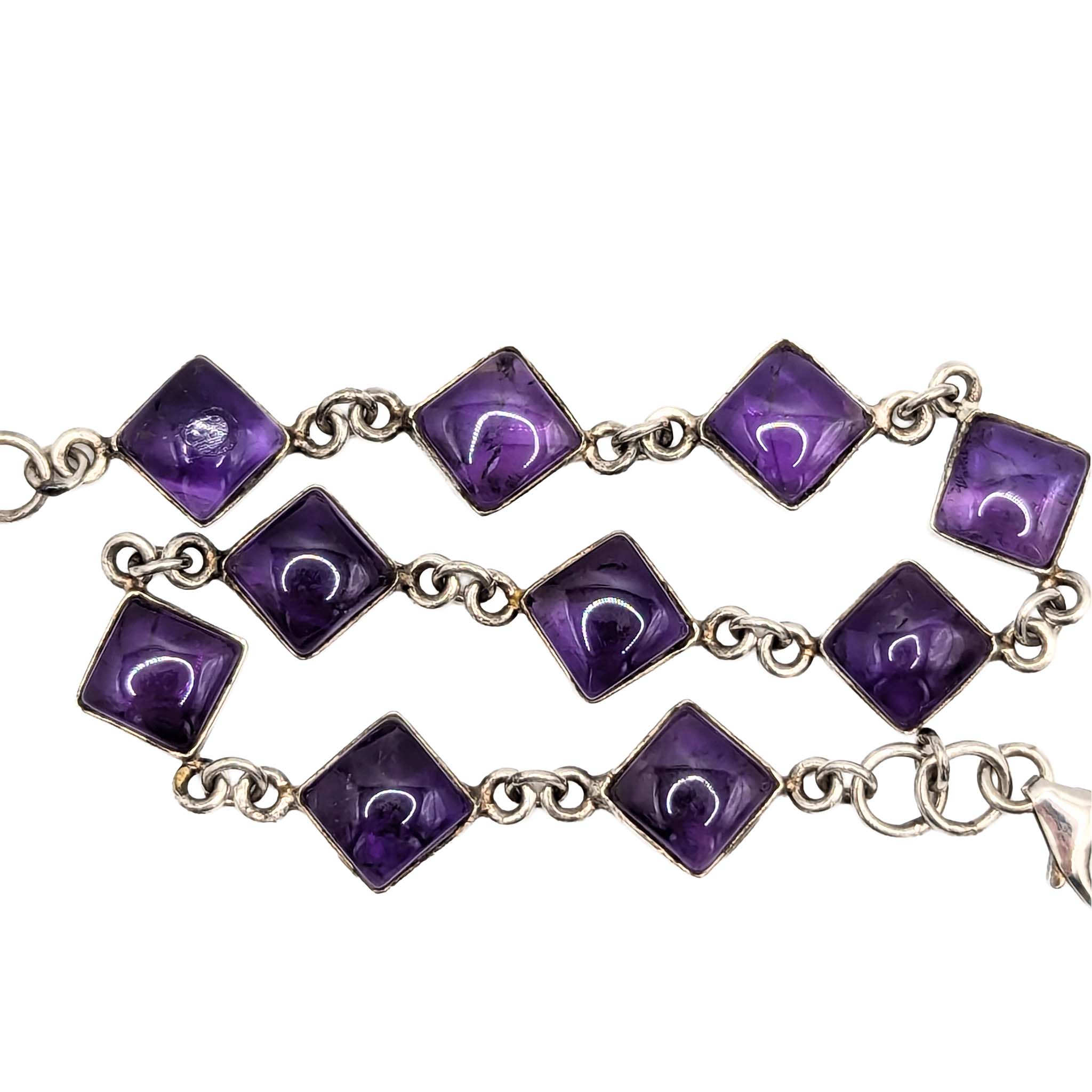 Sterling Silver Amethyst Open Backed Square Link Bracelet 8.6g