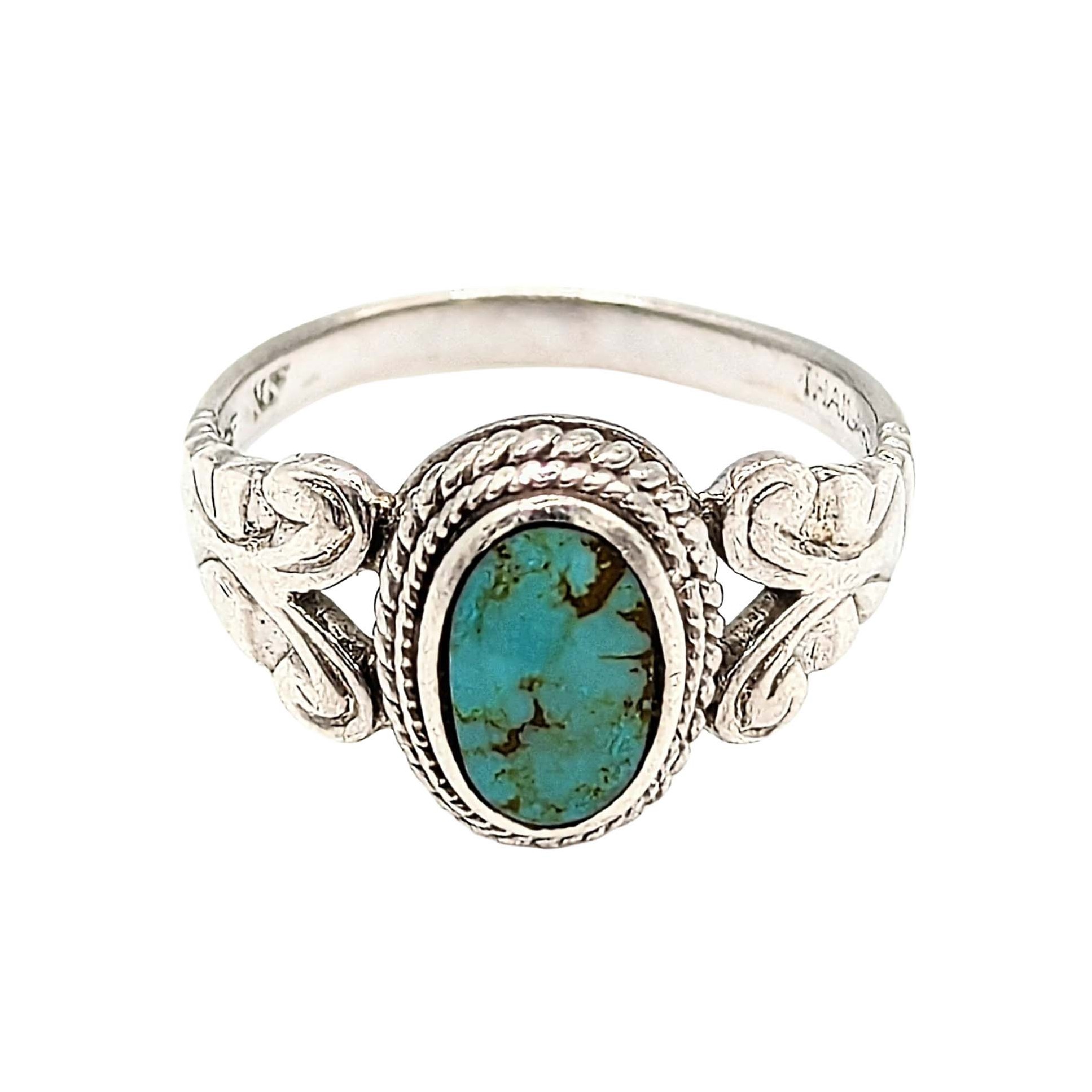 Southwestern Sterling Silver Turquoise Ring Signed NF .925 Size 7 3.5g