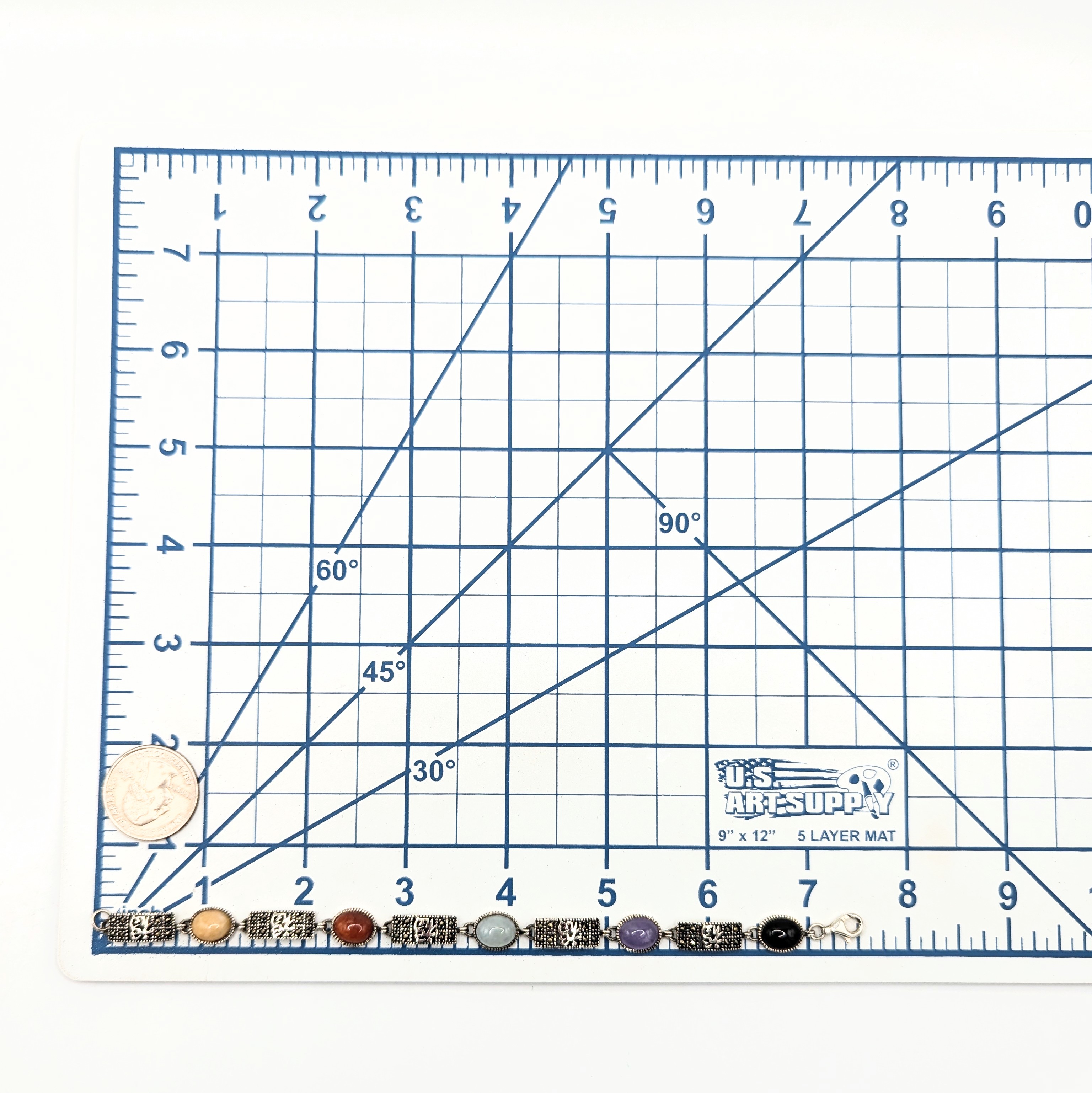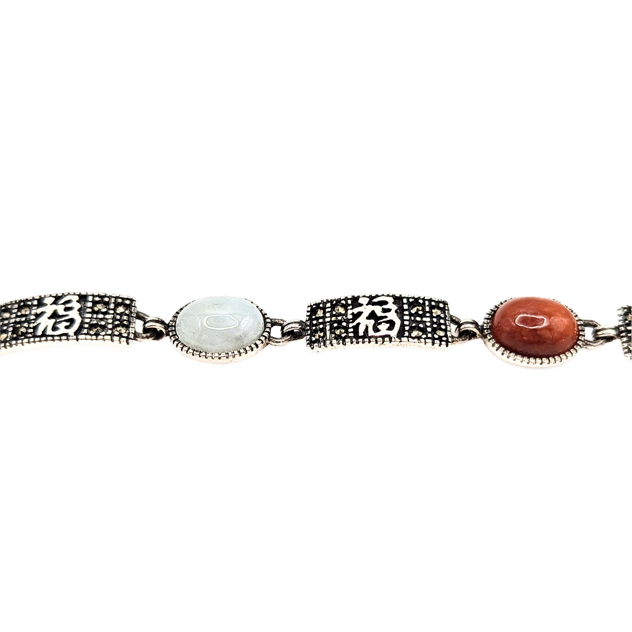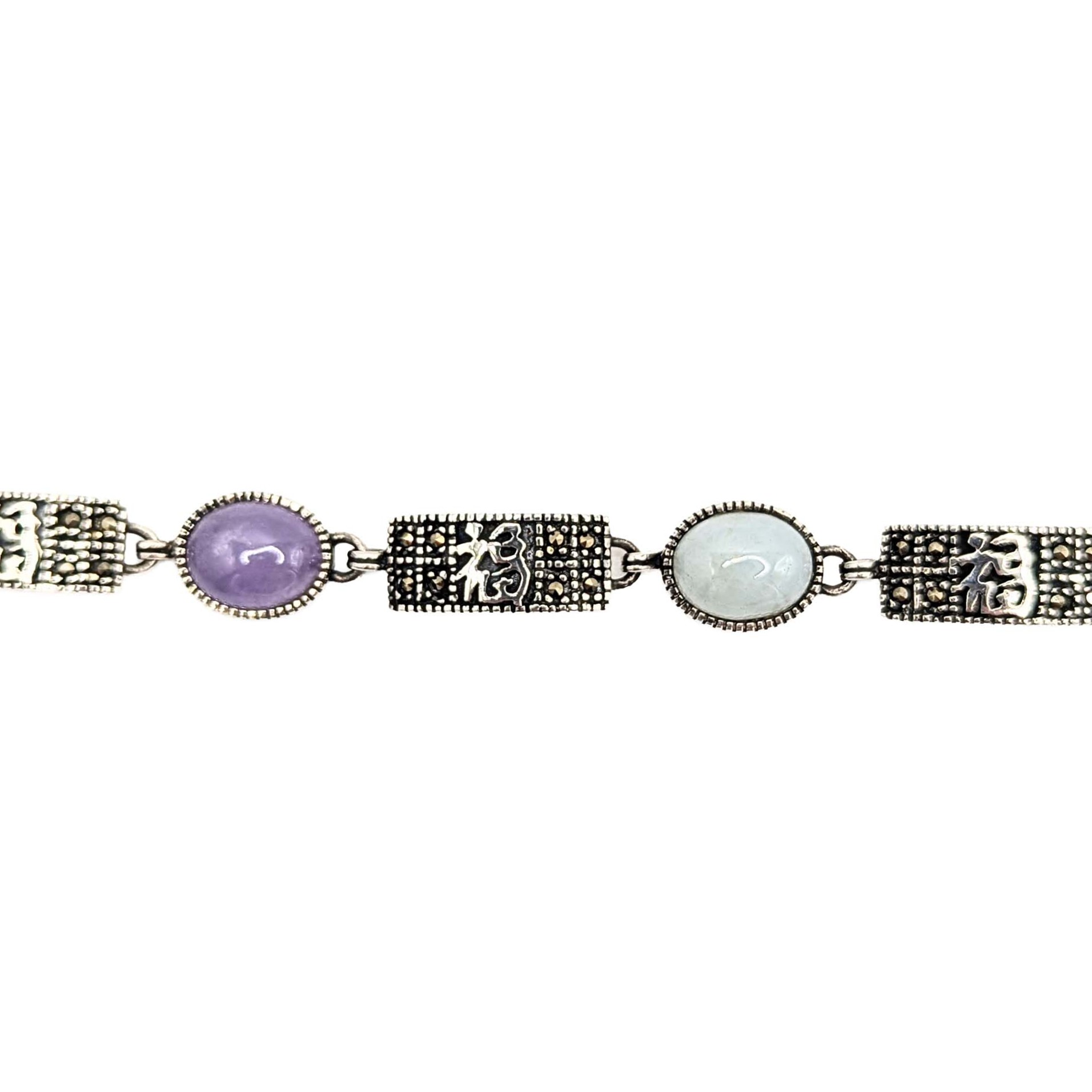 Sterling Silver Amethyst Onyx Jade Agate Carnelian Marcasite Link Bracelet 12.1g